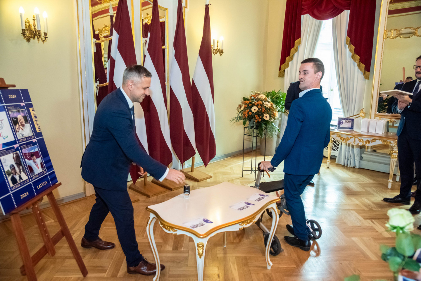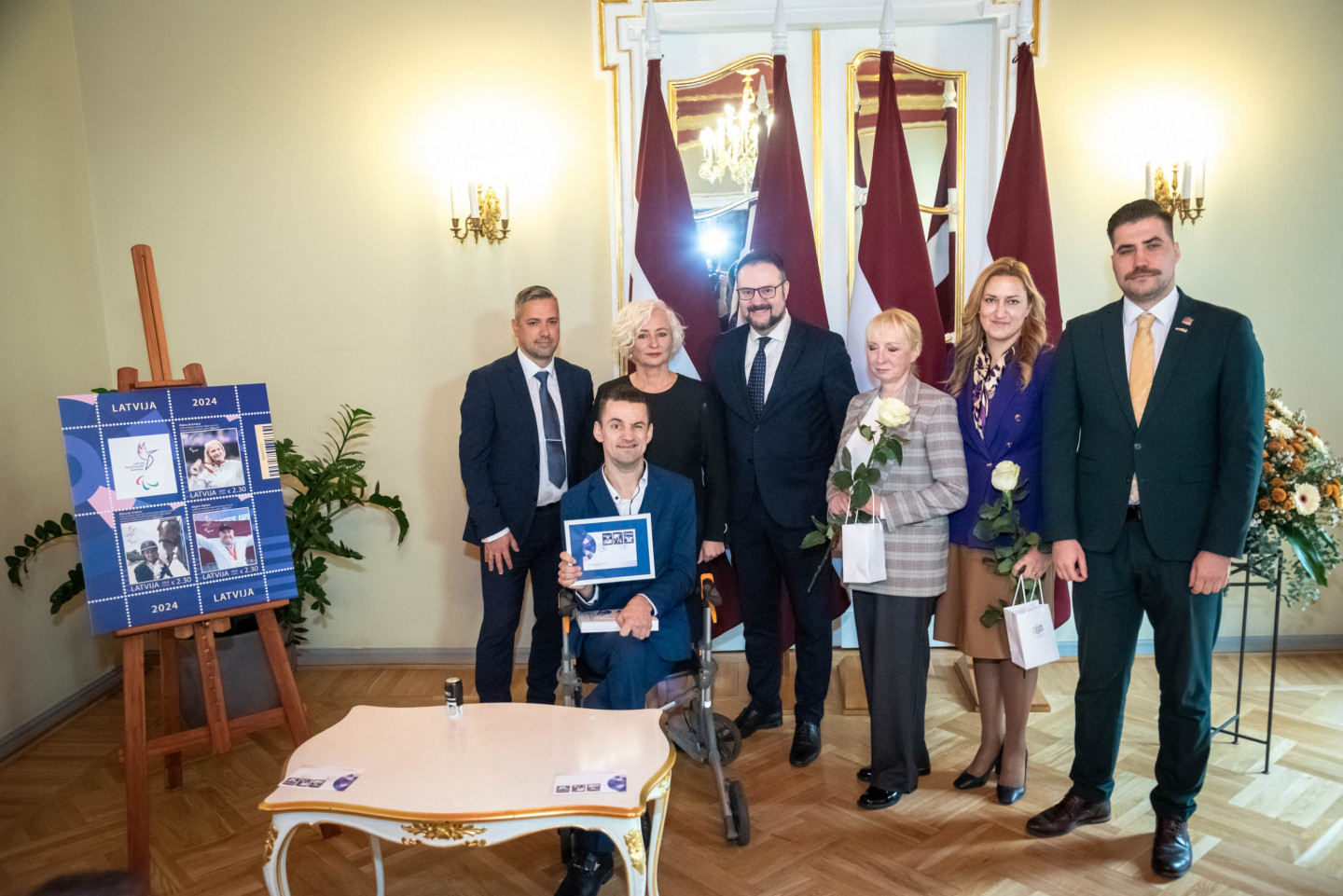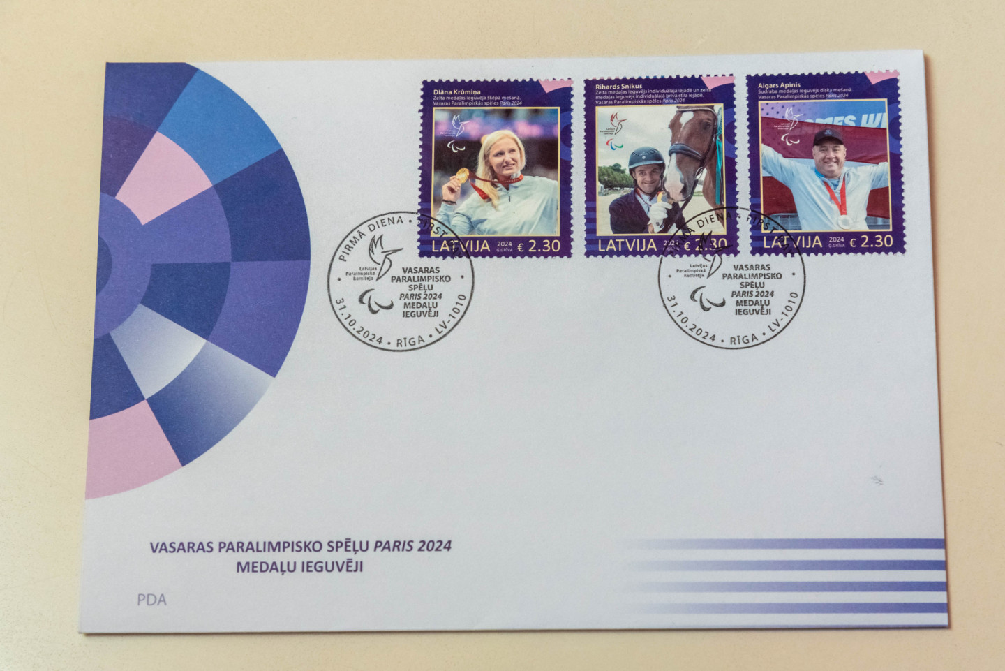 Lai atzīmētu Latvijas sportistu sasniegumus Paralimpiskajās spēlēs Parīzē 2024, kur iegūtas četras uzvaras medaļas, "Latvijas Pasts" izdod pastmarku bloku un īpaša dizaina aploksni.