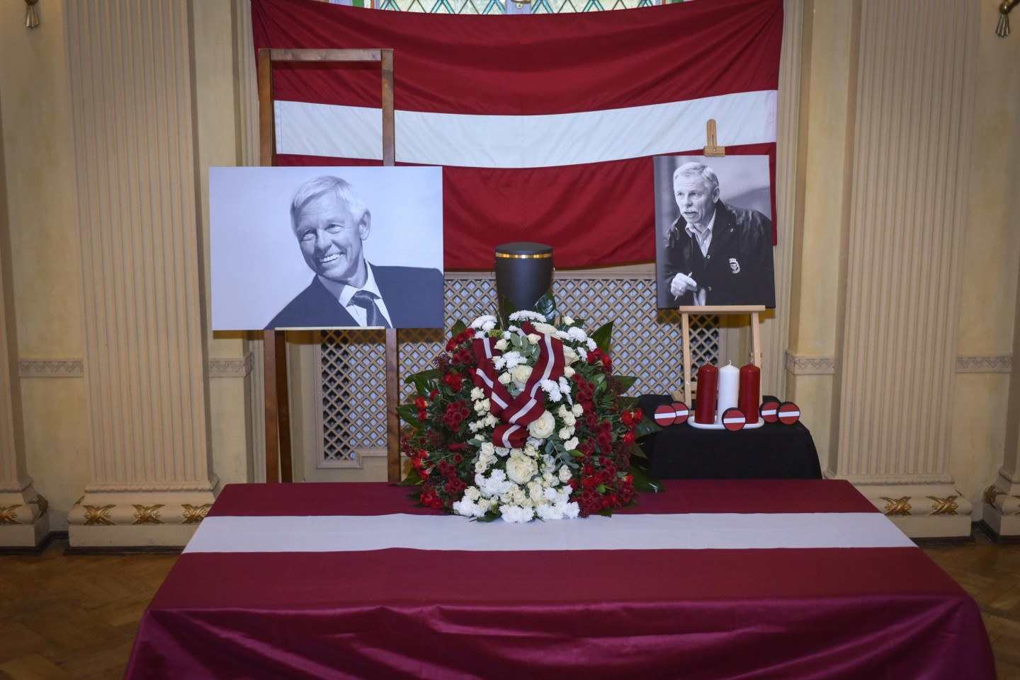 Pēdējā gaitā pavada Latvijas hokejistu un treneri Haraldu Vasiļjevu.