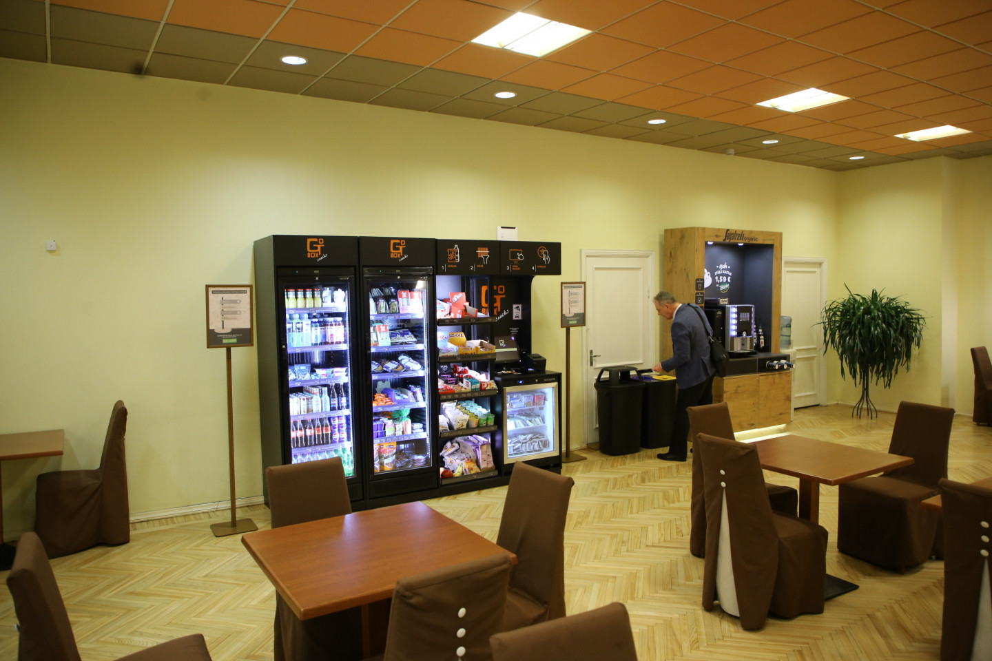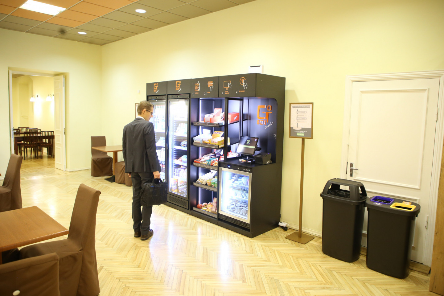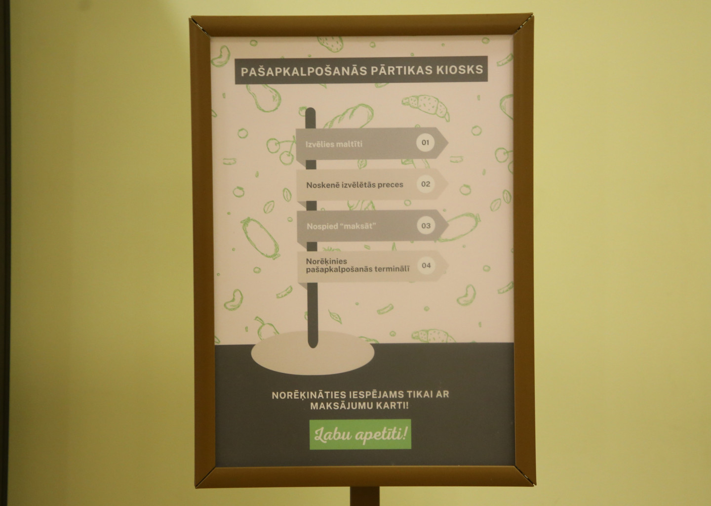 Saeimā, Jēkaba ielā 11, šodien atklāts pārtikas preču pašapkalpošanās kiosks, kurā deputāti un parlamenta apmeklētāji var iegādāties sviestmaizes, citas uzkodas un kārumus. Kā novēroja aģentūra LETA, pašapkalpošanās kioskā var iegādāties dažāda veida sviestmaizes, pieejama arī iepakota soļanka, plovs un citi ēdieni. Tāpat kioskā var iegādāties dažādas šokolādes un atspirdzinājumus