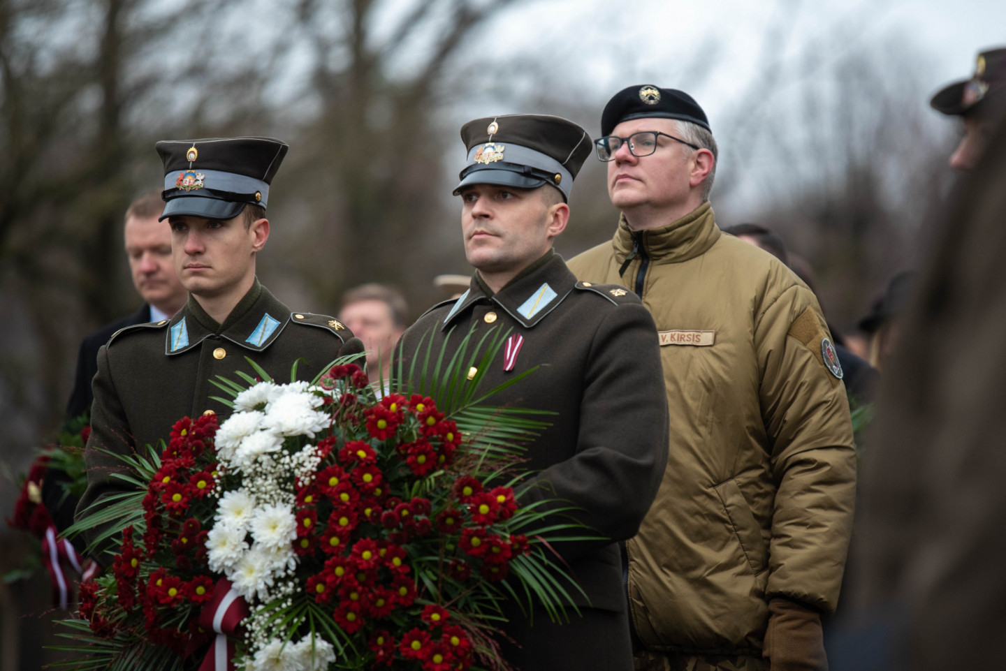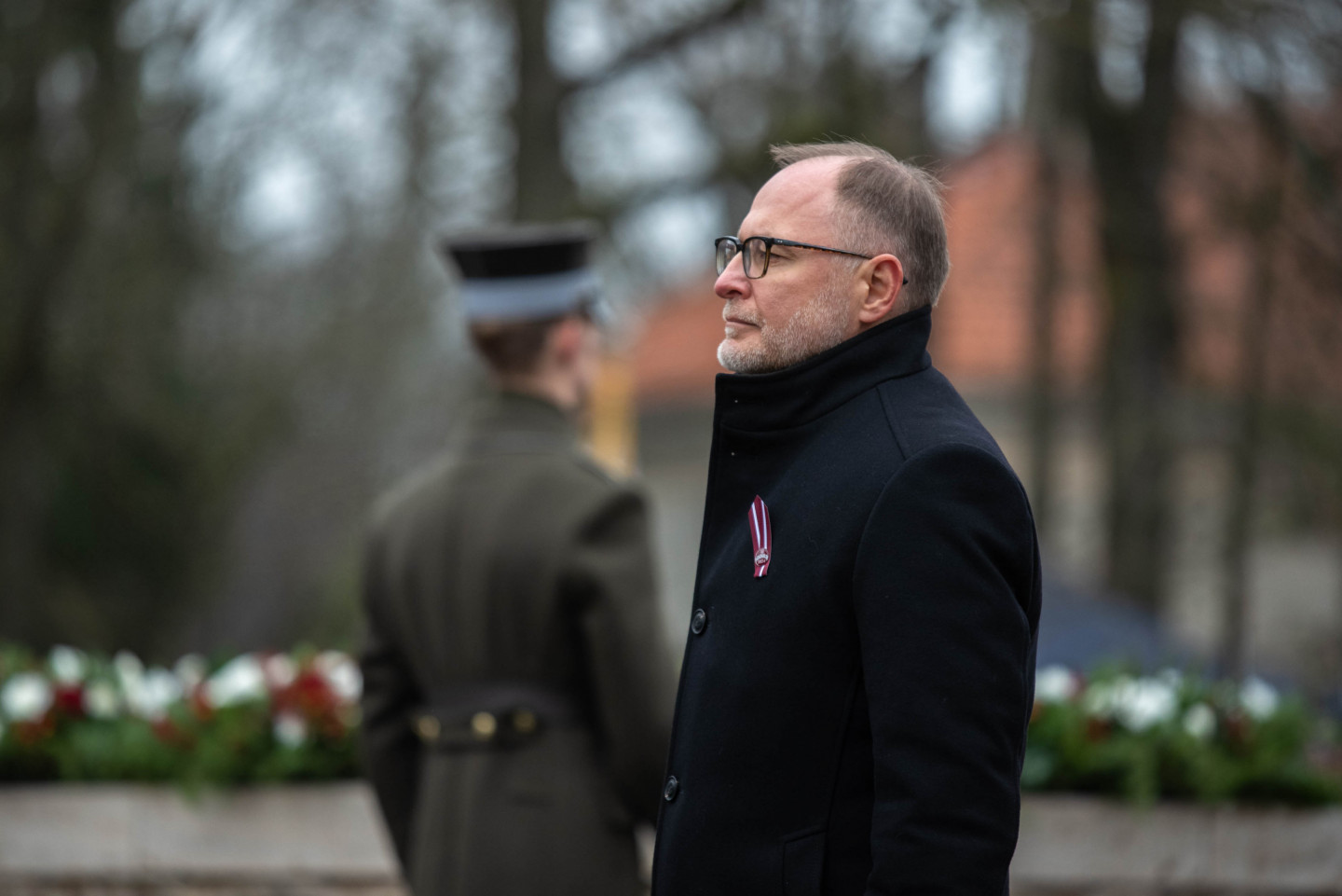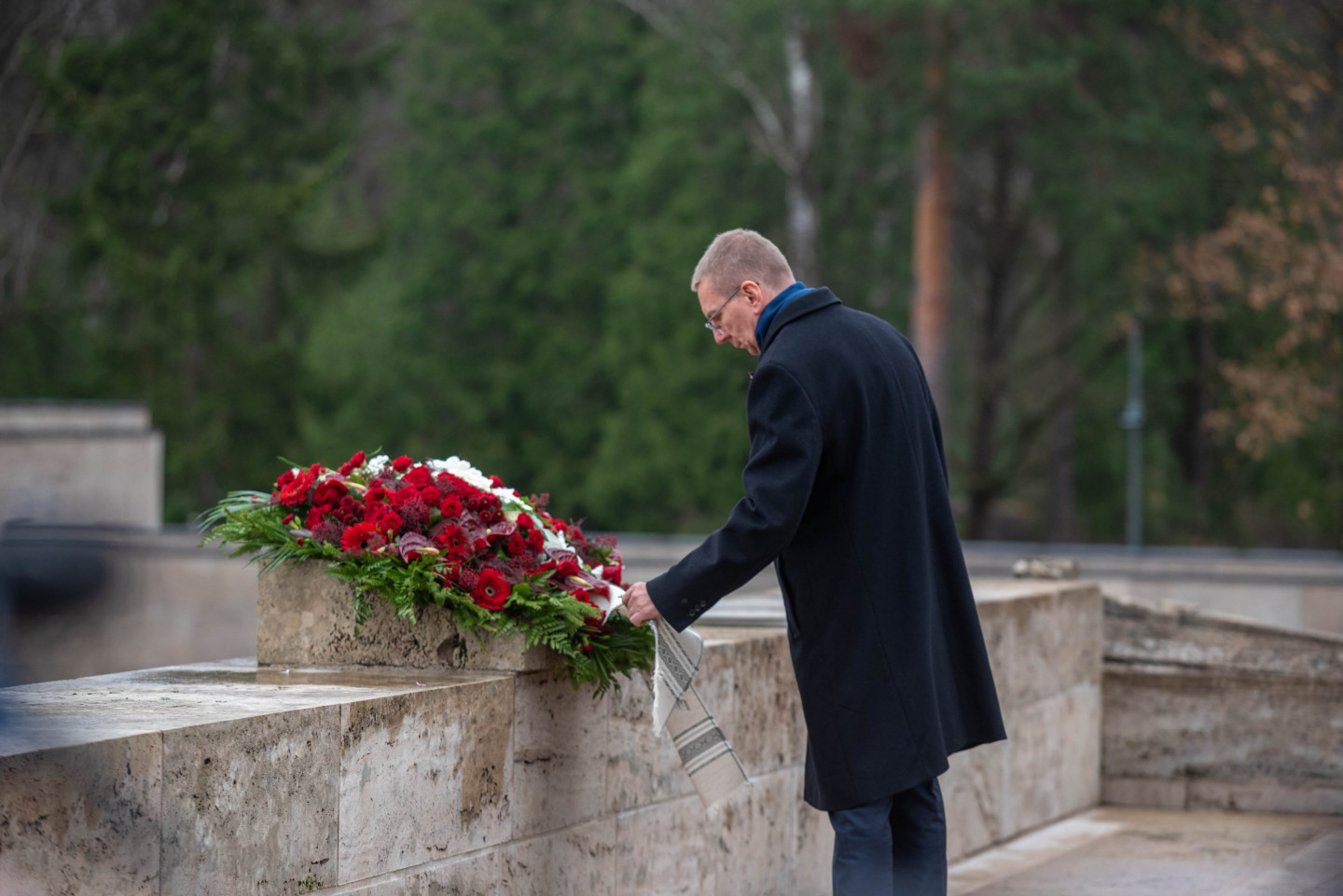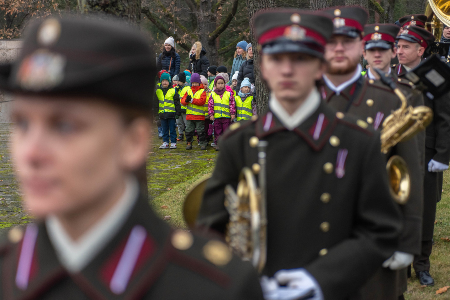 Valsts prezidents Edgars Rinkēvičs, Saeimas priekšsēdētāja Daiga Mieriņa, Ministru prezidente Evika Siliņa un citas valsts augstākās amatpersonas piedalās svinīgajā vainagu nolikšanas ceremonijā Rīgas Brāļu kapos, godinot Latvijas Brīvības cīnītājus.