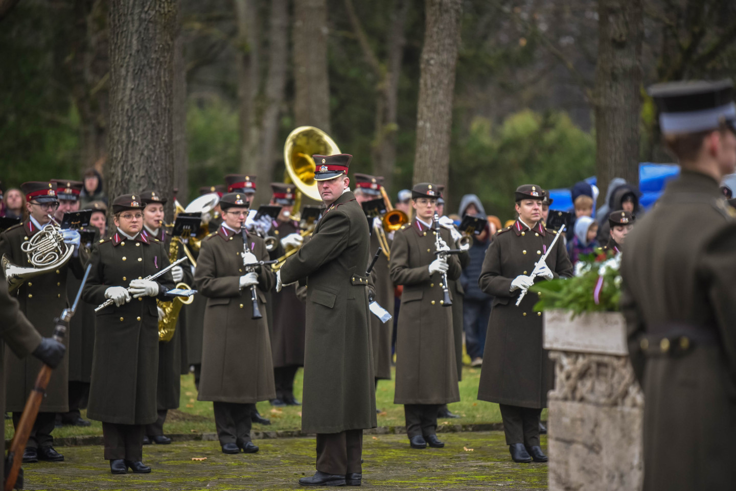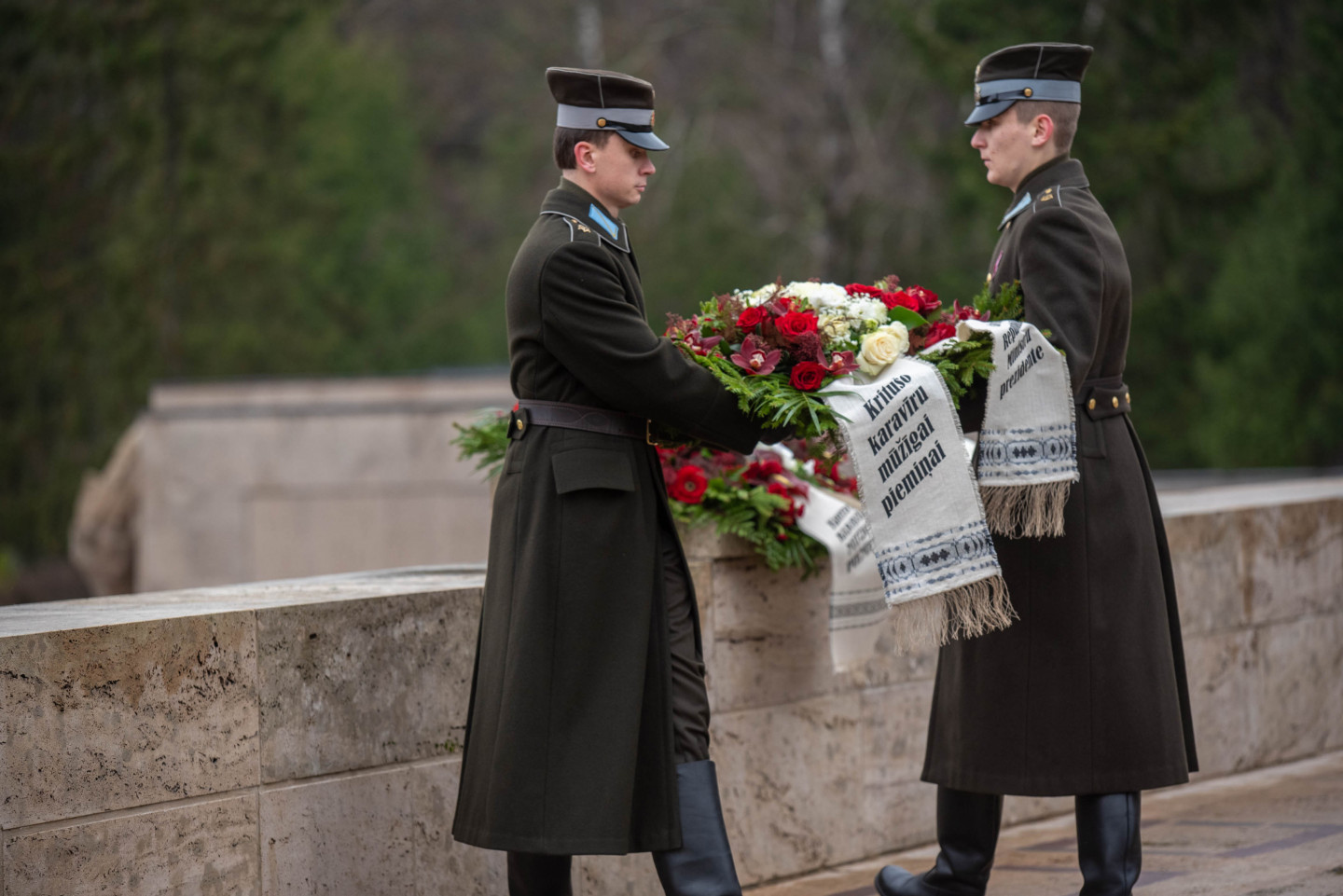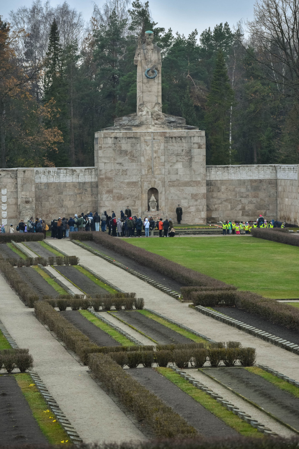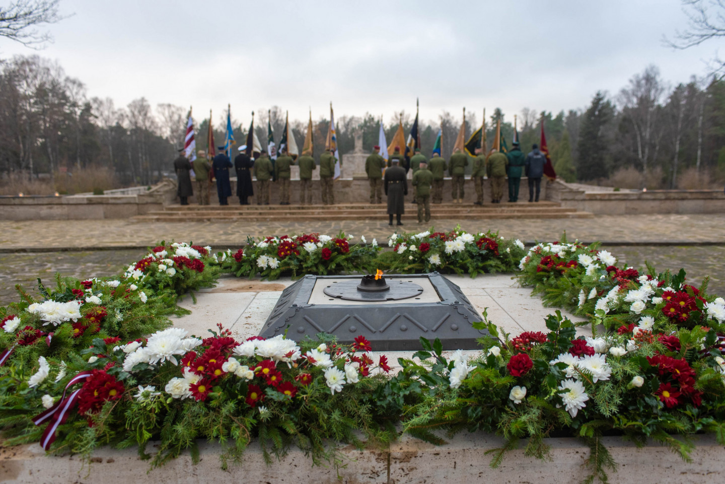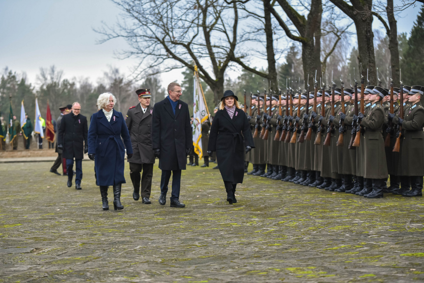 Valsts prezidents Edgars Rinkēvičs, Saeimas priekšsēdētāja Daiga Mieriņa, Ministru prezidente Evika Siliņa un citas valsts augstākās amatpersonas piedalās svinīgajā vainagu nolikšanas ceremonijā Rīgas Brāļu kapos, godinot Latvijas Brīvības cīnītājus.