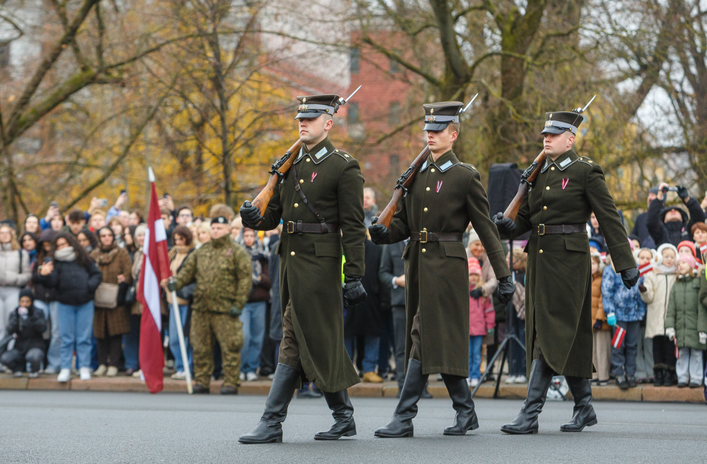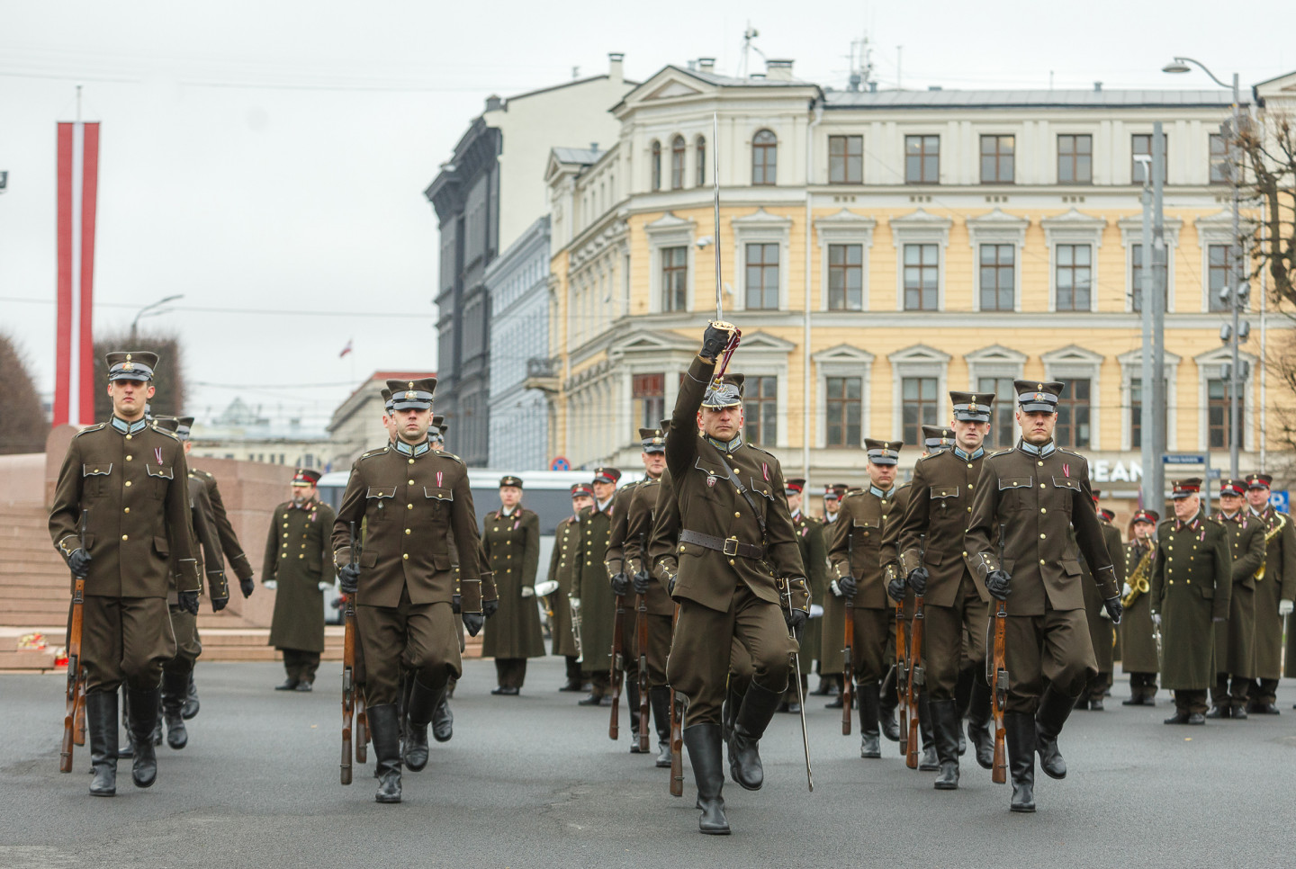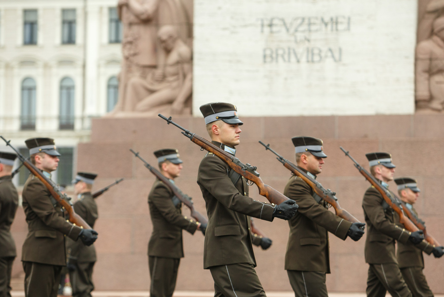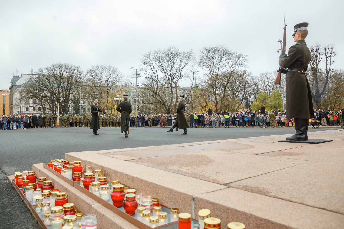Lāčplēša dienā pie Brīvības pieminekļa norisinājas svinīgā godasardzes maiņa. Pēc kuras bija iespēja vērot Štāba orķestra un valsts aizsardzības dienesta karavīru veidoto defilē programmu.