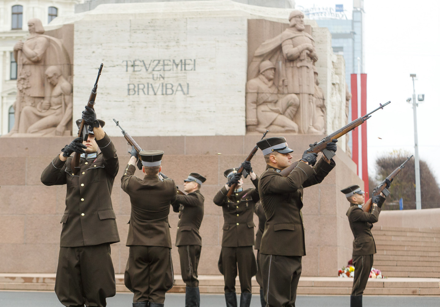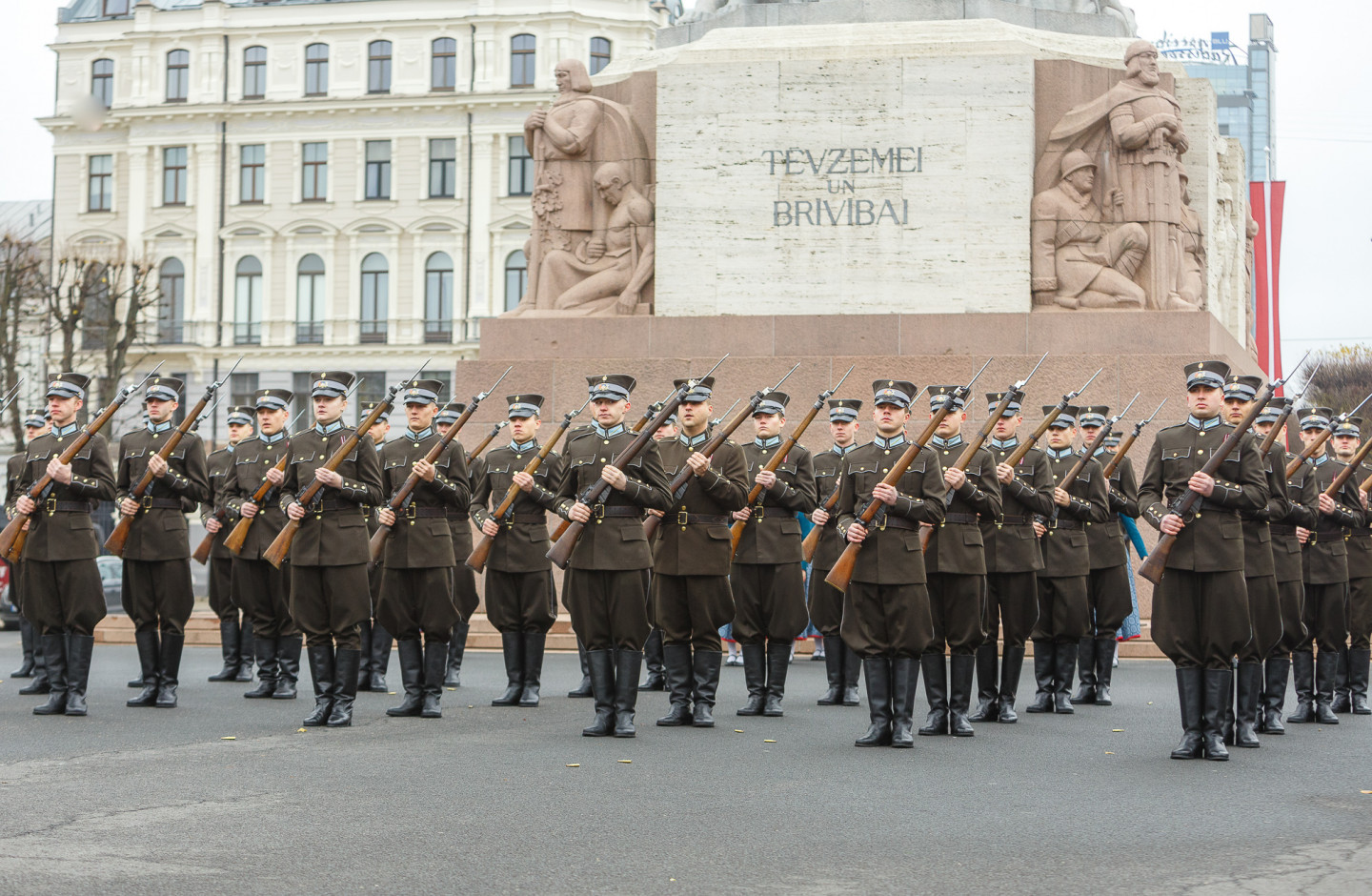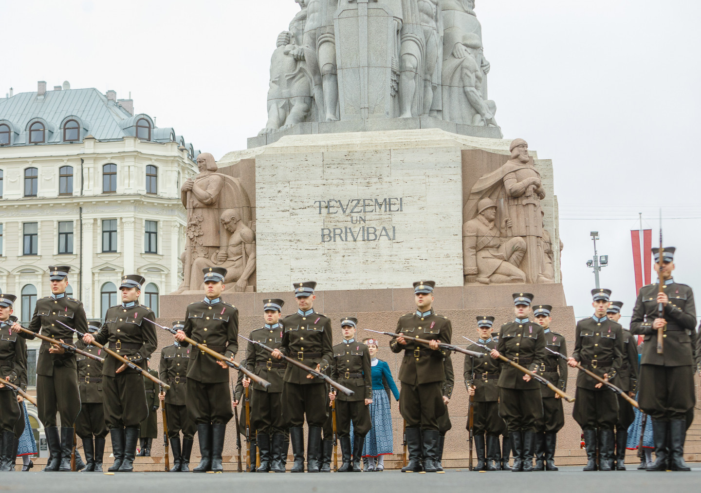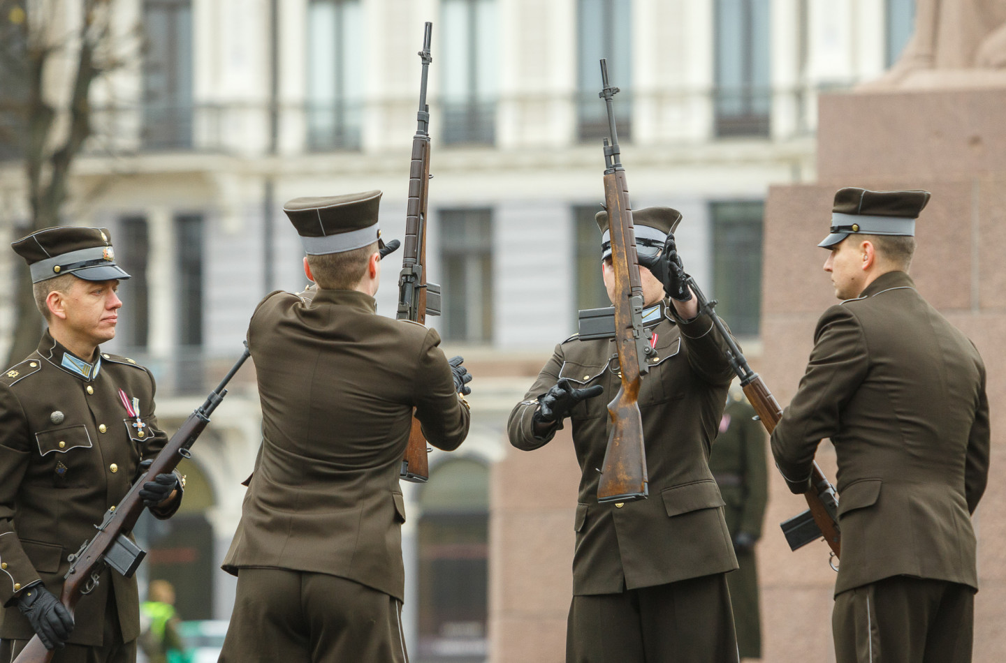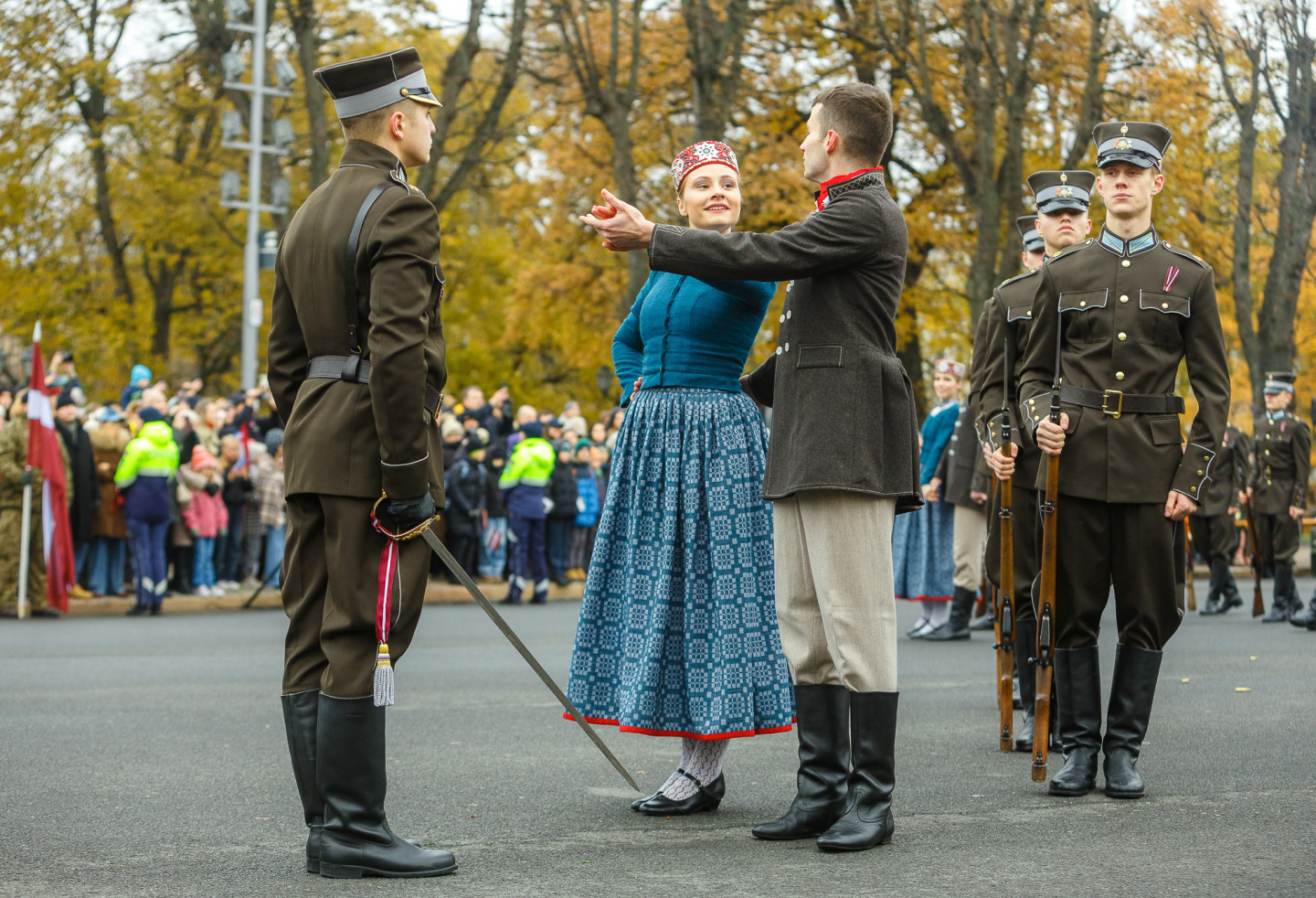 Lāčplēša dienā pie Brīvības pieminekļa norisinājas svinīgā godasardzes maiņa. Pēc kuras bija iespēja vērot Štāba orķestra un valsts aizsardzības dienesta karavīru veidoto defilē programmu.