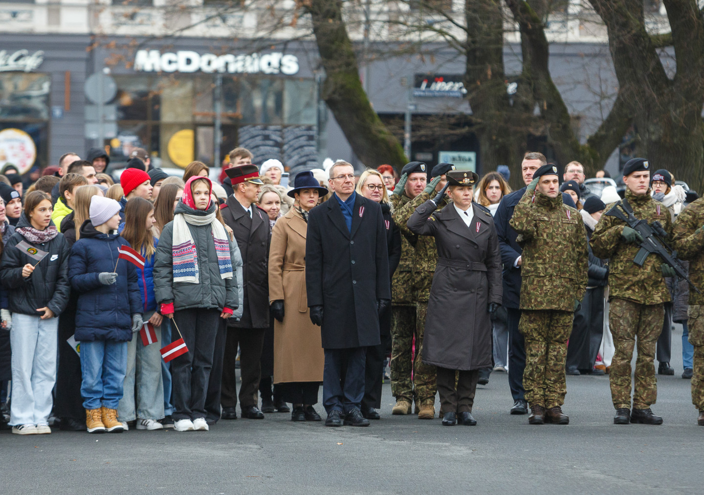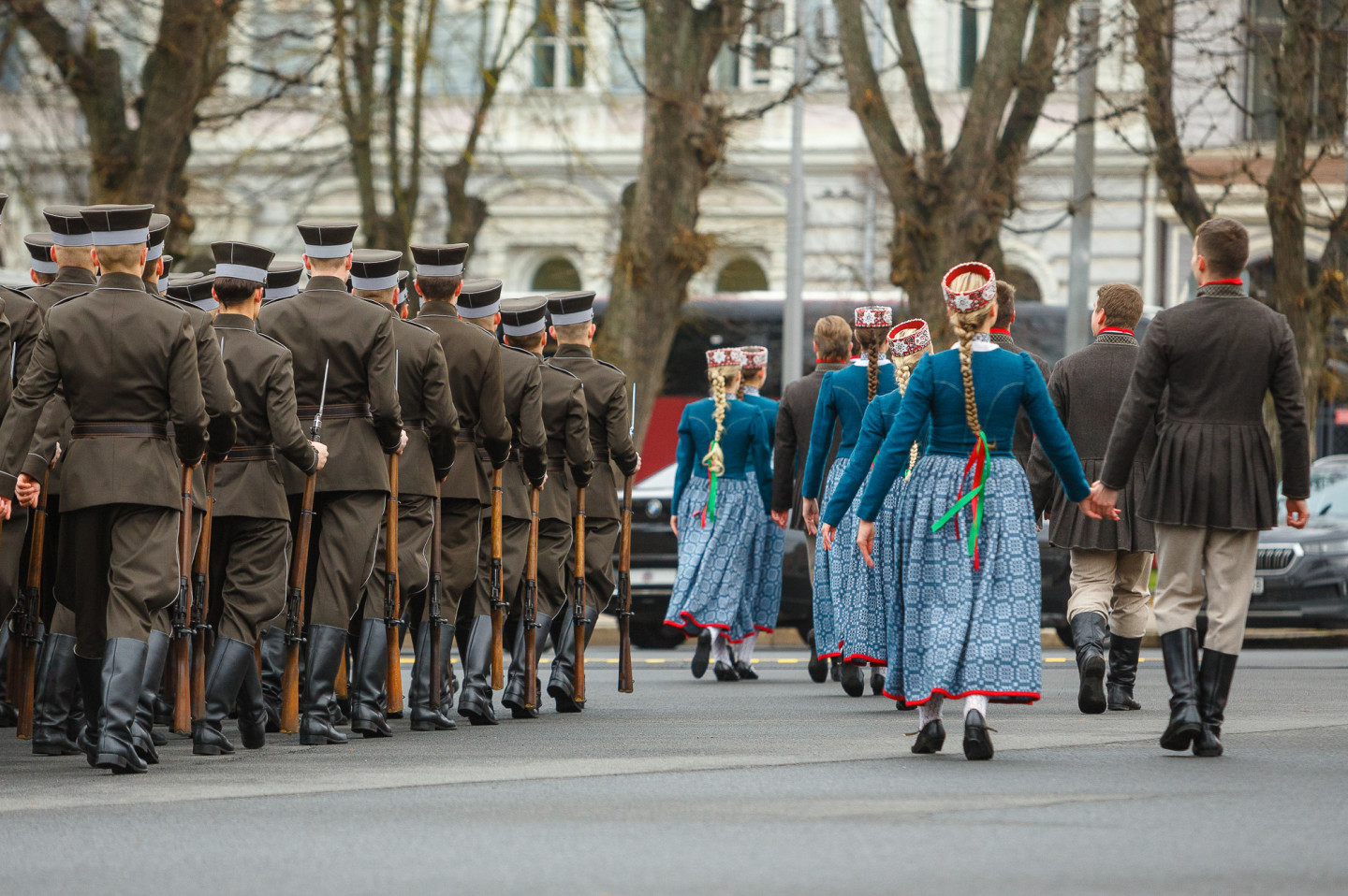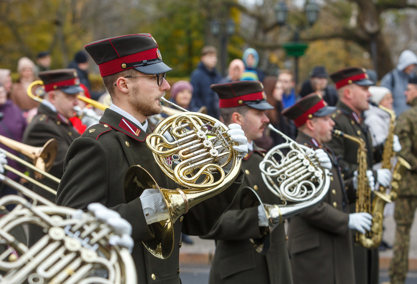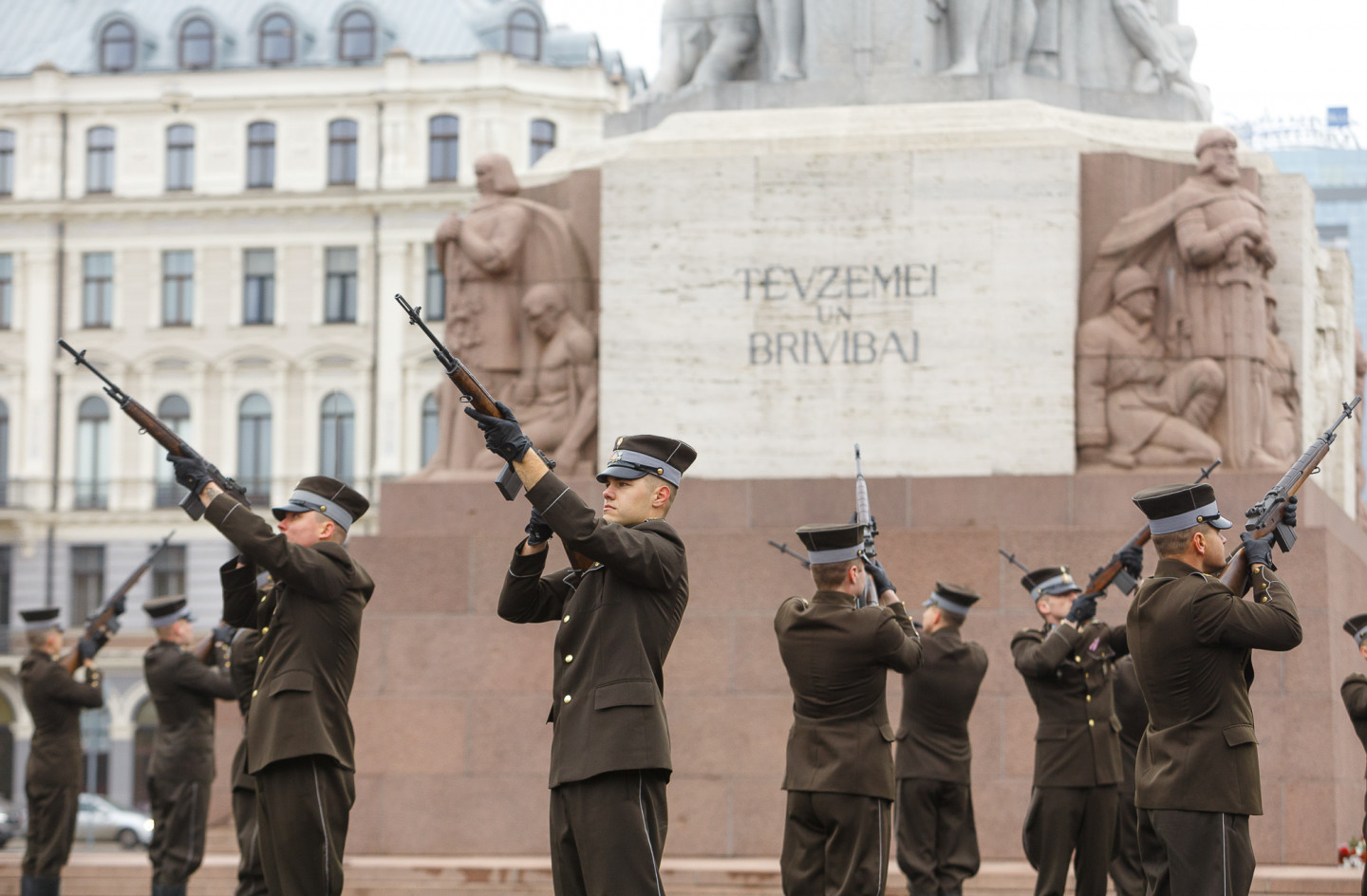 Lāčplēša dienā pie Brīvības pieminekļa norisinājas svinīgā godasardzes maiņa. Pēc kuras bija iespēja vērot Štāba orķestra un valsts aizsardzības dienesta karavīru veidoto defilē programmu.