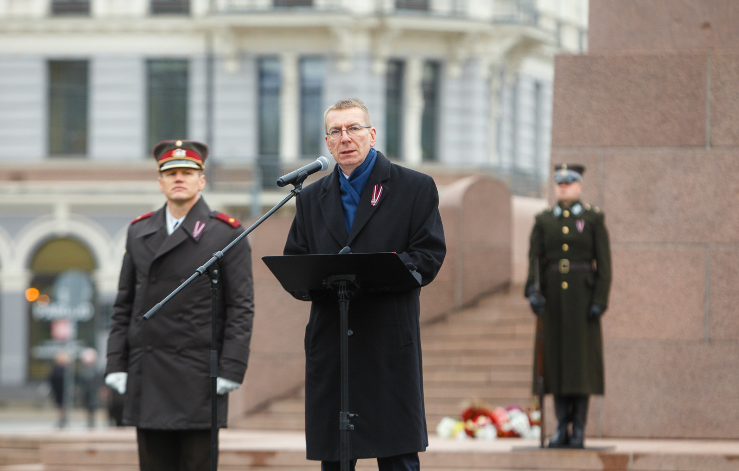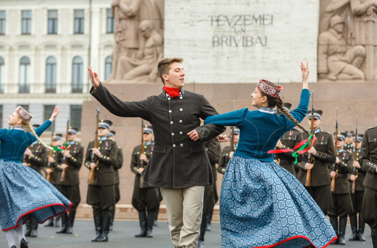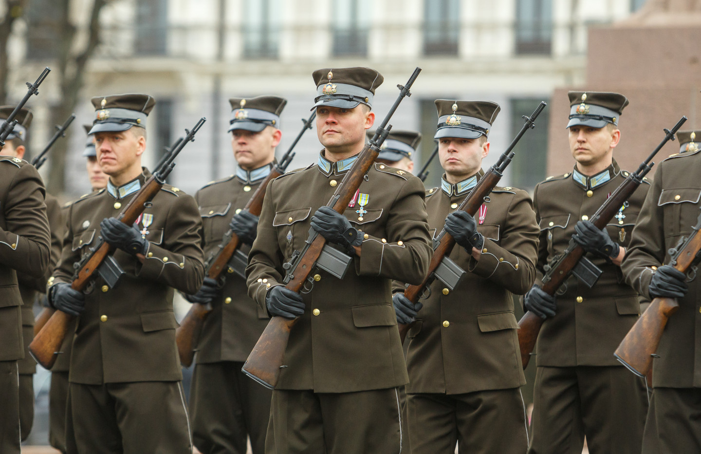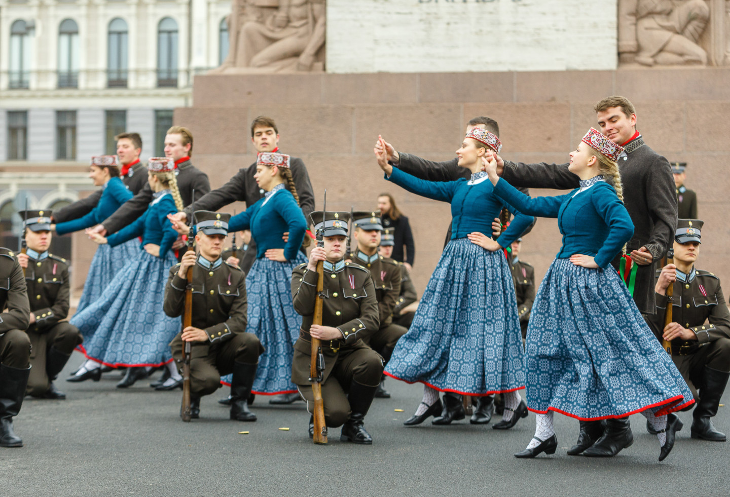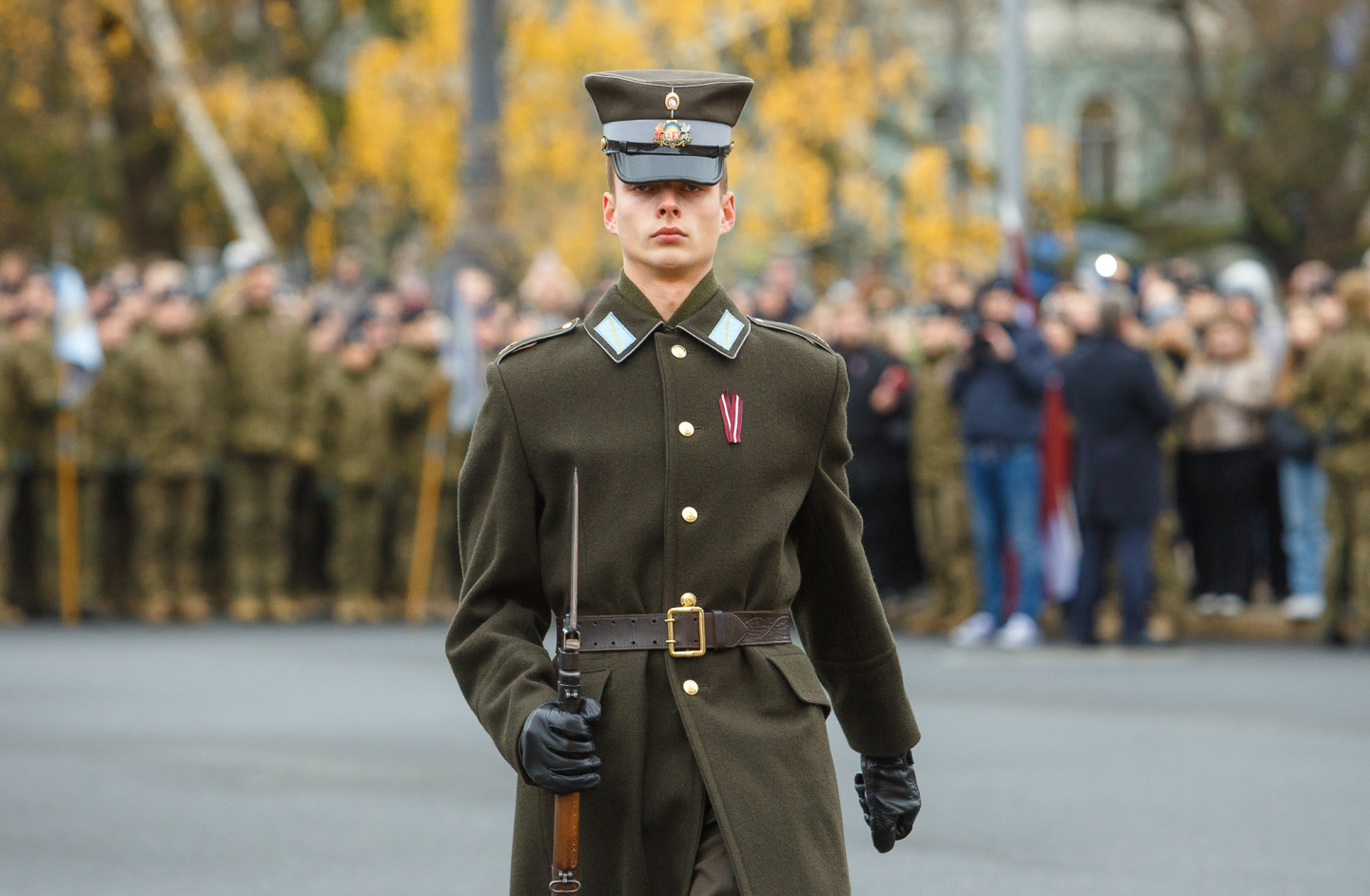 Lāčplēša dienā pie Brīvības pieminekļa norisinājas svinīgā godasardzes maiņa. Pēc kuras bija iespēja vērot Štāba orķestra un valsts aizsardzības dienesta karavīru veidoto defilē programmu.