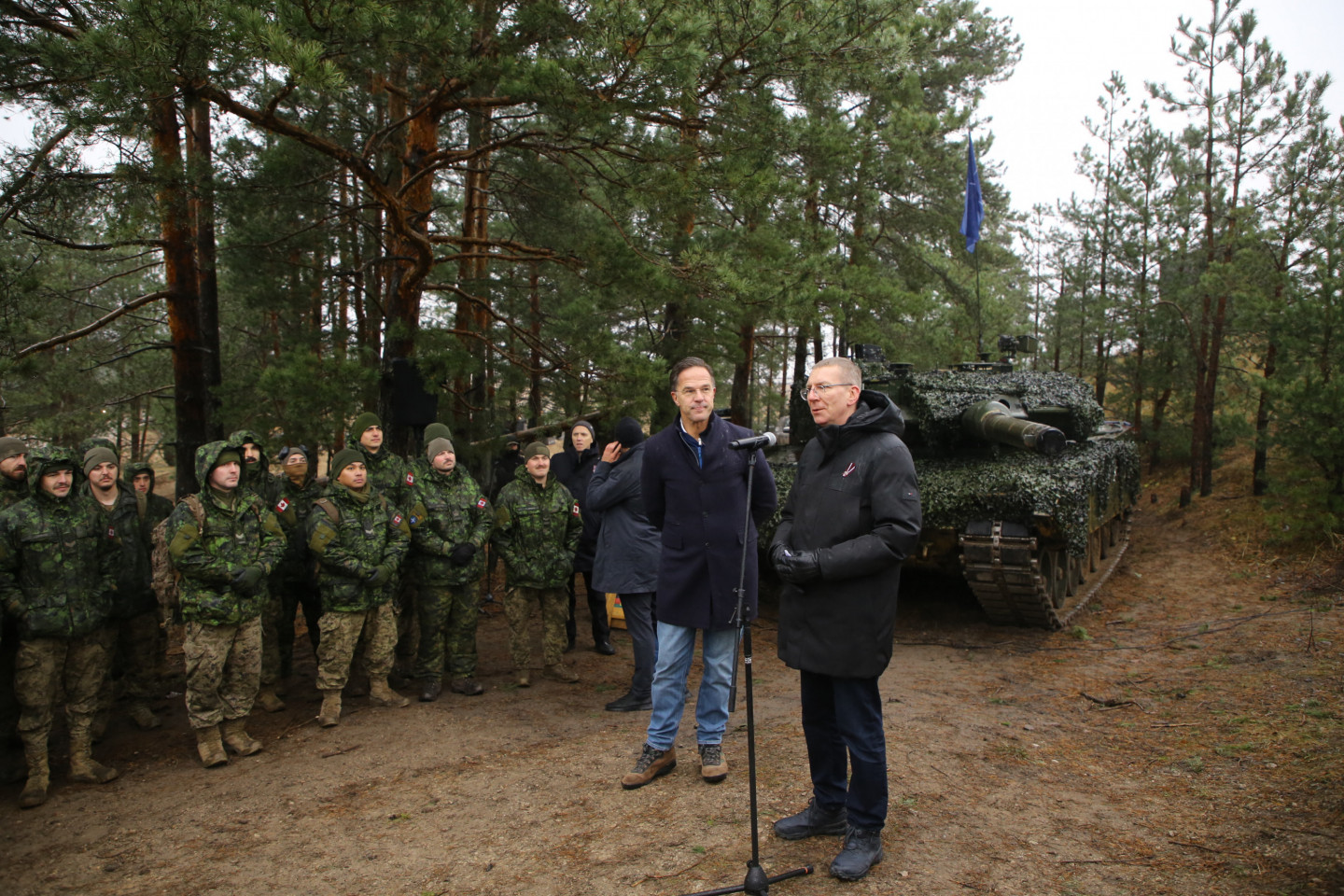 Ādažu militārajā poligonā šodien notika NATO daudznacionālās brigādes Latvijā pirmo pilna mēroga mācību "Resolute Warrior 2024" paraugdemonstrējums, kuru apmeklēja NATO ģenerālsekretārs Marks Rite un Valsts prezidents Edgars Rinkēvičs