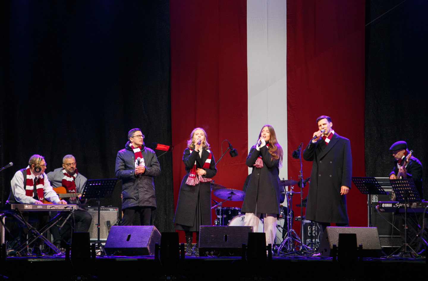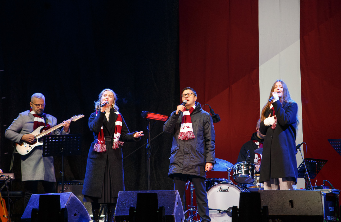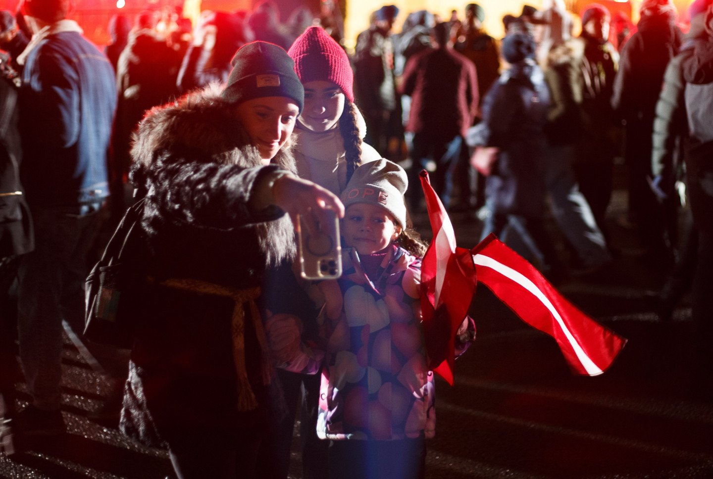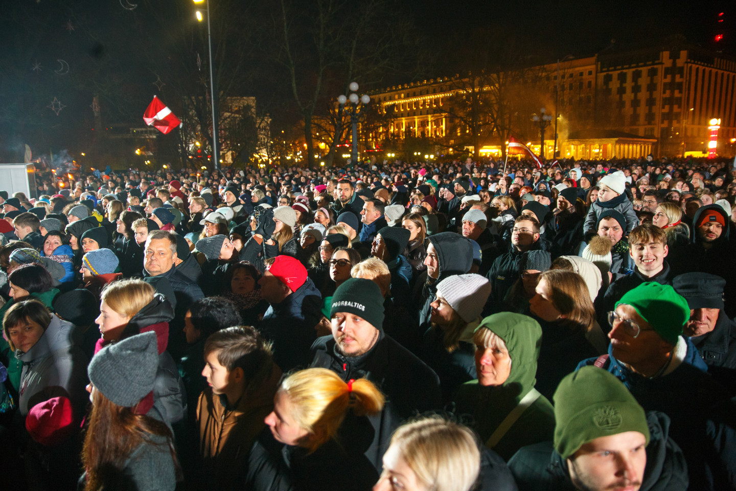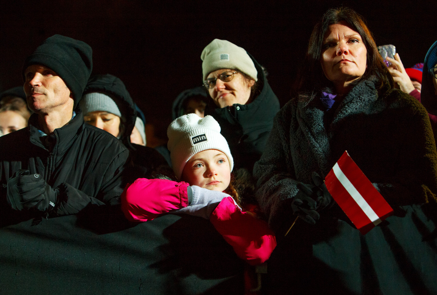 Brīvības laukumā norisinās Latvijas Republikas proklamēšanas gadadienai veltīts svinīgs pasākums un lāzeru gaismas priekšnesums.