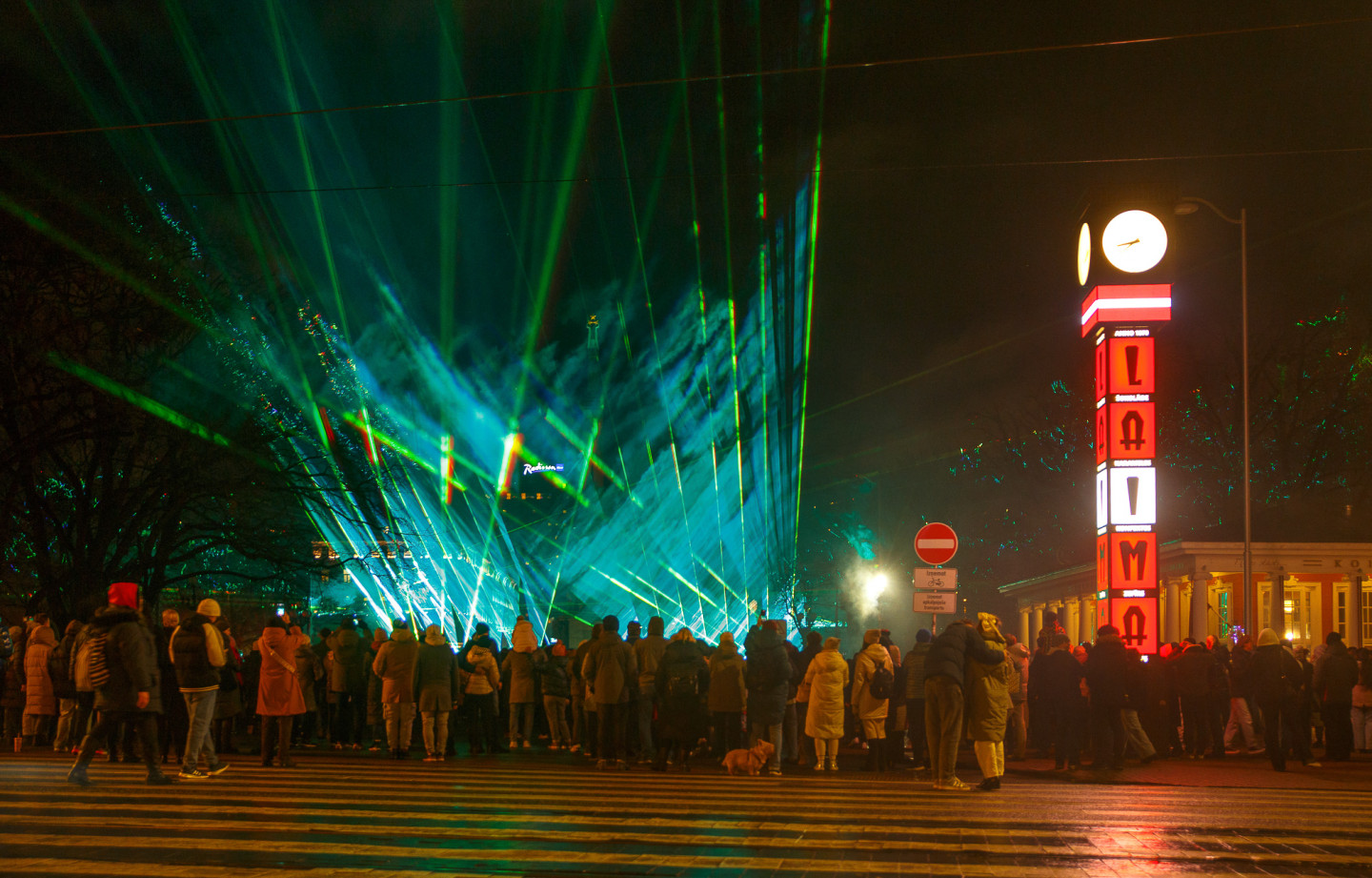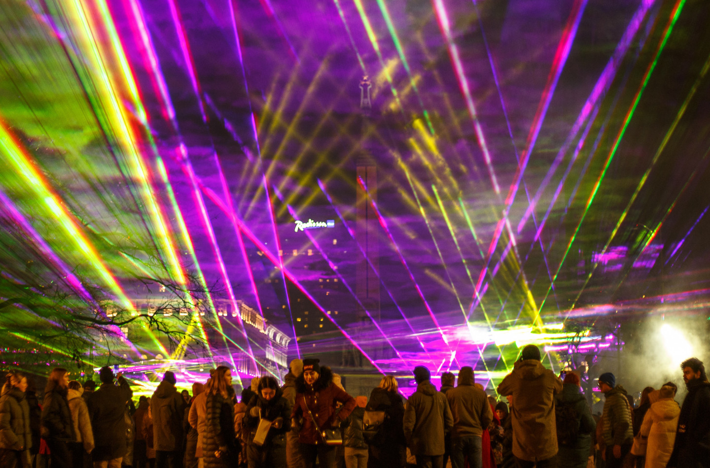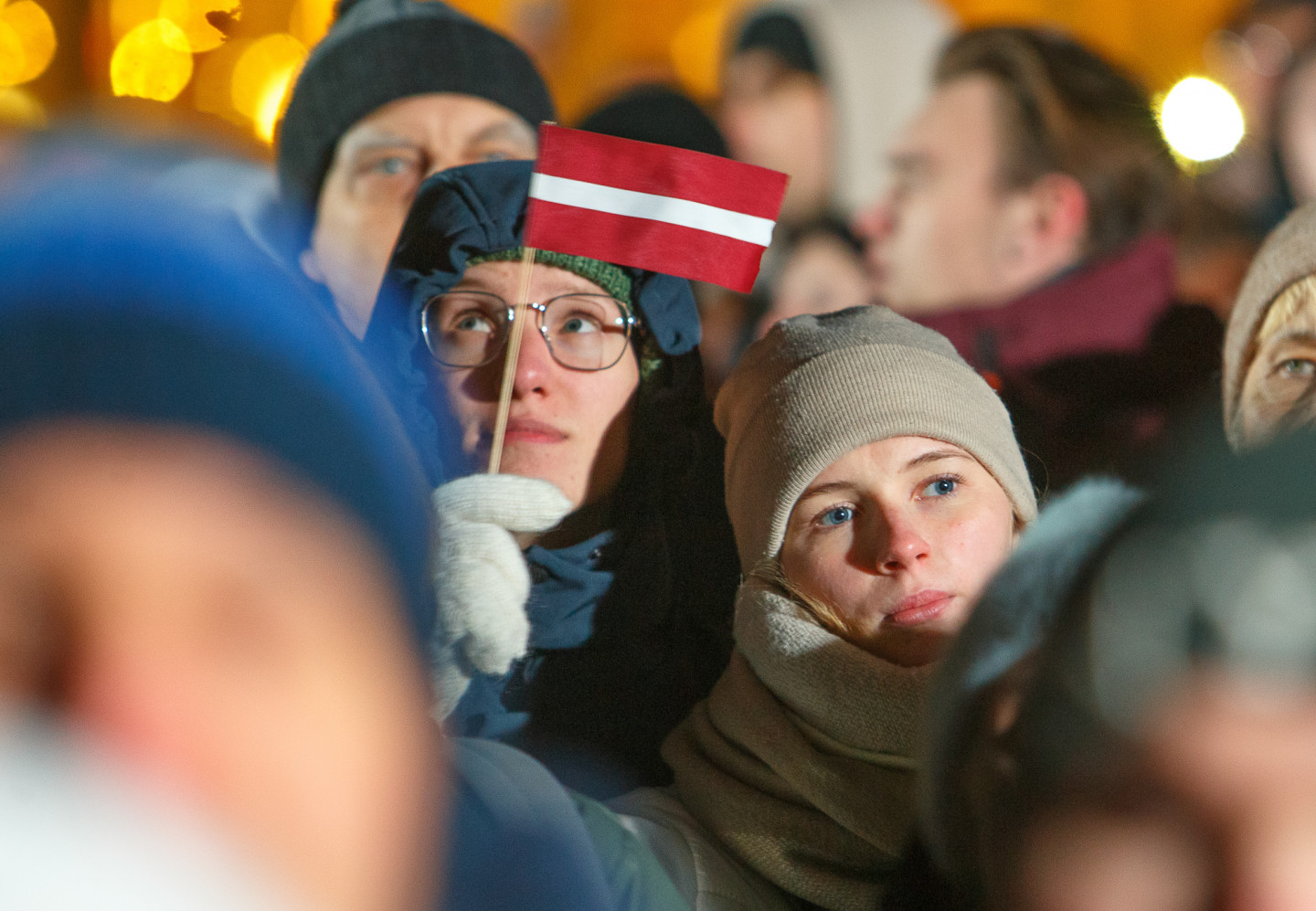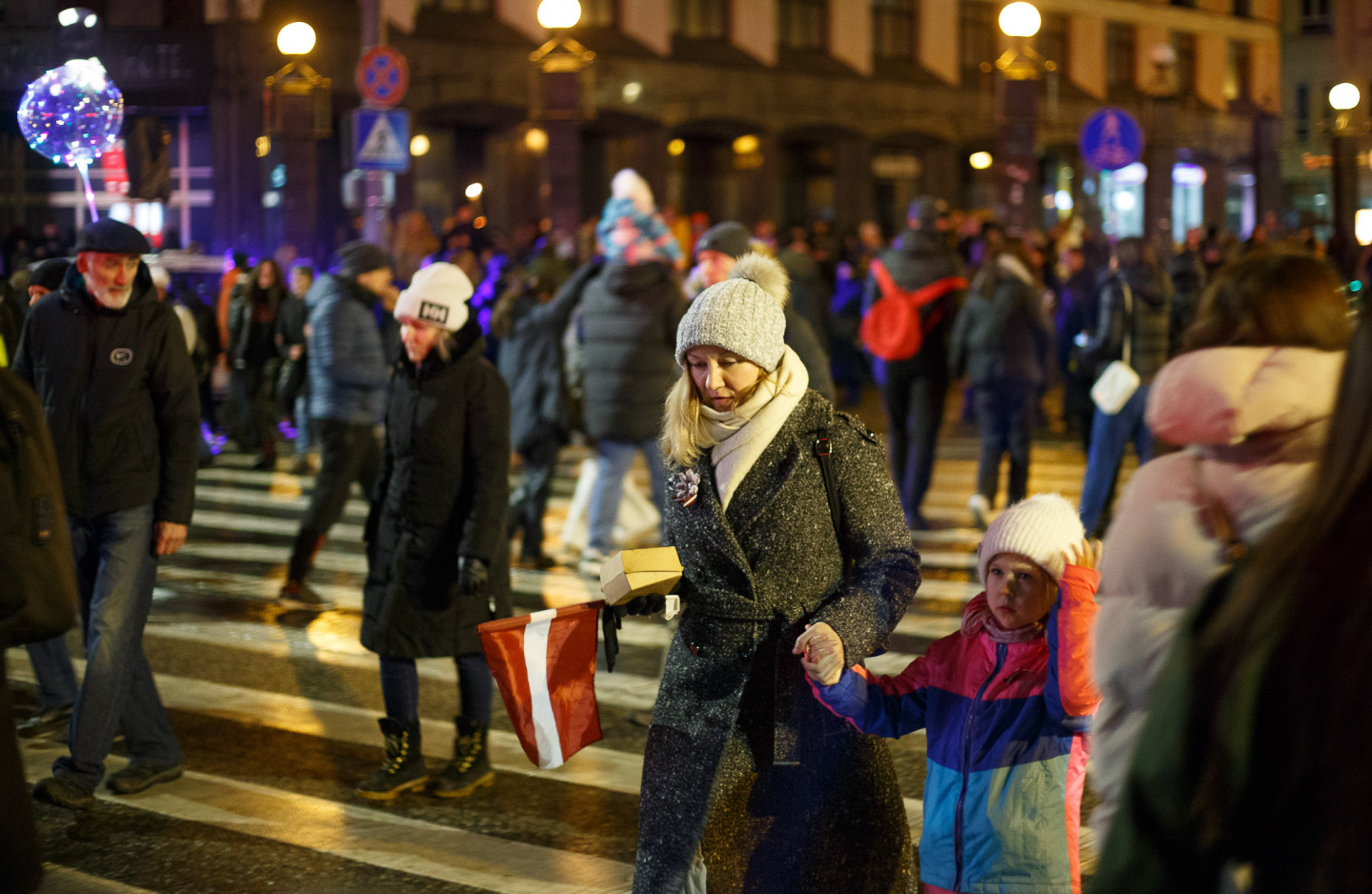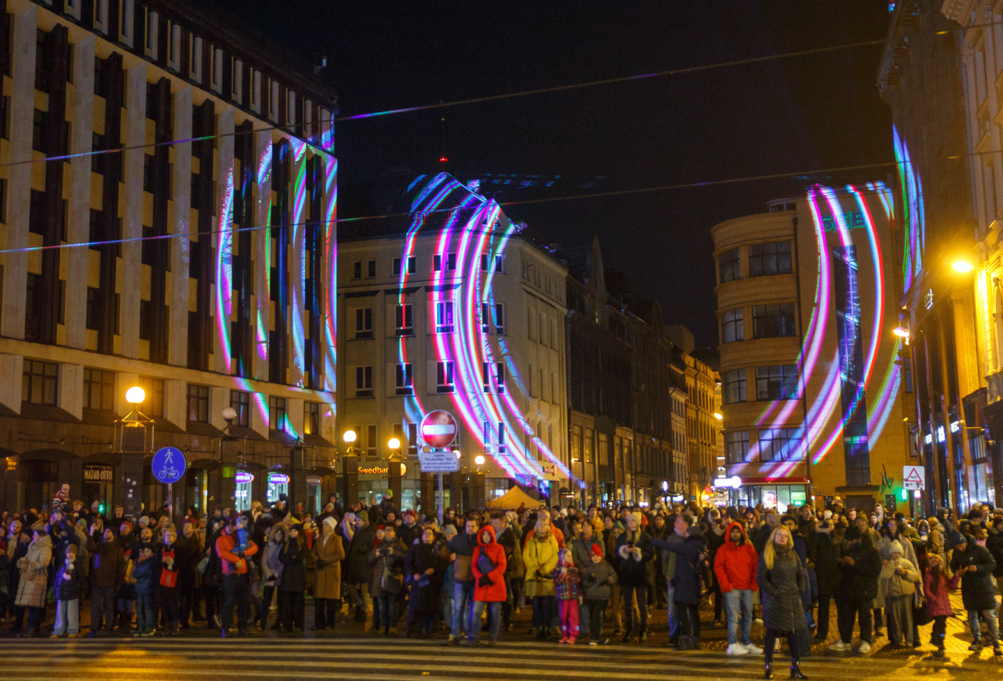 Brīvības laukumā norisinās Latvijas Republikas proklamēšanas gadadienai veltīts svinīgs pasākums un lāzeru gaismas priekšnesums.