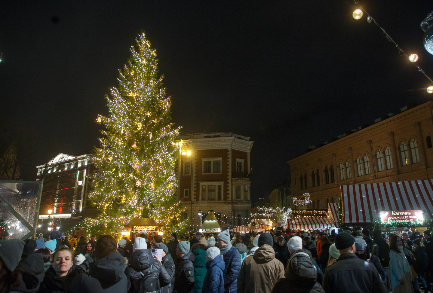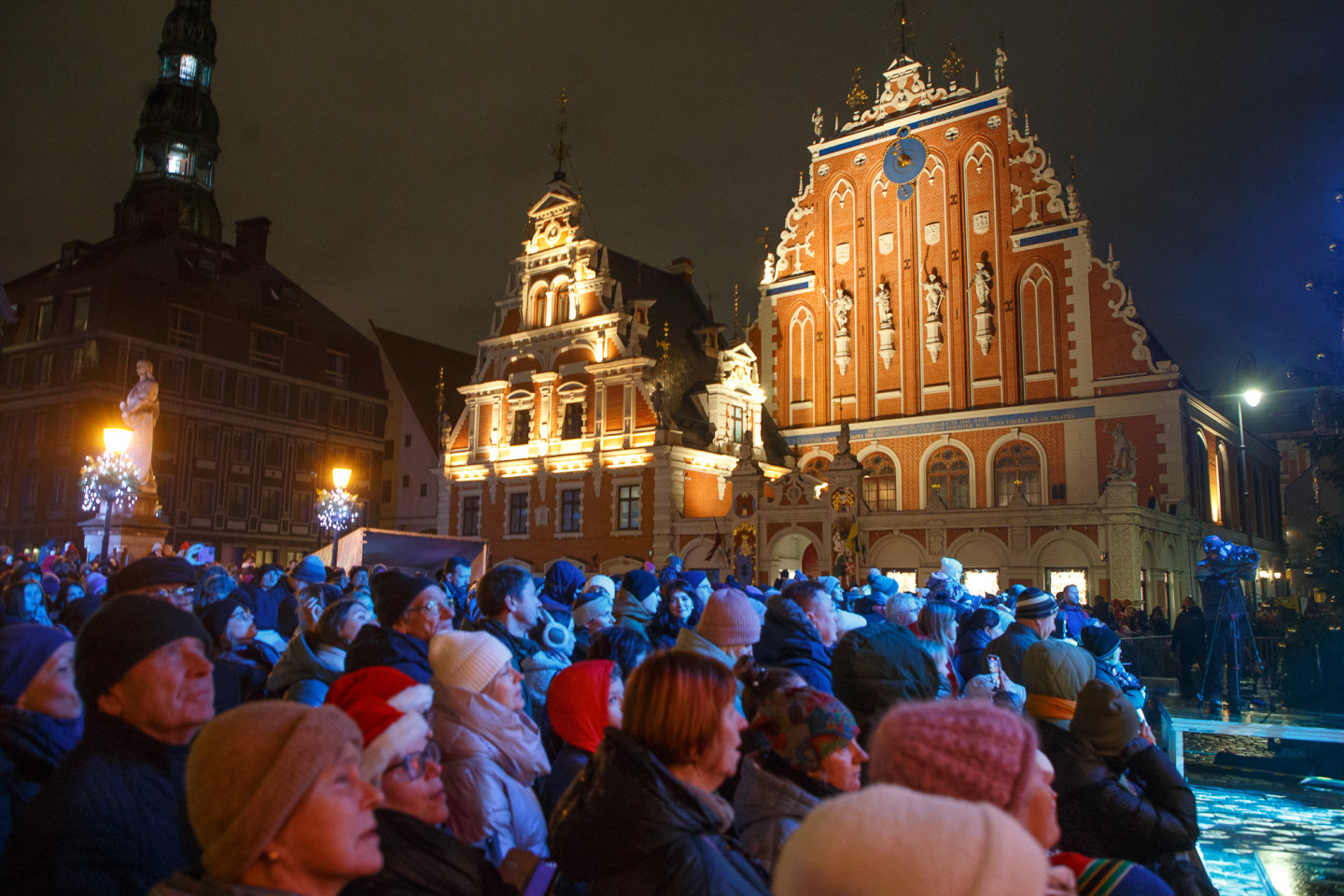 Pirmās Adventes priekšvakarā, Rīgā notika galveno Ziemassvētku egļu iedegšanas pasākumi Rātslaukumā un Doma laukumā.