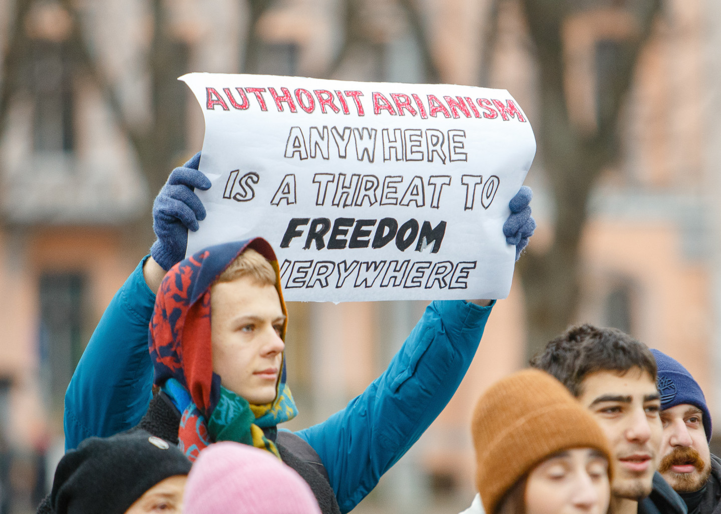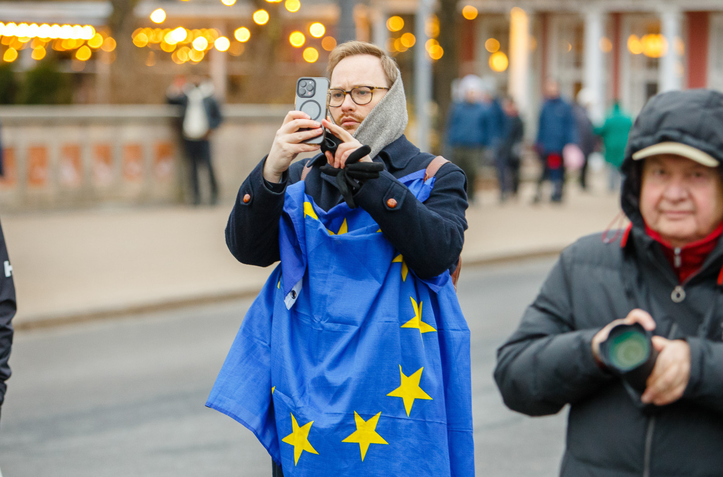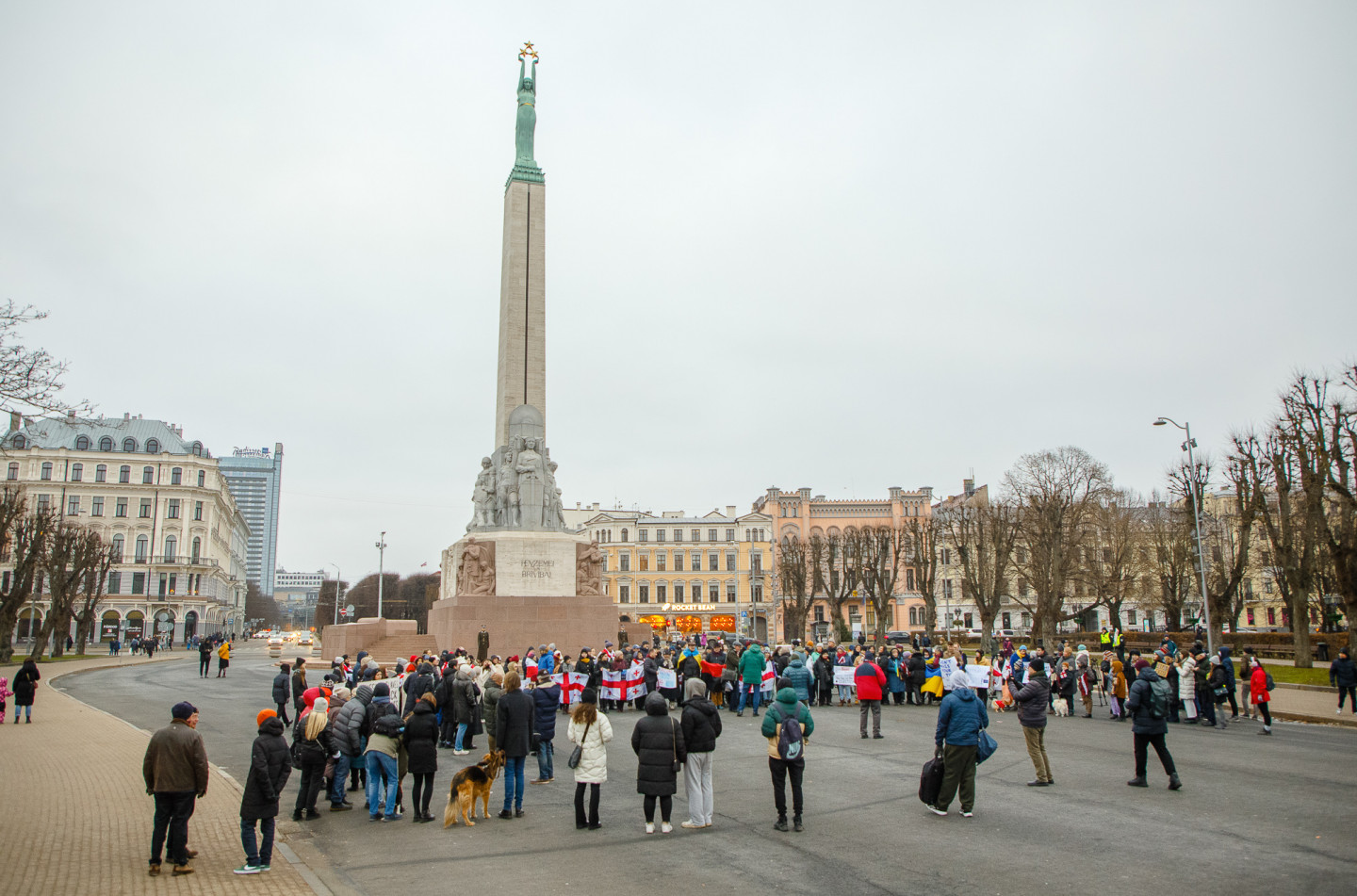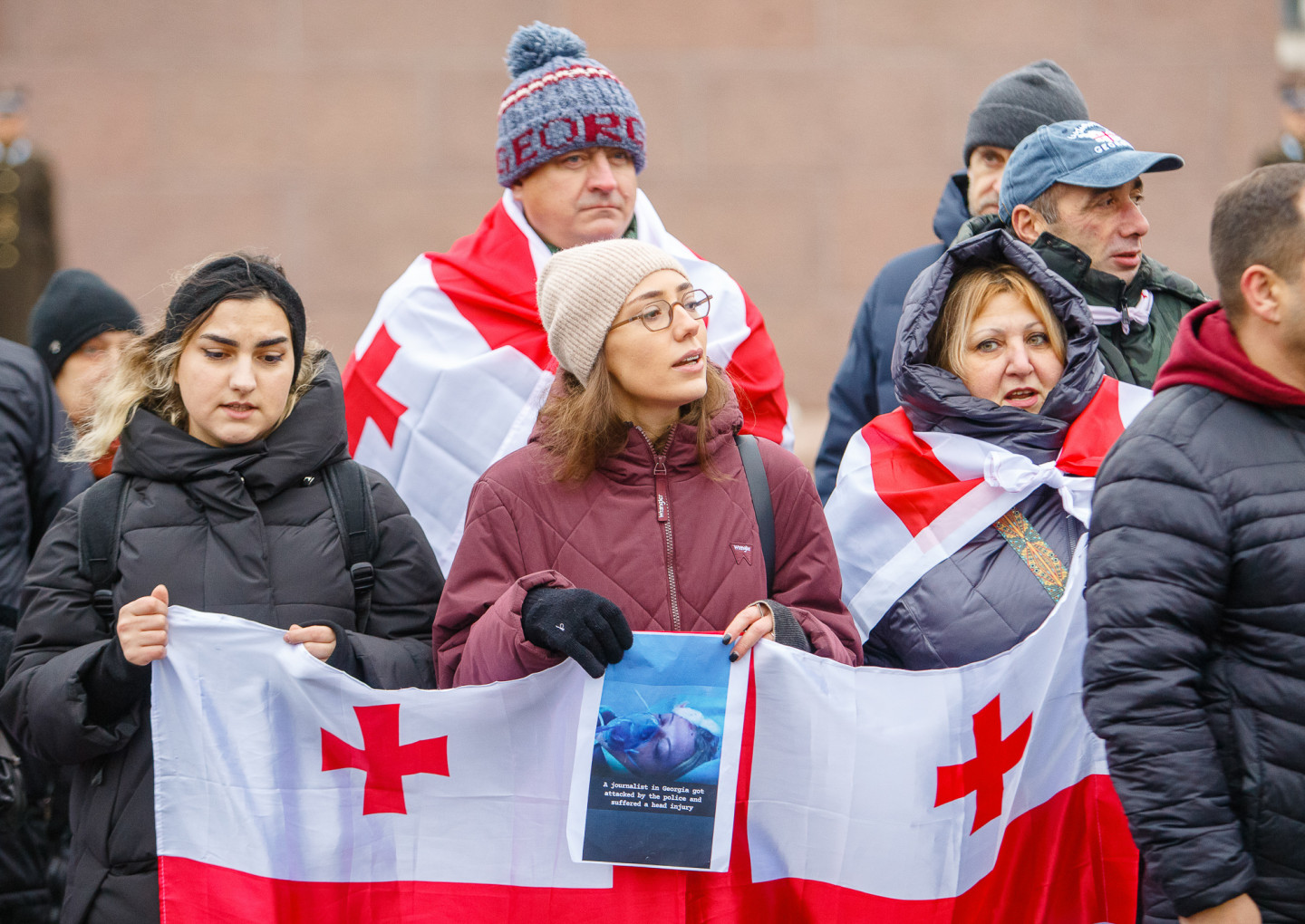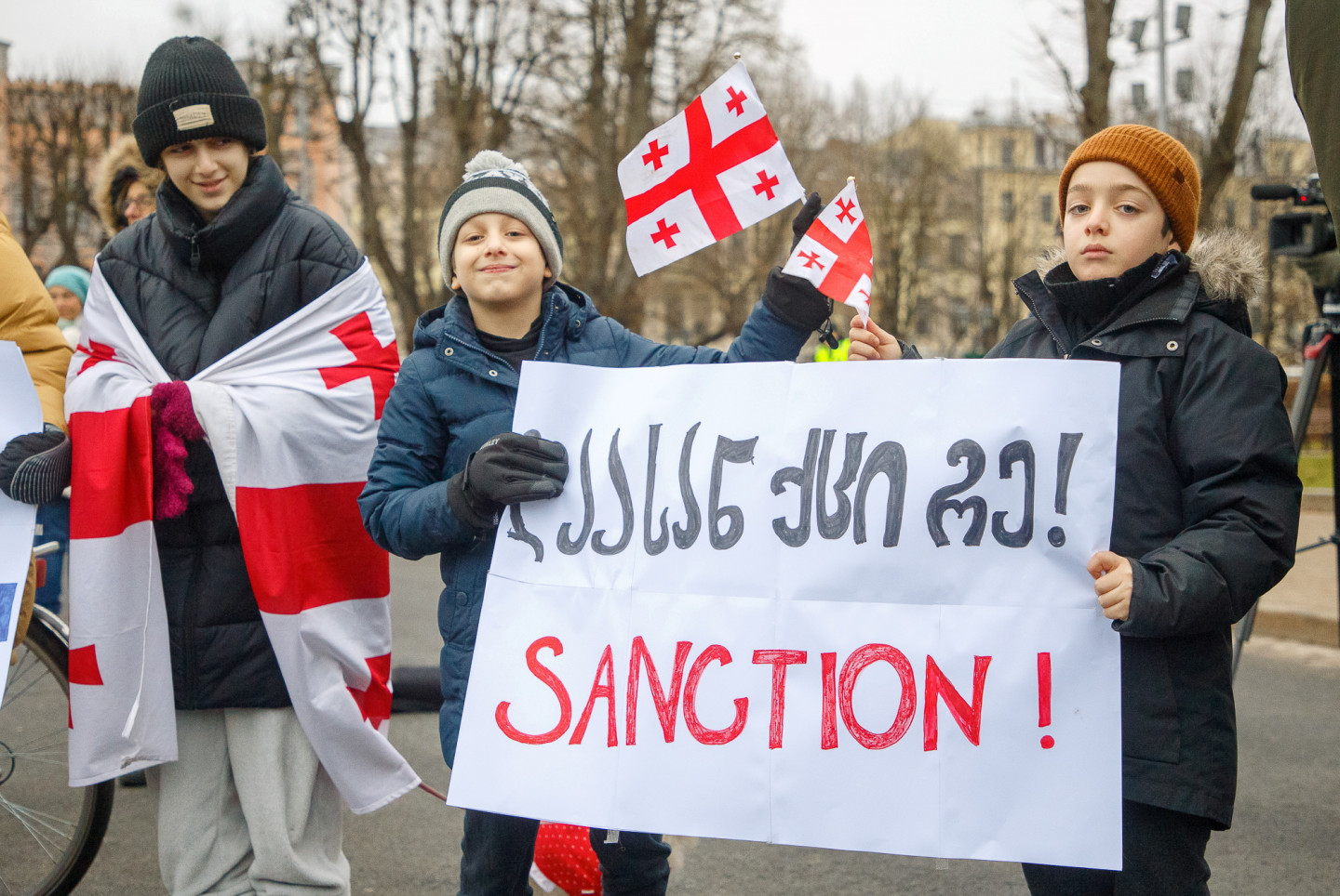 Latvijā dzīvojošo gruzīnu sestdien rīkotajā akcijā pie Brīvības pieminekļa Rīgā atbalstīt Gruzijas tautas prasību par tiesībām virzīties uz dalību Eiropas Savienībā (ES) bija ieradušies aptuveni 100 cilvēki, novēroja aģentūra LETA. Piketa dalībnieki rokās turēja pārsvarā Gruzijas karogus, tāpat bija arī daži Ukrainas un Latvijas karogi. Akcijas dalībnieku plakātos teikts, ka "Gruzija - tā ir Eiropa", "Nepalaidiet garām savu pagriezienu", aicinājums apturēt vardarbību pret miermīlīgajiem protestētājiem, "Par Gruzijas nākotni Eiropā", "Apturiet Bidzinas kuces!" un citi. Akcijas dalībnieki teica uzrunas gruzīnu valodā, kā arī latviešu valodā. Kādā no uzrunām tika uzsvērts, ka Krievija ir Gruzijas un Latvijas kopīgais ienaidnieks, kas 2008.gadā okupēja 20% Gruzijas teritorijas, bet tagad ir okupējis 100% teritorijas. Izskanēja arī uzruna Ukrainas atbalstam.