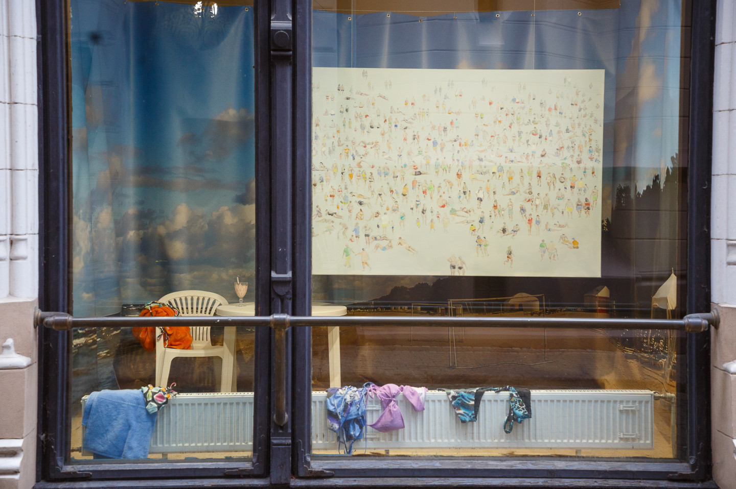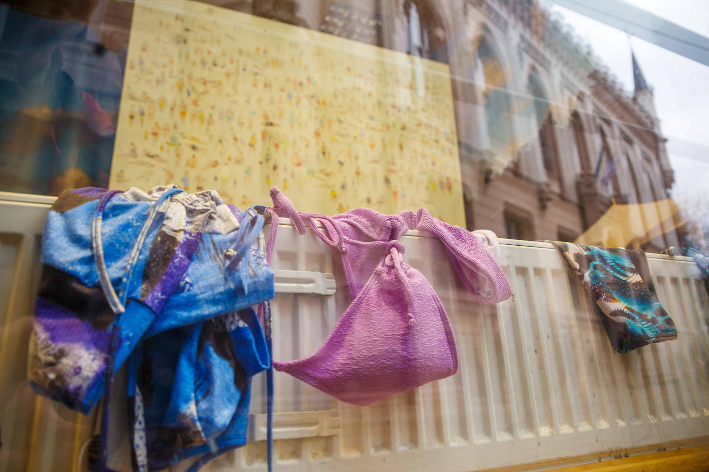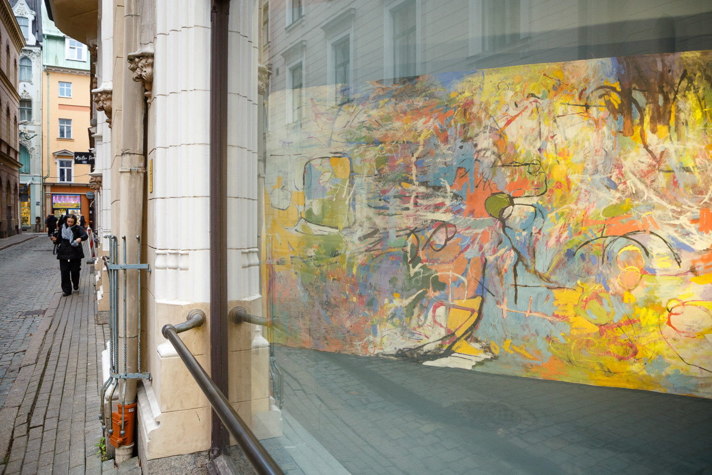 Divu Vecrīgas ēku skatlogos - Amatu ielā 4 un Kaļķu ielā 8 - scenogrāfiski iekārtotā vidē eksponēti Latvijas Mākslas akadēmijas studentu darbi no lielizstādes “Jaunmarka” 2024./2025. gada ekspozīcijas.