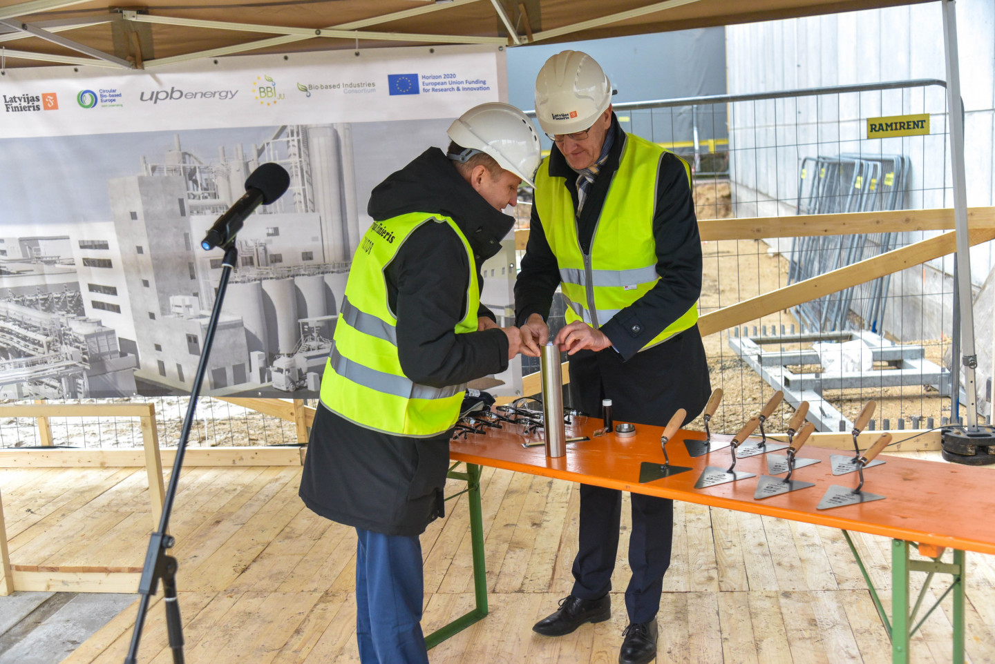 Atzīmējot jaunas sveķu rūpnīcas būvniecības sākšanu, AS "Latvijas finieris" šodien jaunās rūpnīcas ēkas pamatos iebūvēja kapsulu ar vēstījumiem nākamajām paaudzēm