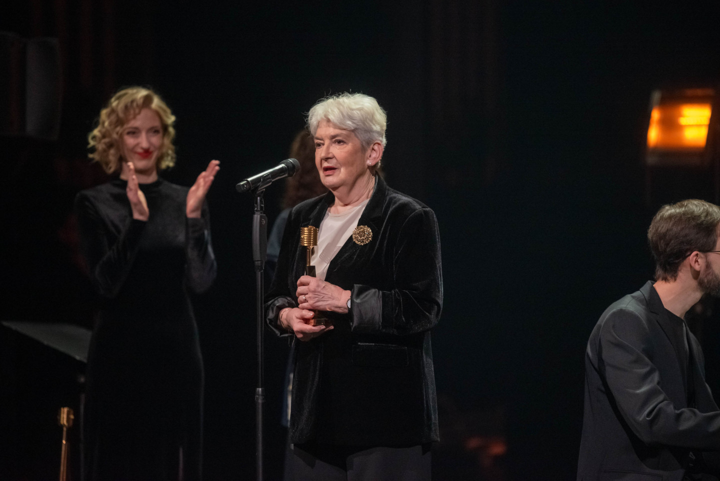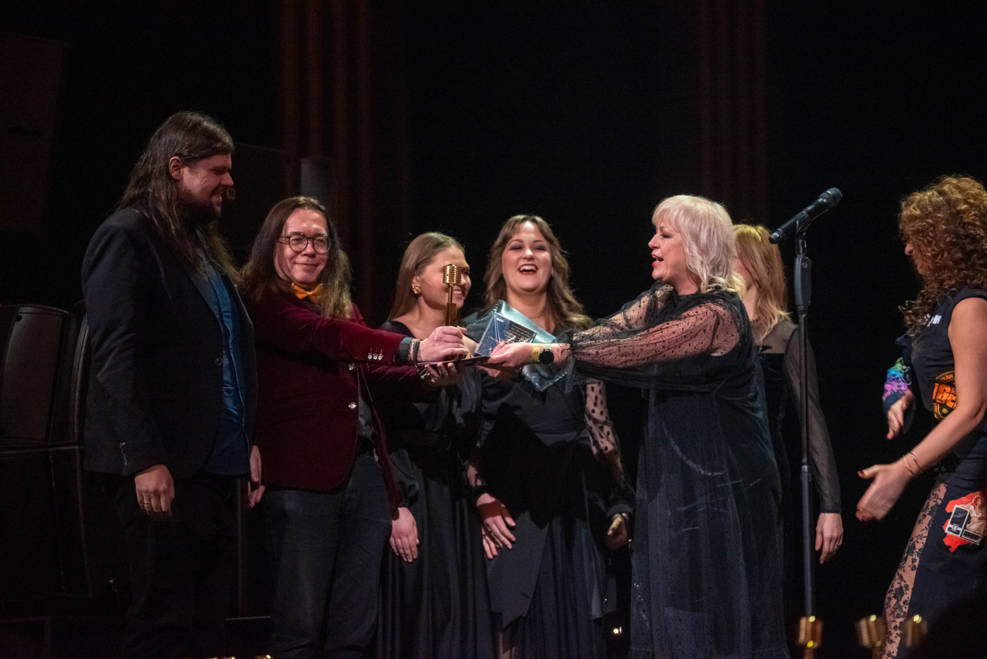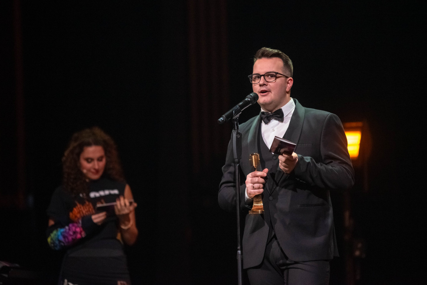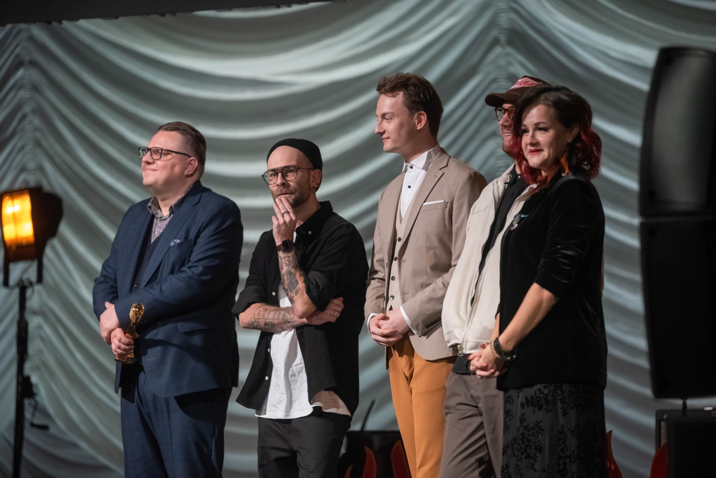 Latvijas Nacionālajā teātrī sestdien tika pasniegtas "Zelta mikrofona" balvas, kur ar piecām saņemtām statuetēm triumfējis mūziķis "Chris Noah".