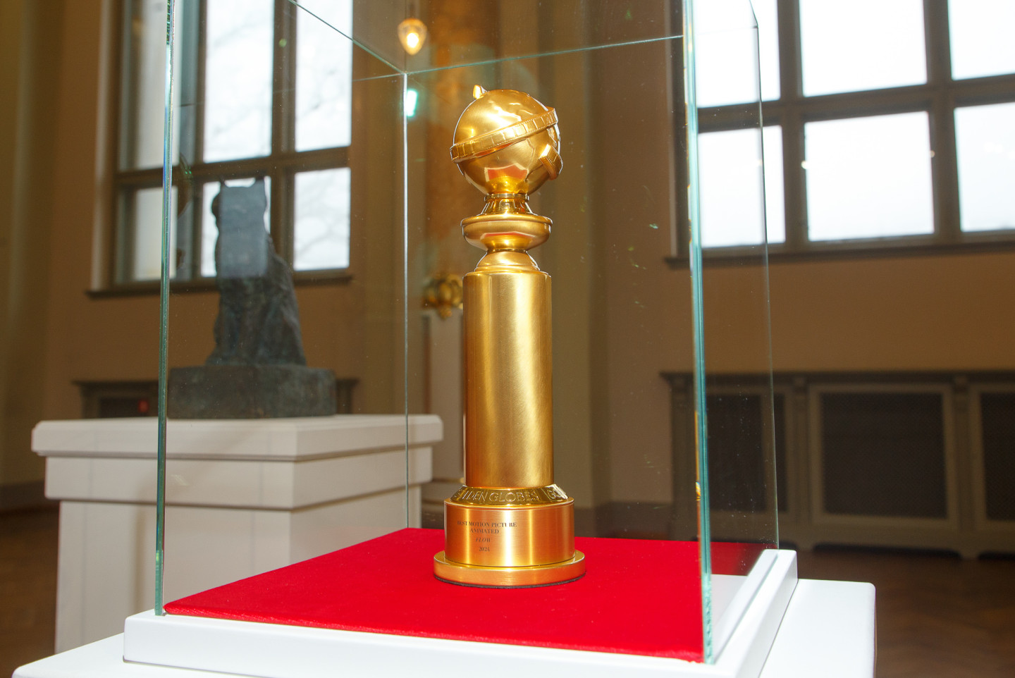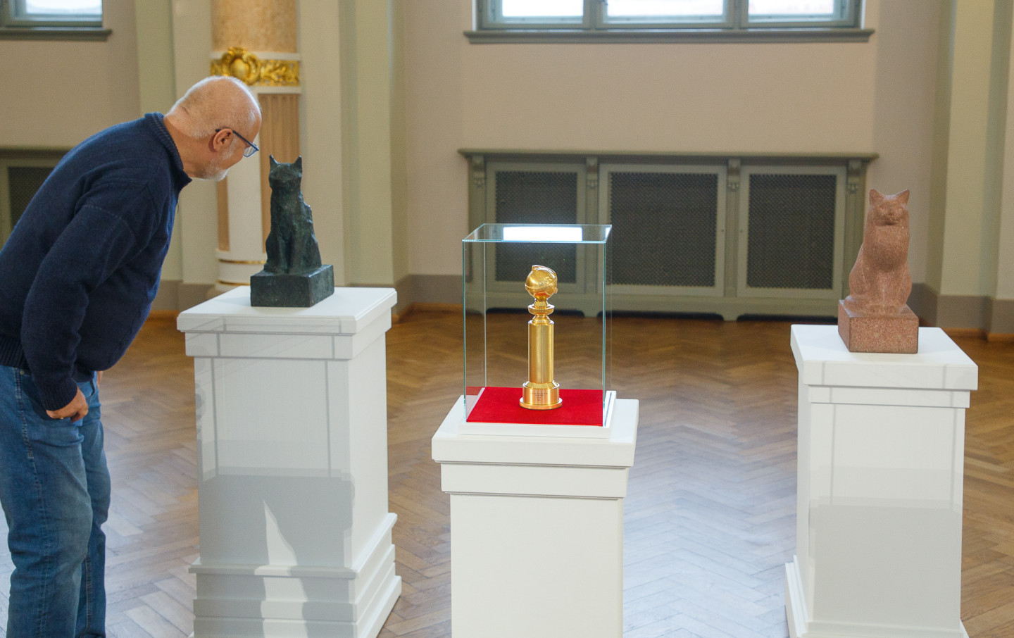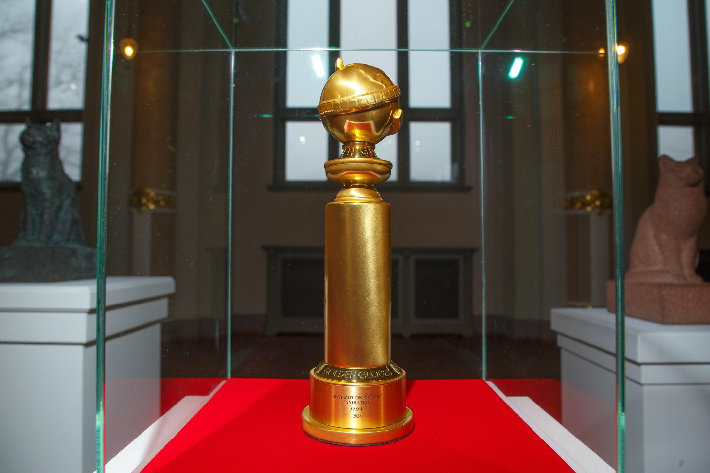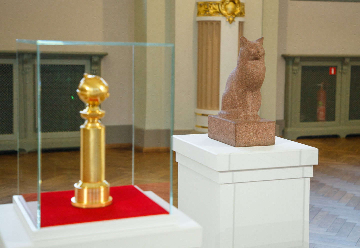 Latvijas Nacionālajā mākslas muzejā īpašā vitrīnā apskatāma režisora Ginta Zilbaloža balva Zelta globuss.