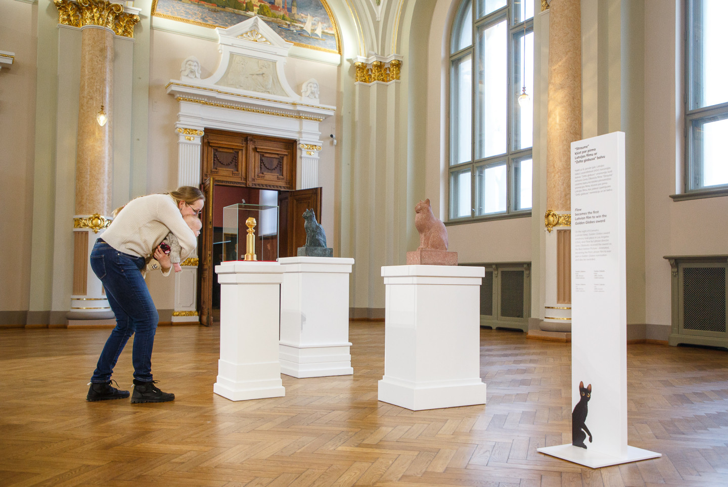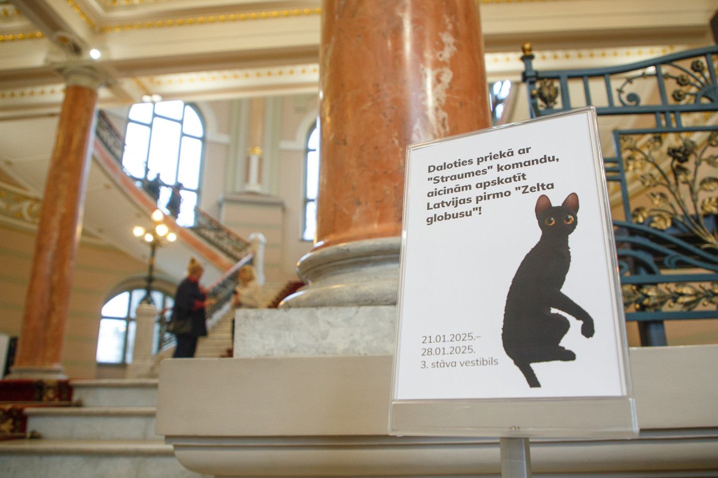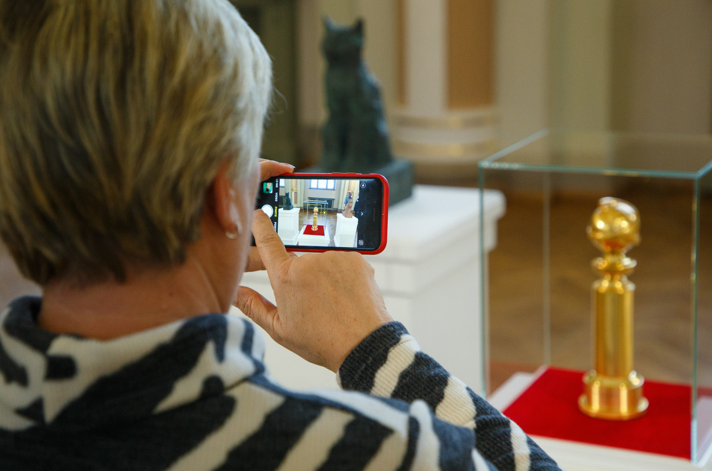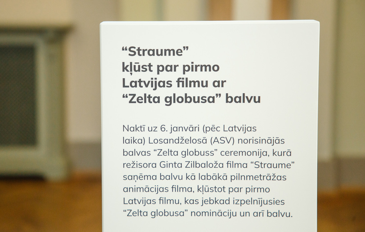 Latvijas Nacionālajā mākslas muzejā īpašā vitrīnā apskatāma režisora Ginta Zilbaloža balva Zelta globuss.