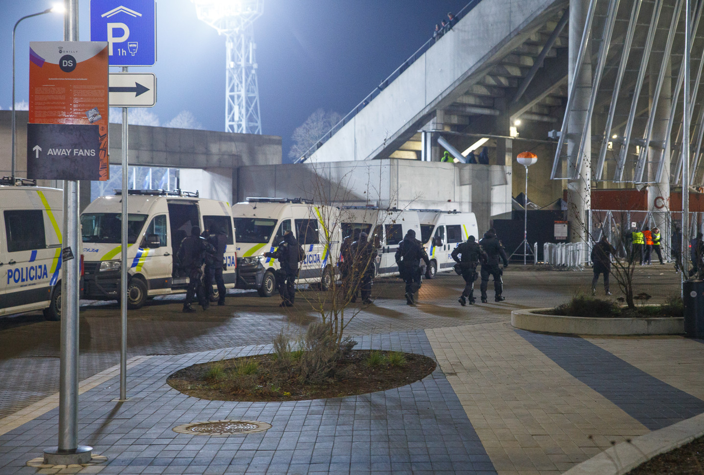 Valsts policija sabiedriskās kārtības un drošības nodrošināšanai Rīgā iesaistījusi plašus policijas spēkus, tostarp Speciālo uzdevumu bataljonu, Rīgas pašvaldības policiju, kā arī klātienes atbalstu sniedzot Nīderlandes policija. Gan ap stadionu ir izvietots, gan pūli pavada liels skaits kārtības sargu, lai nepieļautu nekāda veida nekārtības un sabiedrības apdraudējumu, pauž policija.