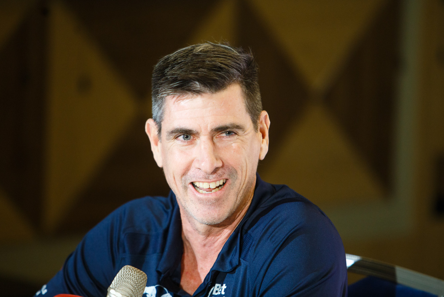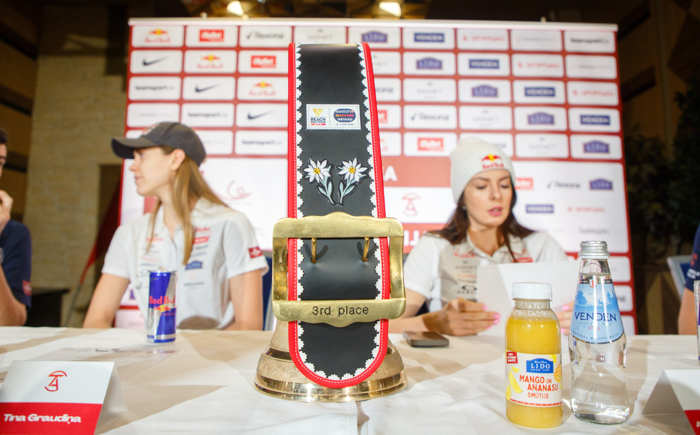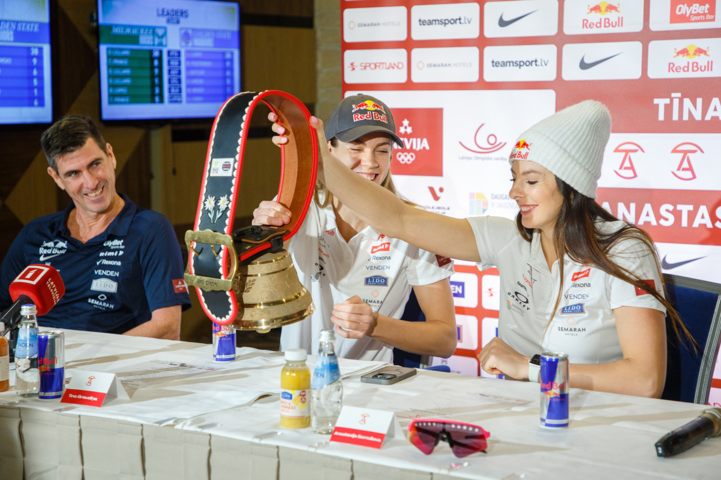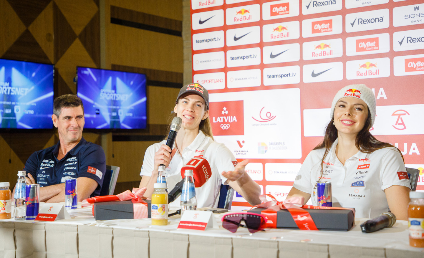 Pludmales volejbola duets Tīna Graudiņa un Anastasija Samoilova preses konferencē iepazīstina ar jauno treneru korpusu un nākotnes plāniem.