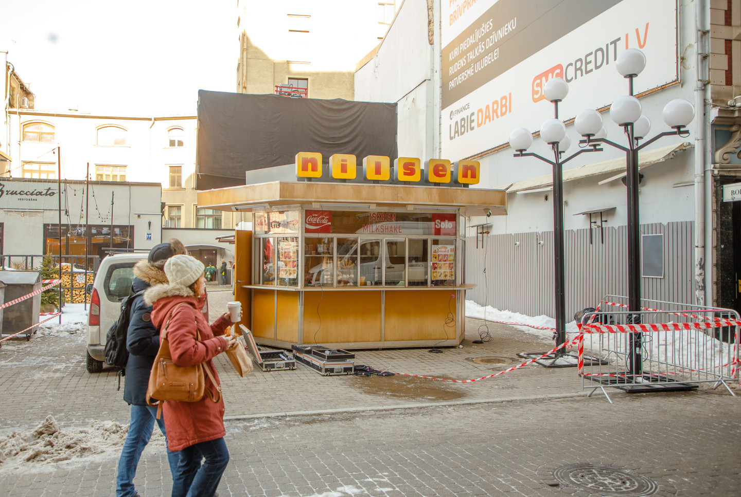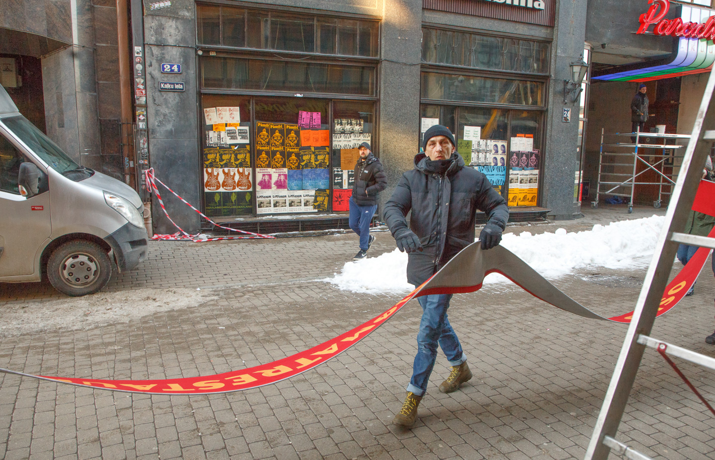 "Asinis sniegā" filmas filmēšana Kaļķu ielā.