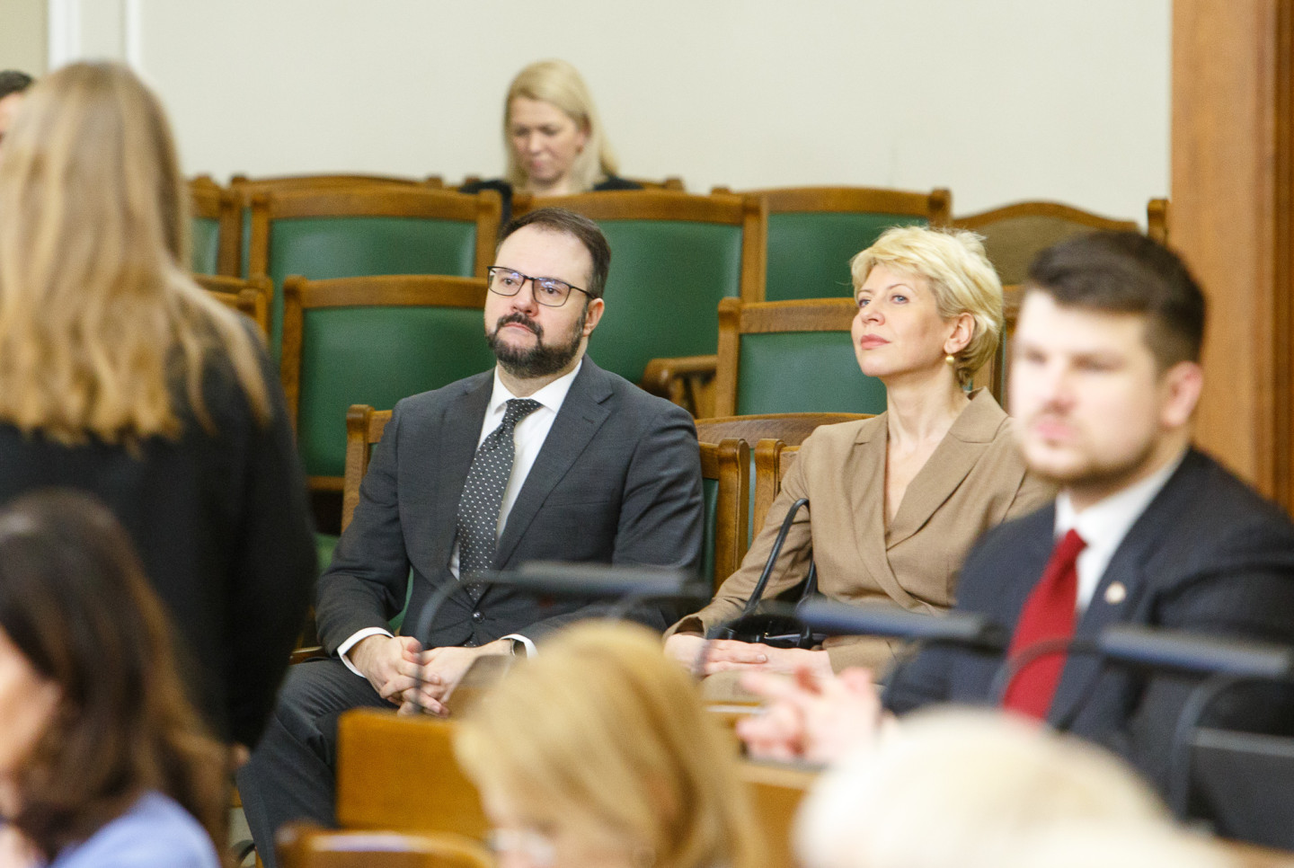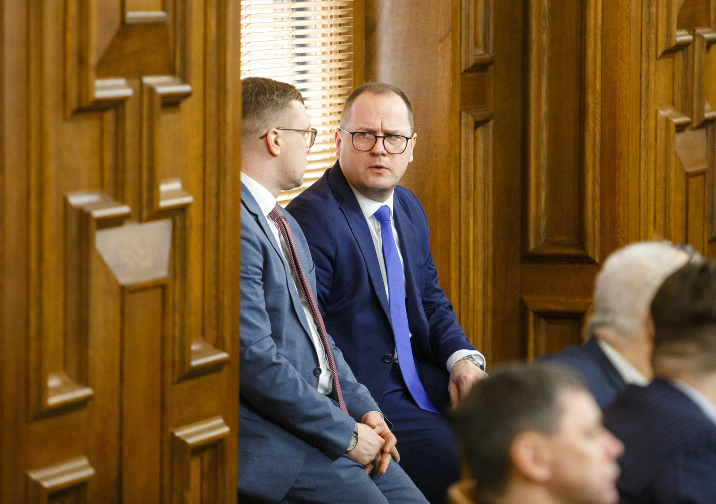 Saeima ceturtdien atjaunoja deputātu mandātus bijušajam satiksmes ministram Kasparam Briškenam (P), labklājības ministram Uldim Augulim (ZZS) un izglītības ministrei Čakšai (JV). Līdz ar šīm izmaiņām darbu 14.Saeimā noslēdza deputāti Ervins Labanovskis (P), Ģirts Štekerhofs (ZZS) un līdzšinējais Saeimas Budžeta komisijas vadītājs Jānis Reirs (JV).