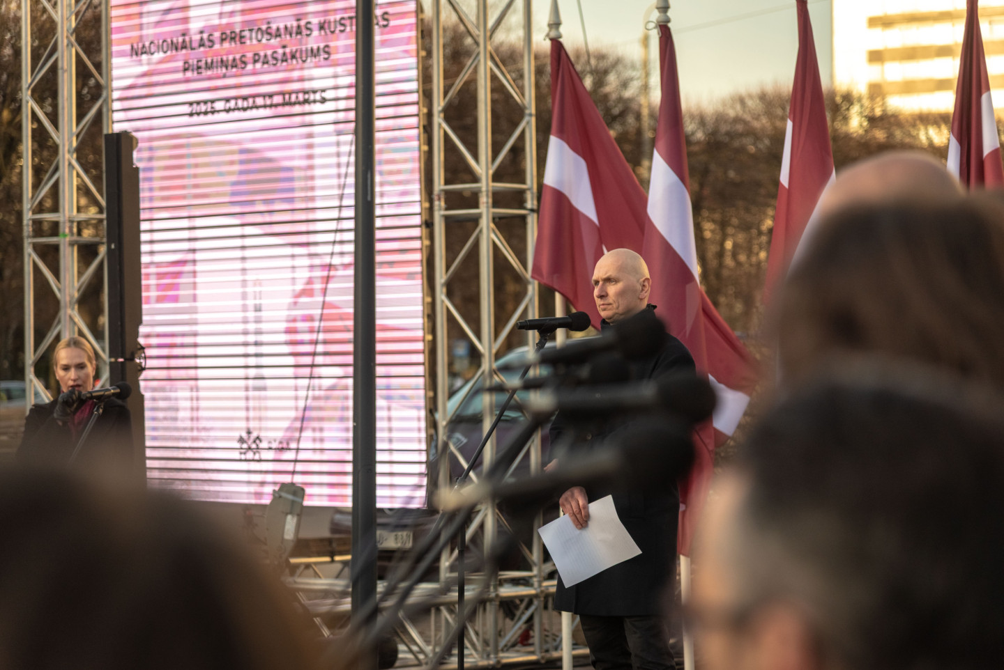 Šodien Rīgā pie Gunāra Astras pieminekļa Baumaņa skvērā notika nacionālās pretošanās kustības piemiņai veltīts svinīgs pasākums.