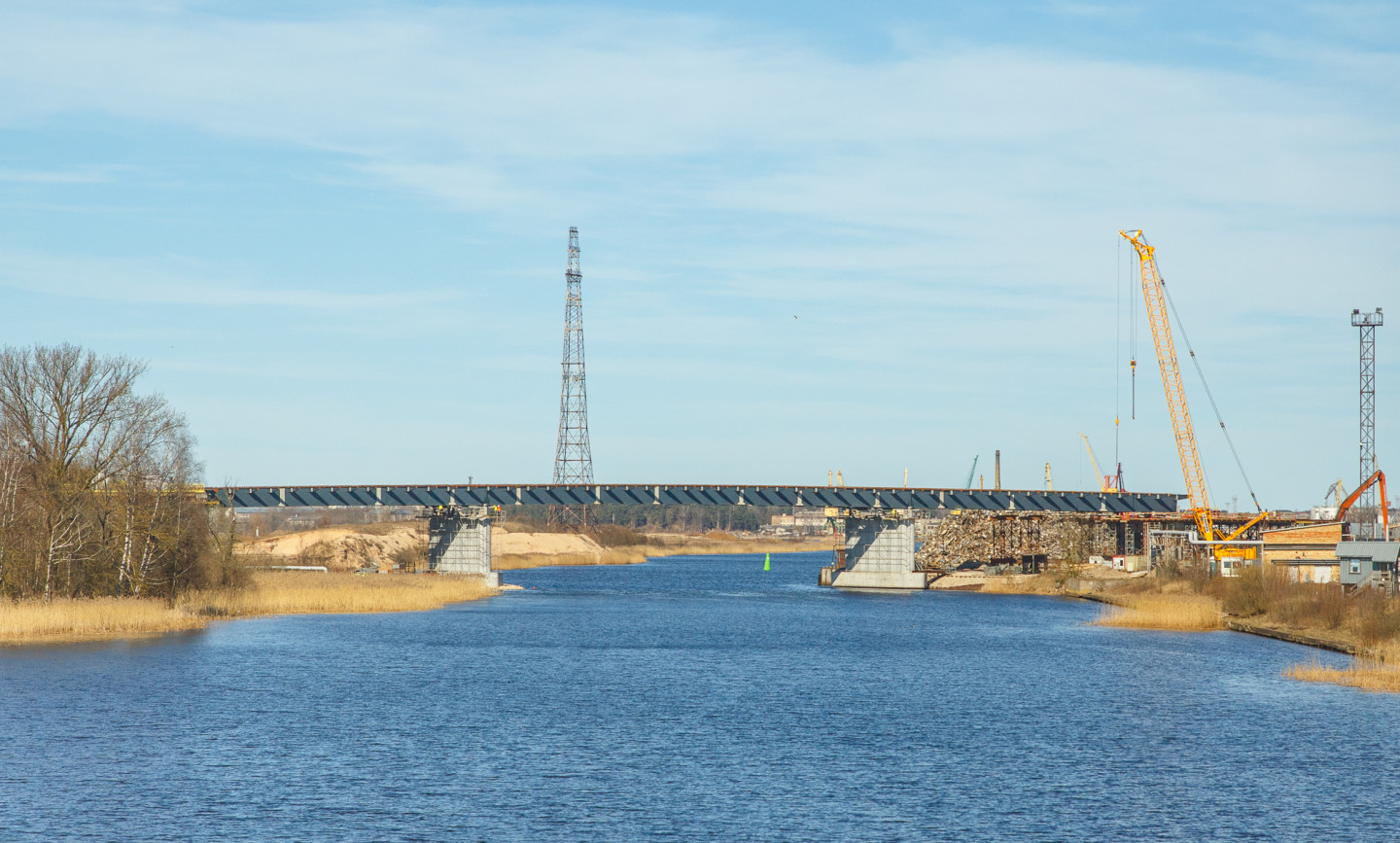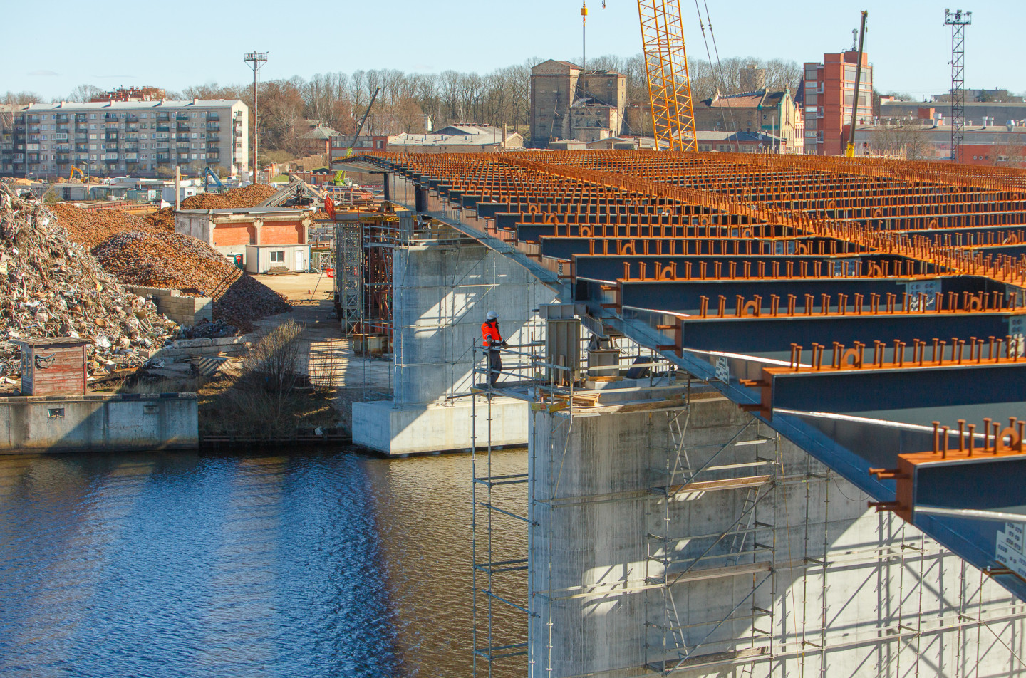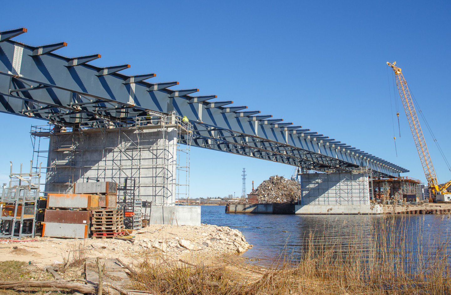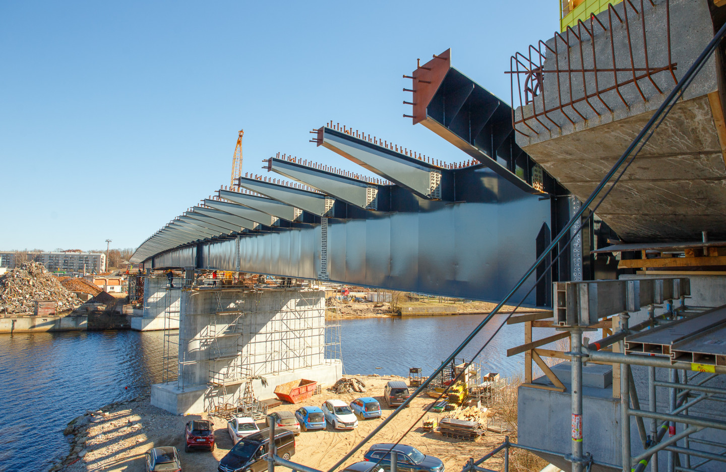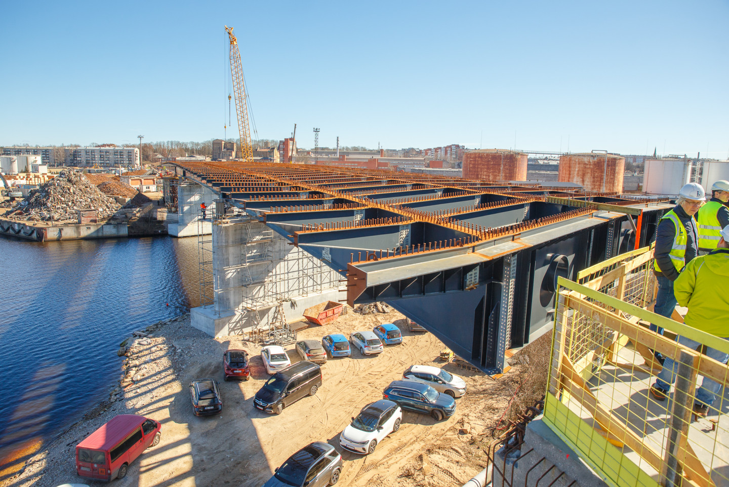 Notika satiksmes pārvada no Tvaika ielas uz Kundziņsalu noslēdzošā centrālā tērauda laiduma uzbīdīšana.