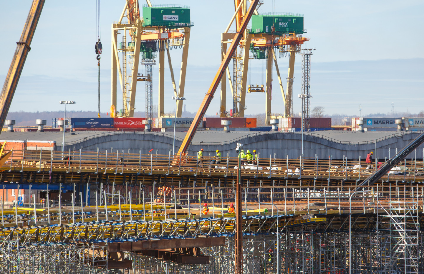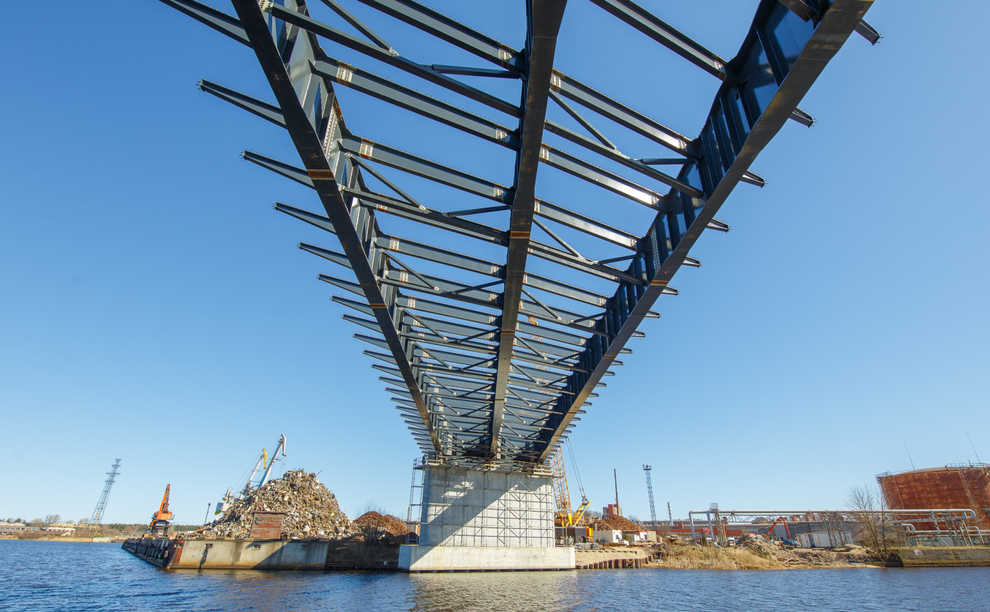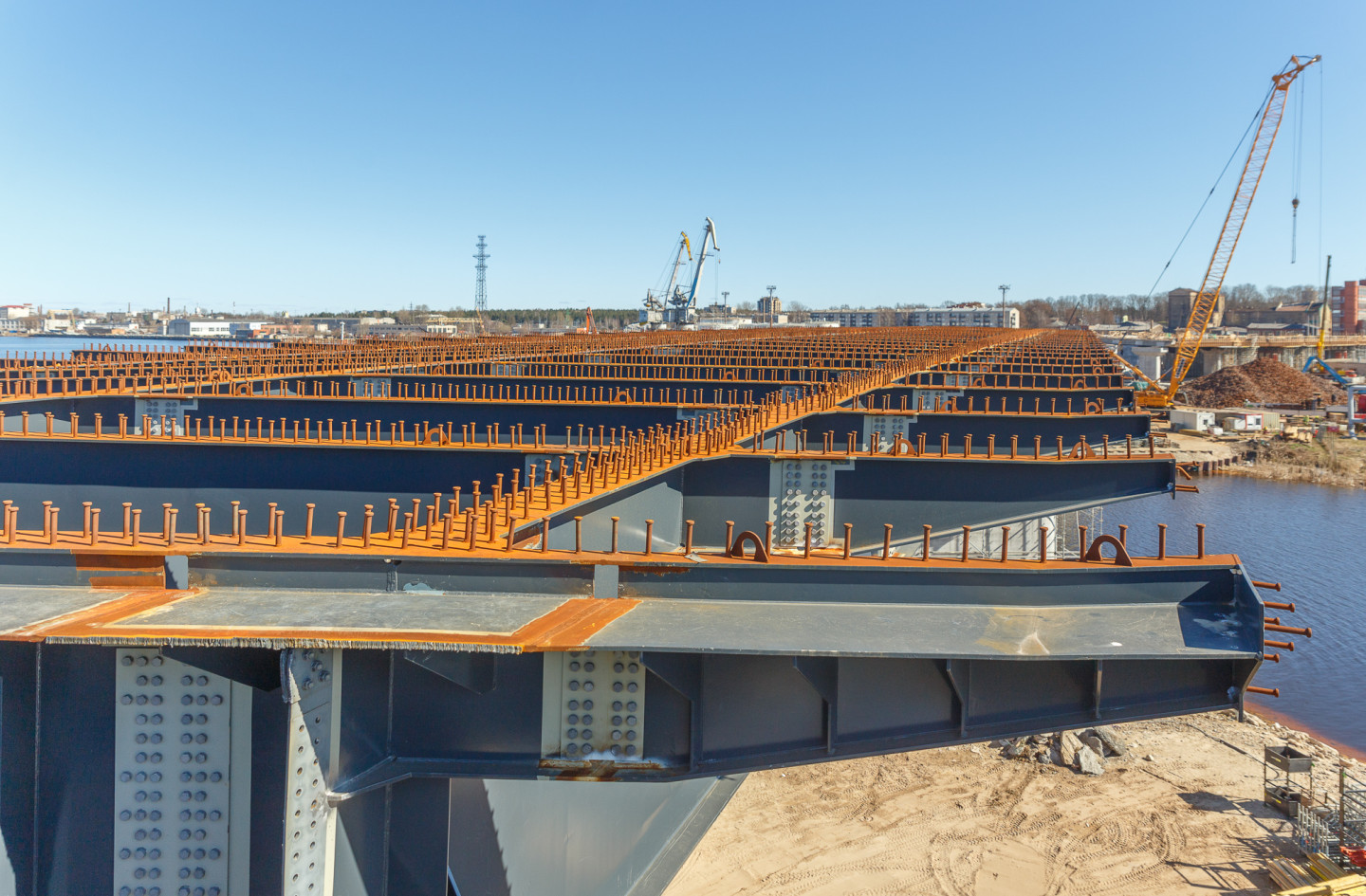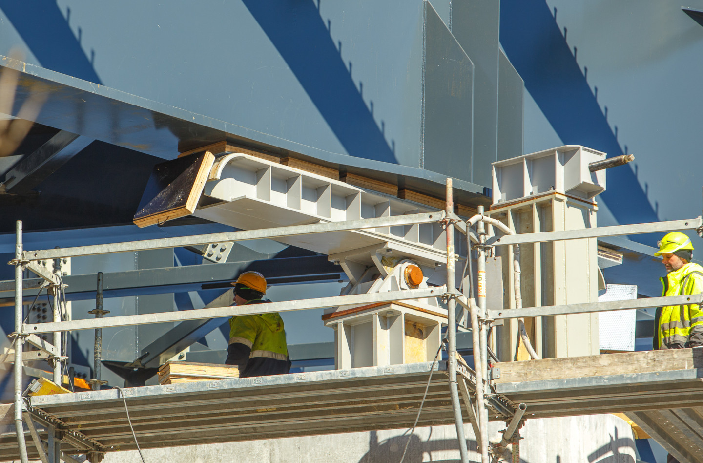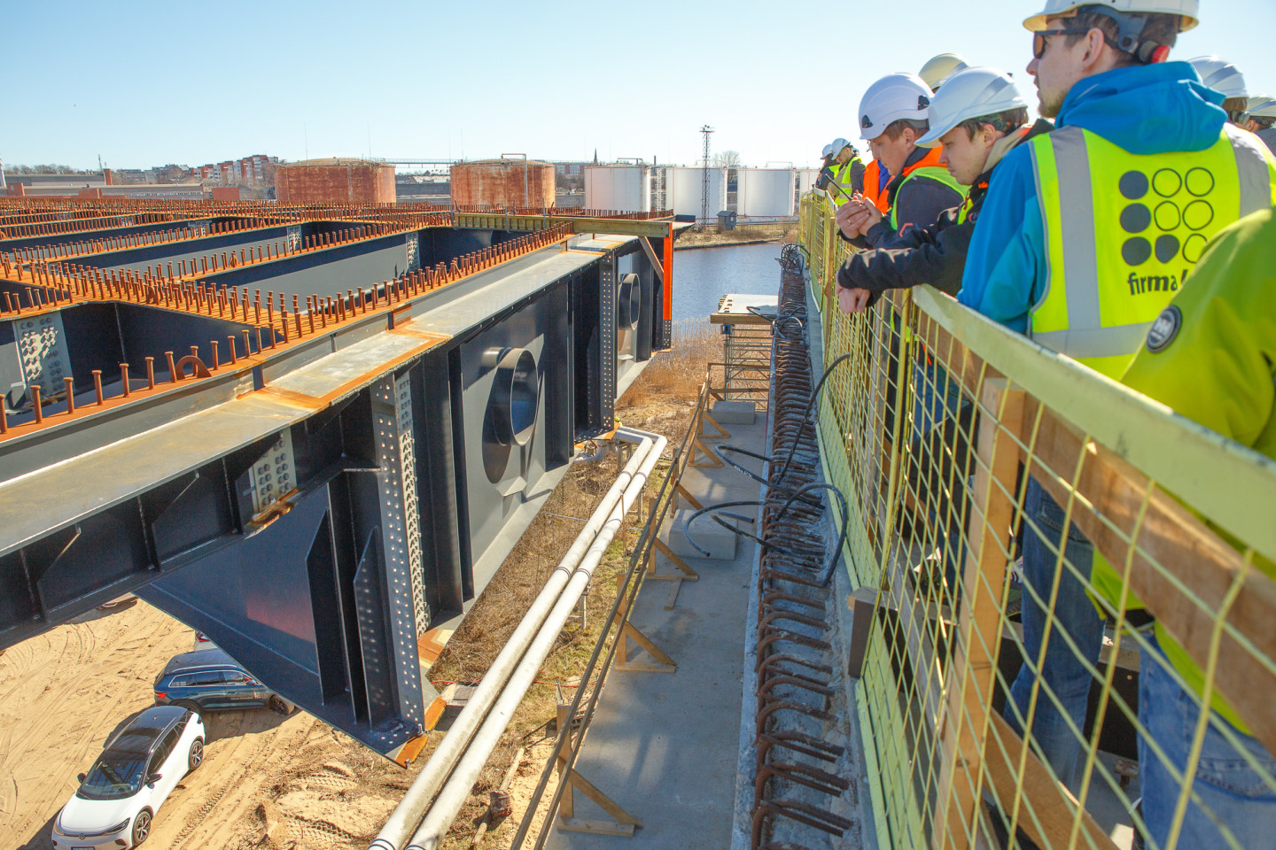 Notika satiksmes pārvada no Tvaika ielas uz Kundziņsalu noslēdzošā centrālā tērauda laiduma uzbīdīšana.