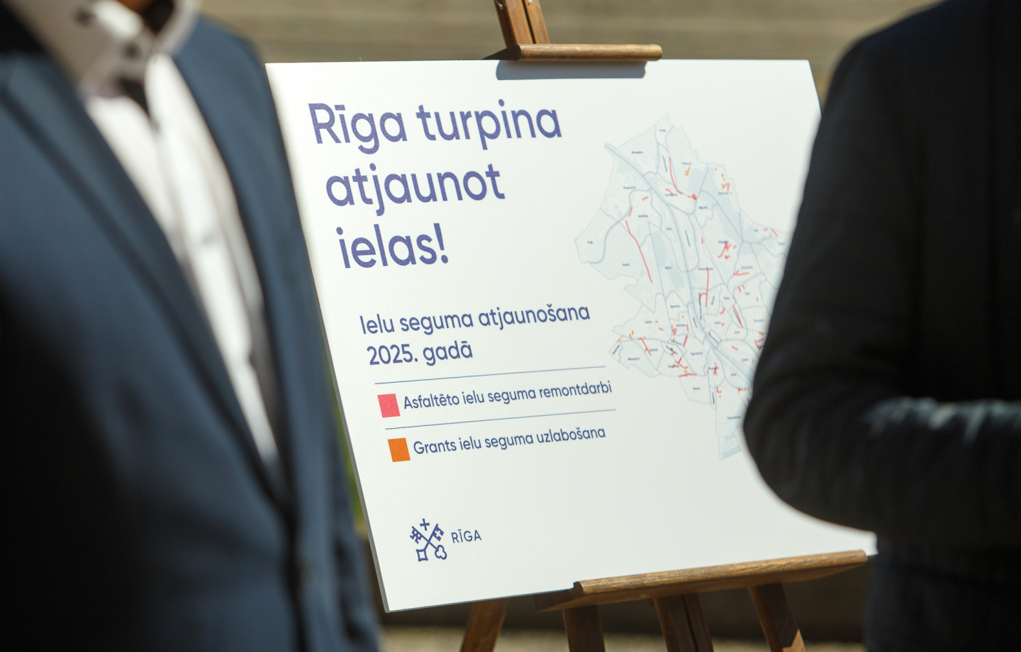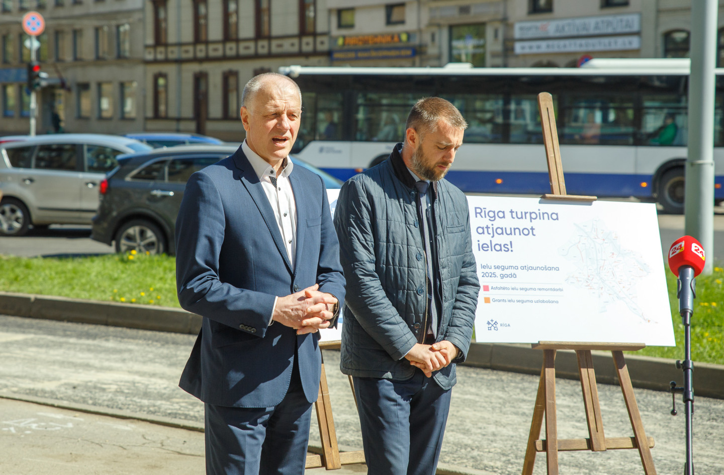 Rīgas domes pārstāvji preses konferencē informē par šā gada ielu atjaunošanas darbiem pilsētā, satiksmes organizāciju, kā arī par mobilitātes punktu izbūvi.