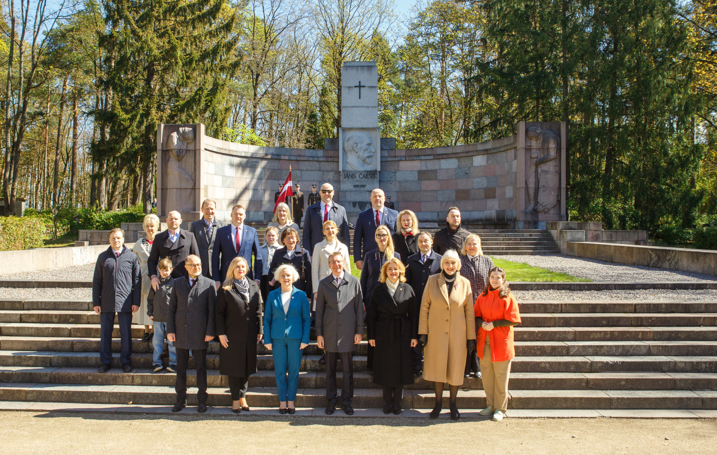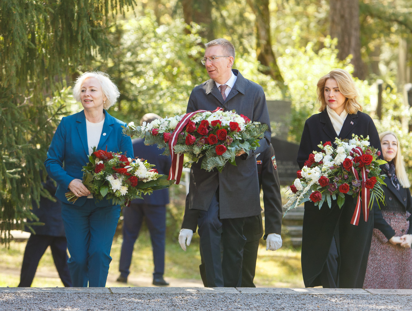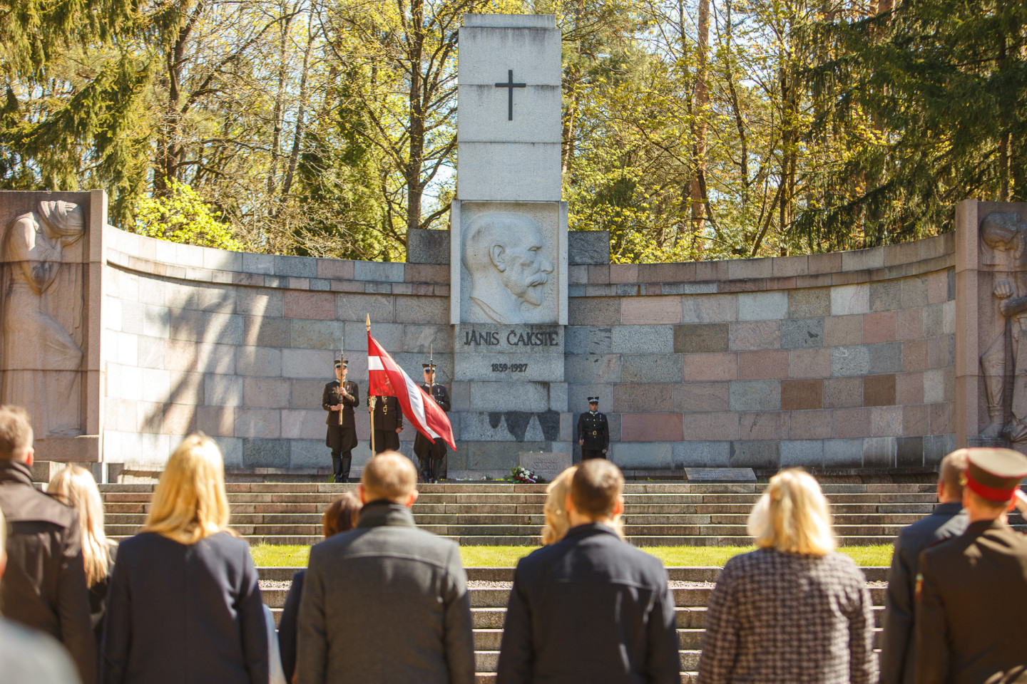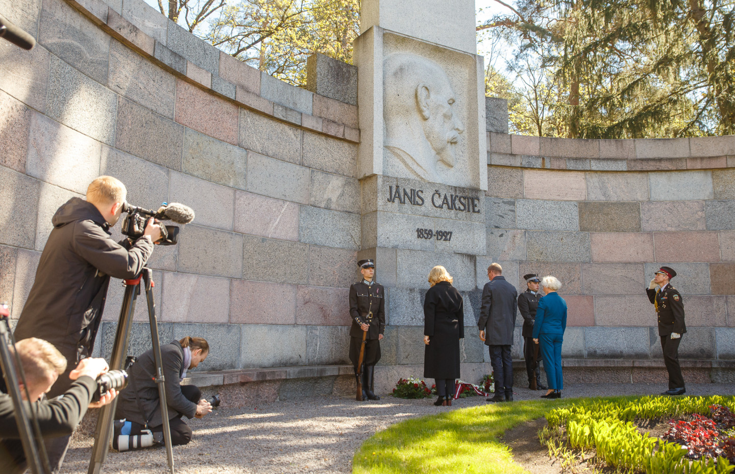 Atzīmējot Satversmes sapulces sasaukšanas 105.gadadienu, Valsts prezidents Edgars Rinkēvičs, Ministru prezidente Evika Siliņa, Saeimas Prezidija locekļi un deputāti, ministri, Satversmes tiesas pārstāvji un Čakstes ģimenes locekļi nolika ziedus pie rezidenta Jāņa Čakstes atdusas vietā Rīgas II Meža kapos.