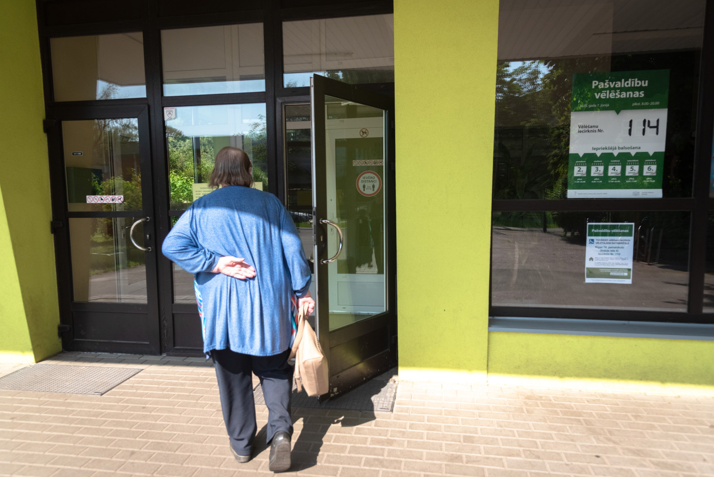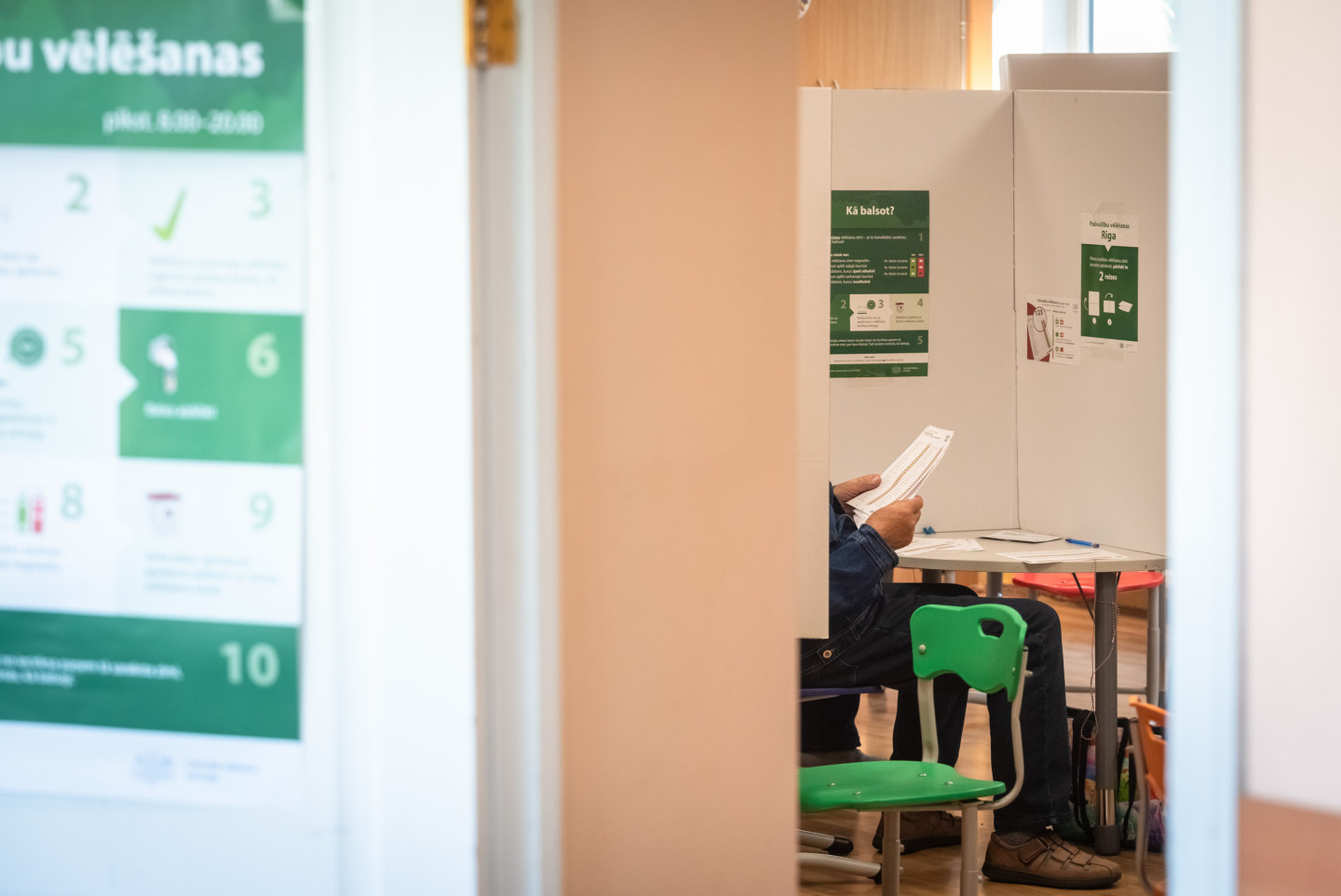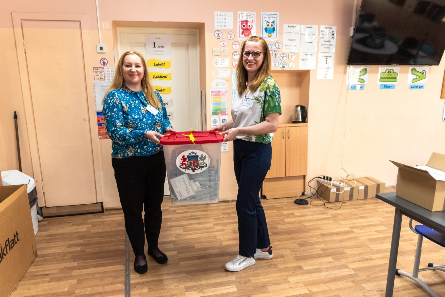Vēlētāji Rīgā aktīvi piedalās Pašvaldību vēlēšanās. 114. vēlēšanu iecirknis.