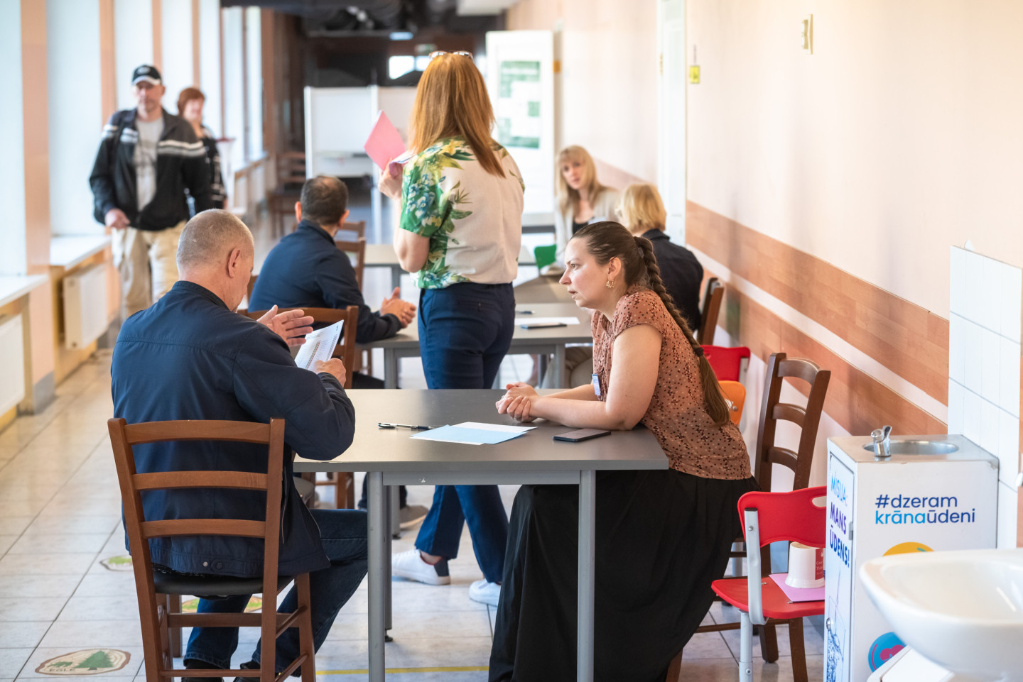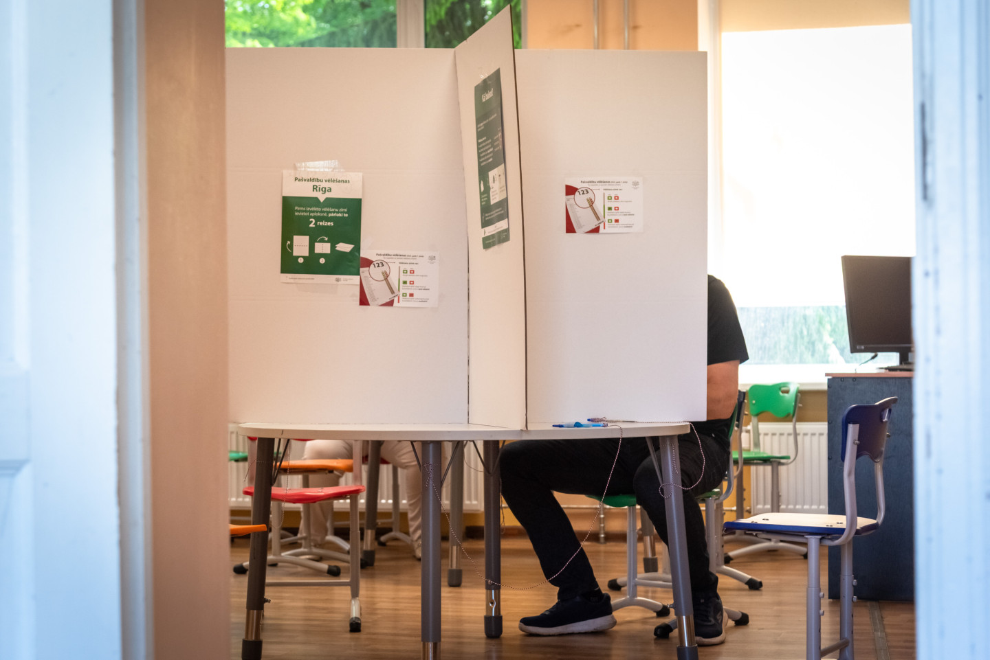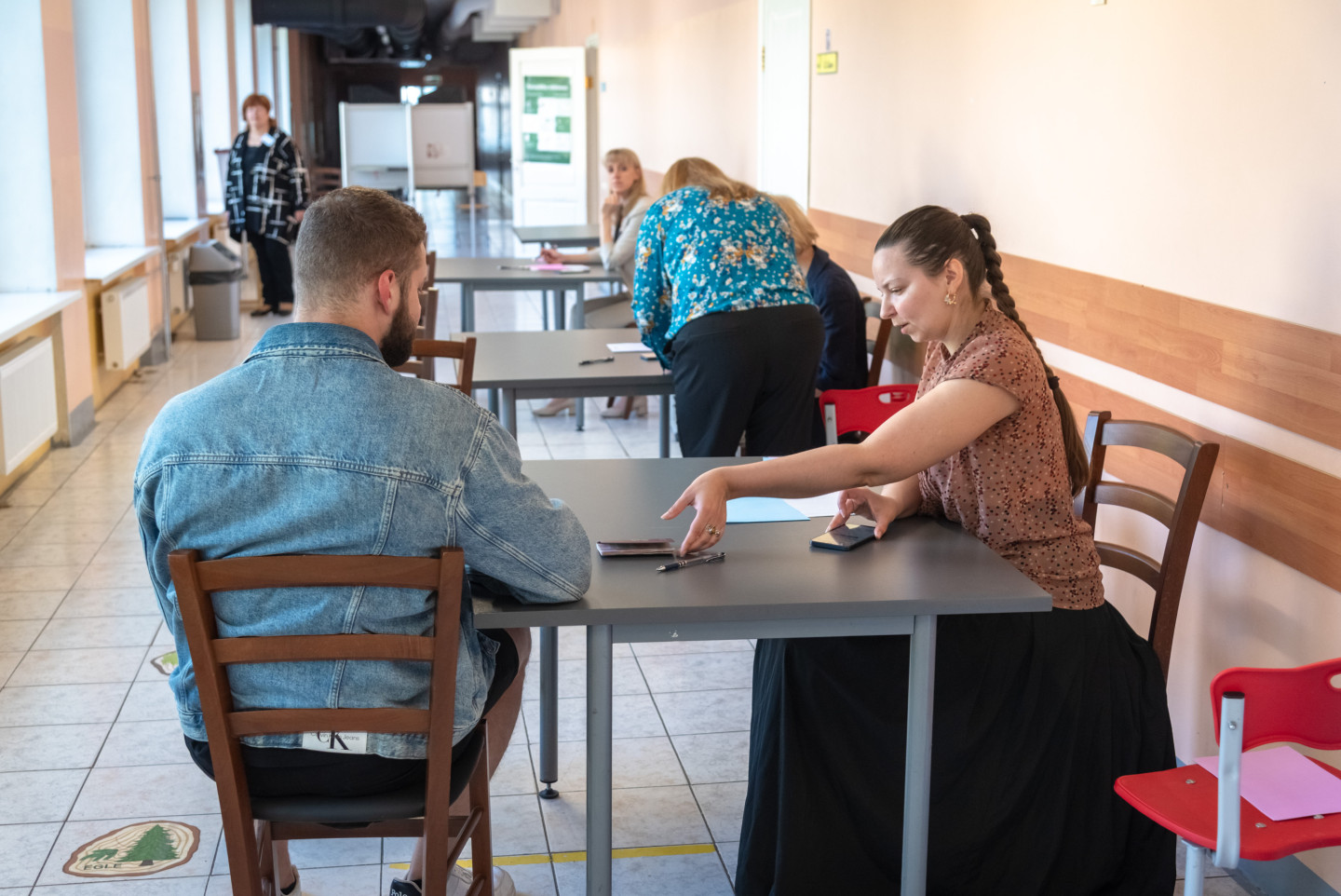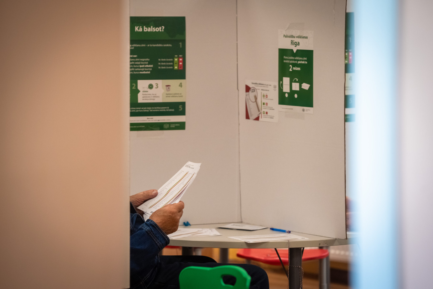 Vēlētāji Rīgā aktīvi piedalās Pašvaldību vēlēšanās. 114. vēlēšanu iecirknis.