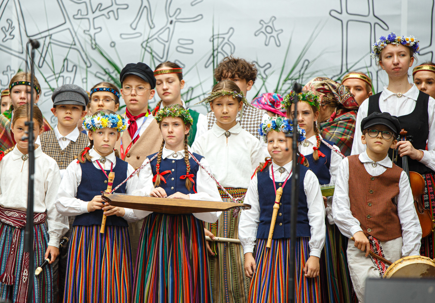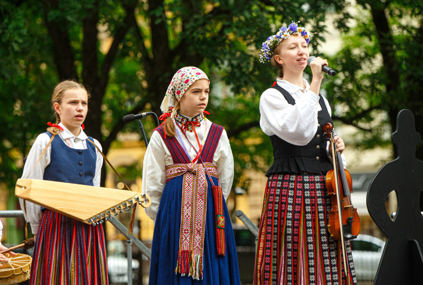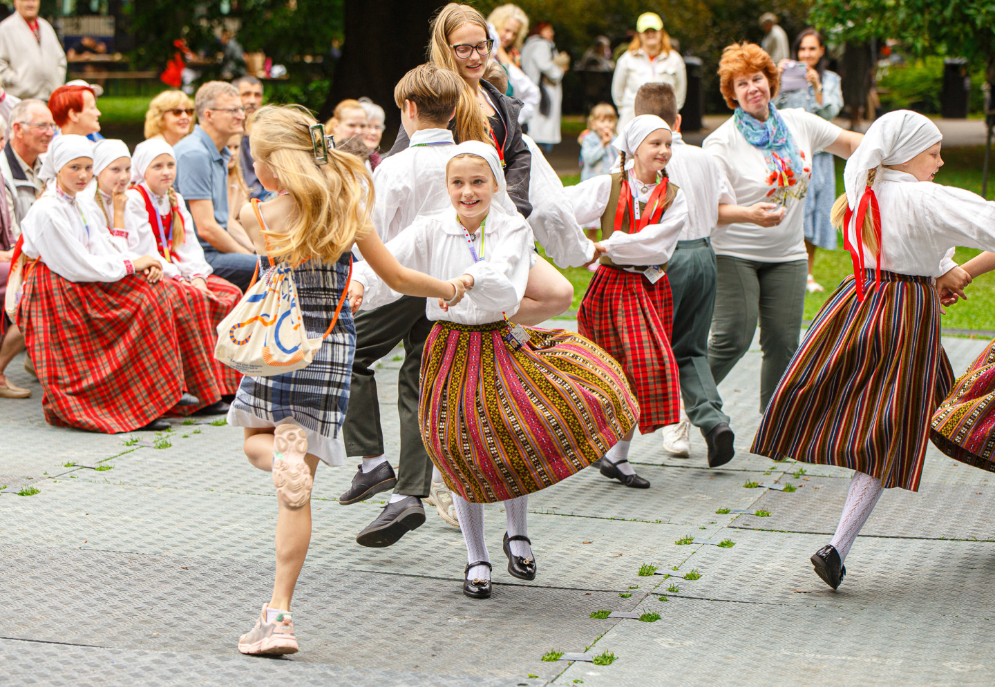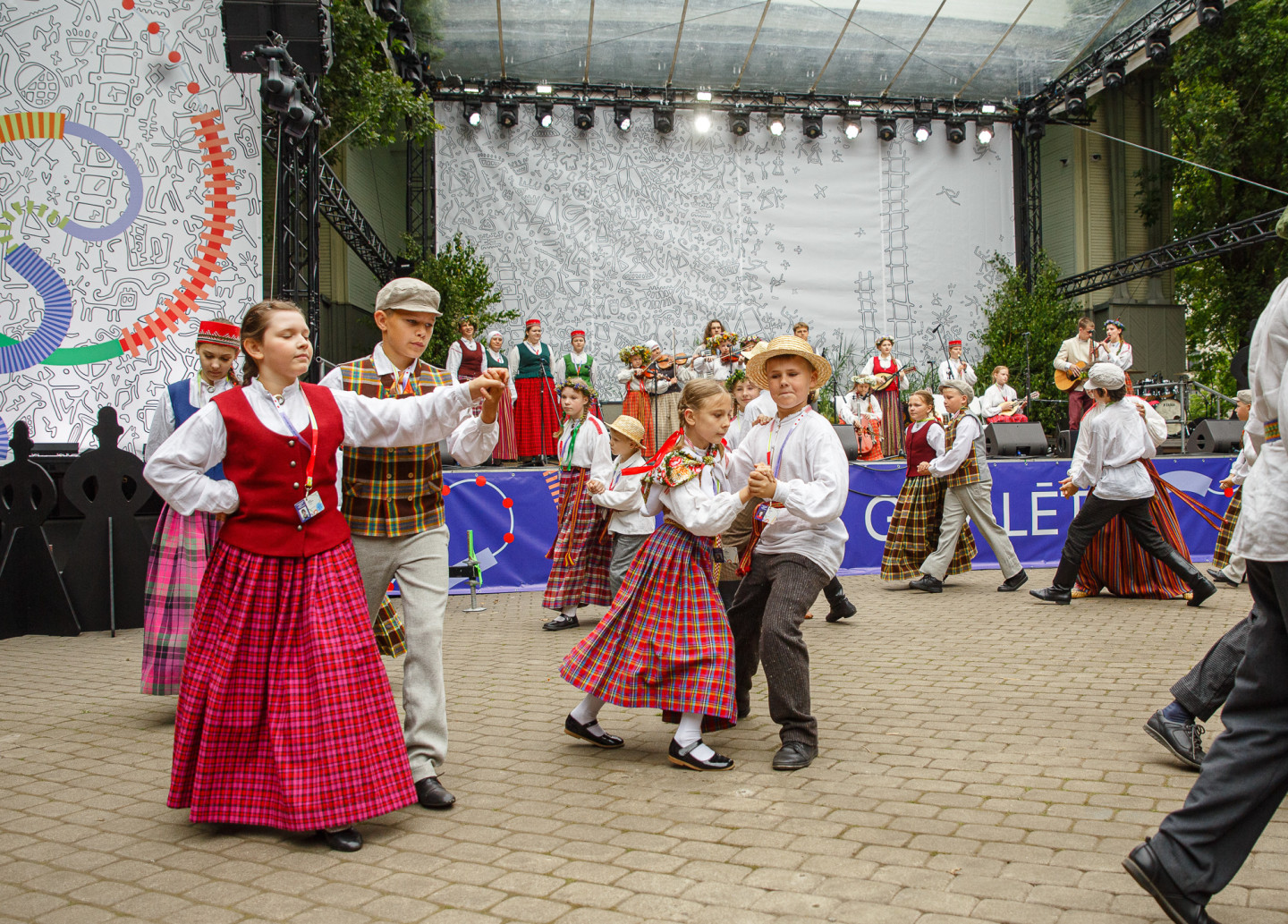 Vērmanes dārzā notiek XIII Latvijas Skolu jaunatnes dziesmu un deju svētku folkloras programmas “Dindaru, dandaru” koncerti.