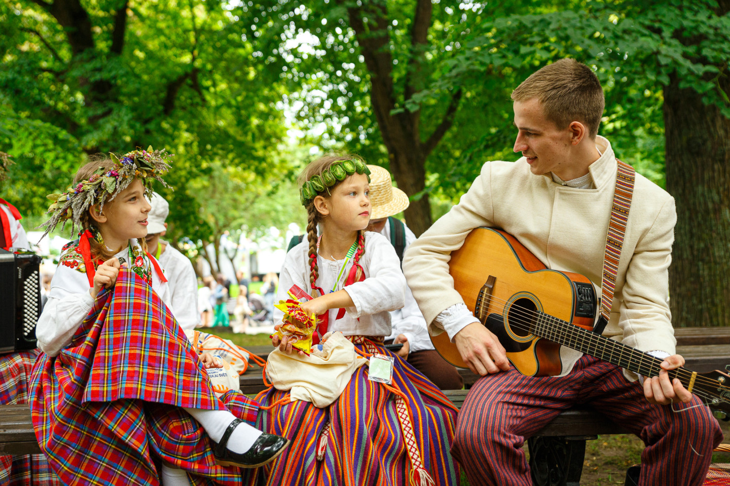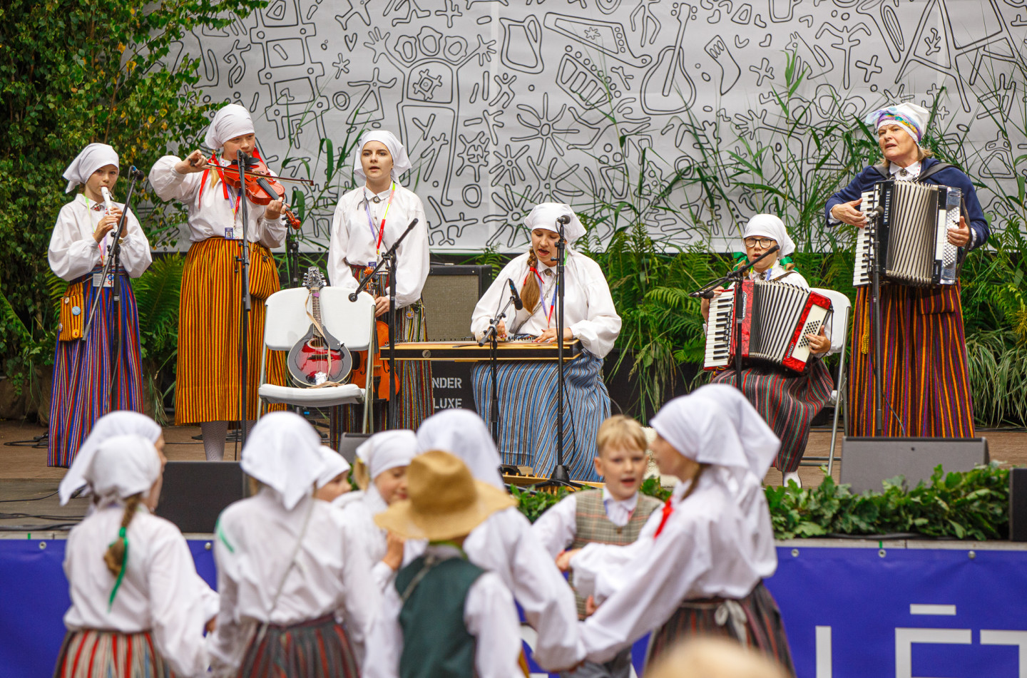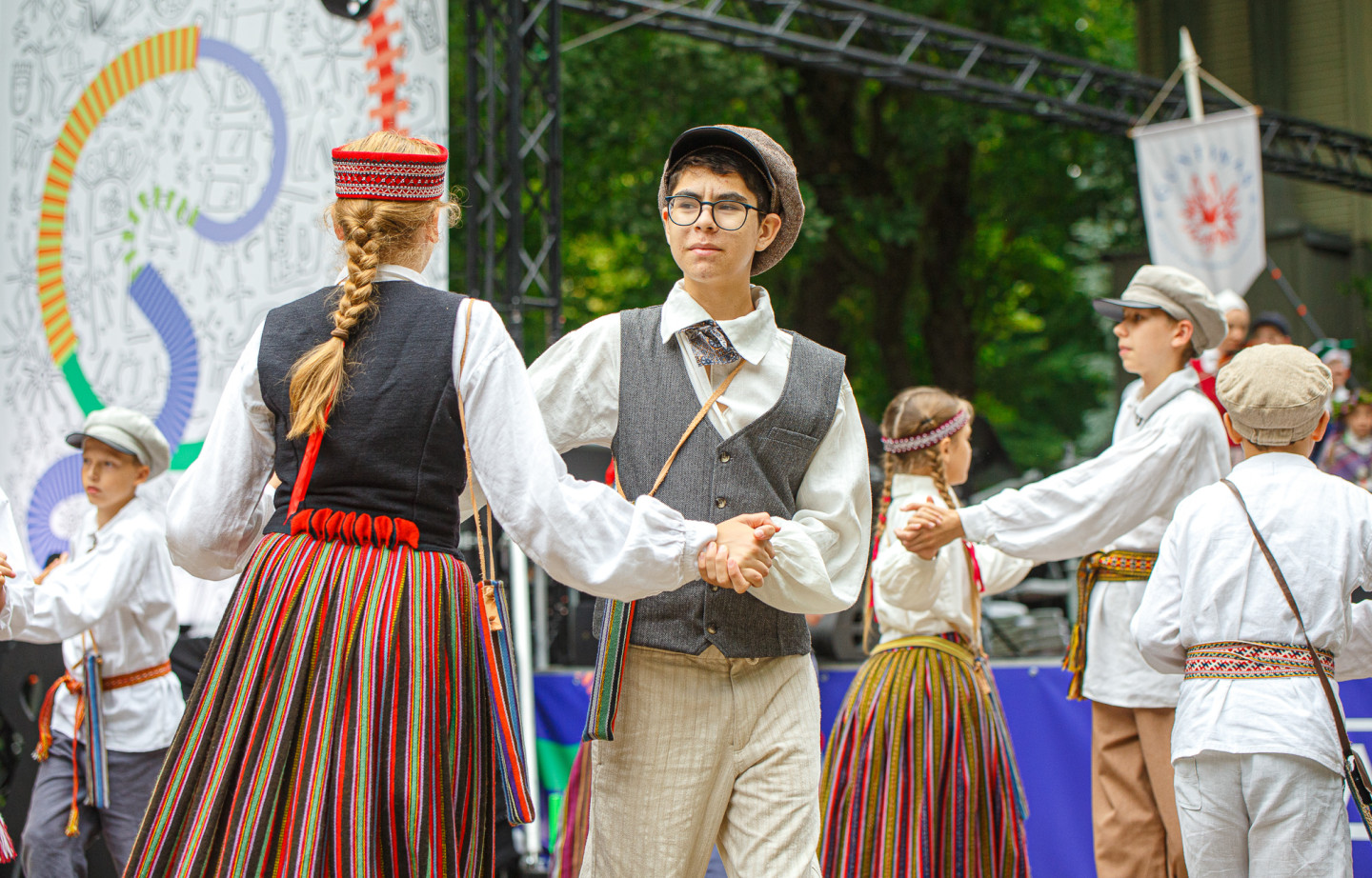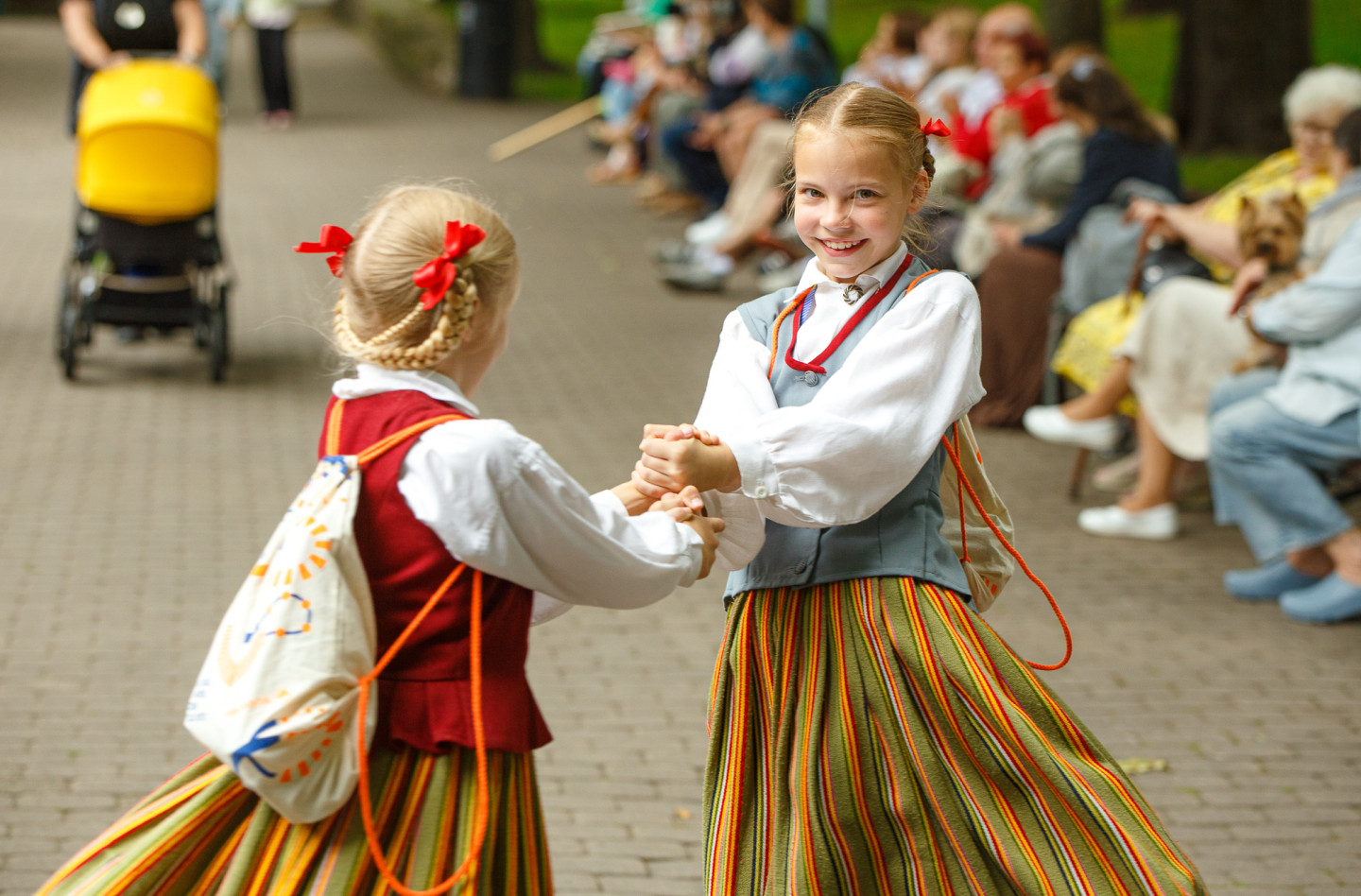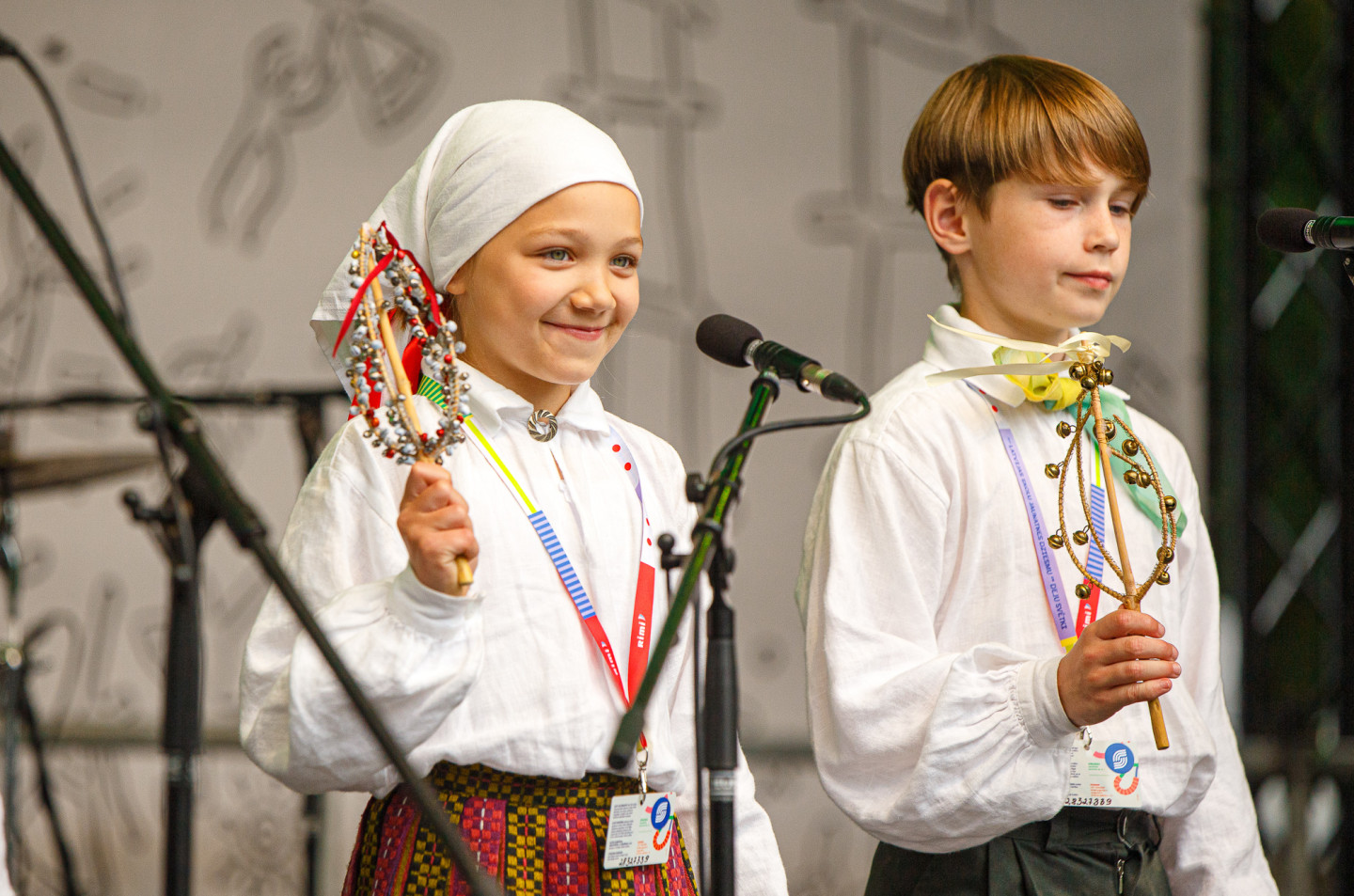 Vērmanes dārzā notiek XIII Latvijas Skolu jaunatnes dziesmu un deju svētku folkloras programmas “Dindaru, dandaru” koncerti.