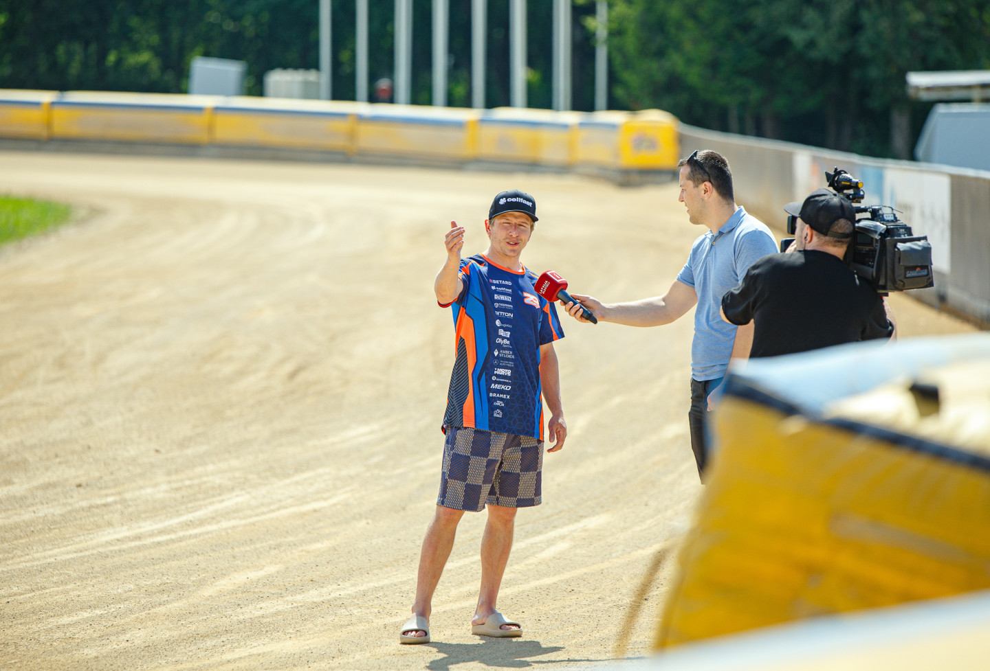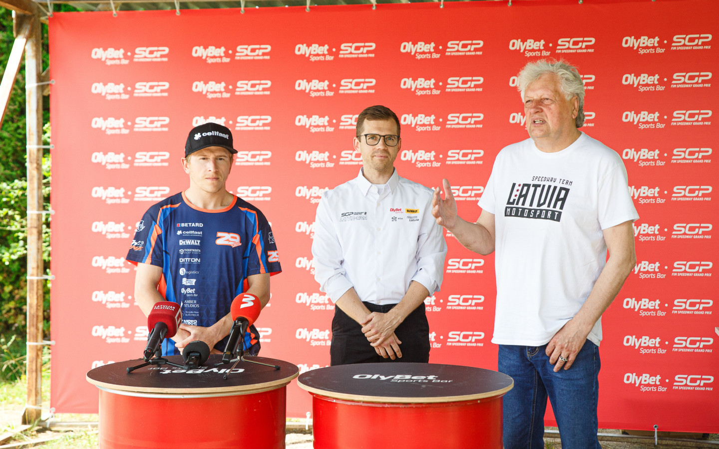 Biķernieku spīdveja stadionā notiek čempionāta ''2025 OlyBet FIM Speedway Grand Prix of Latvia'' preses pasākums.
