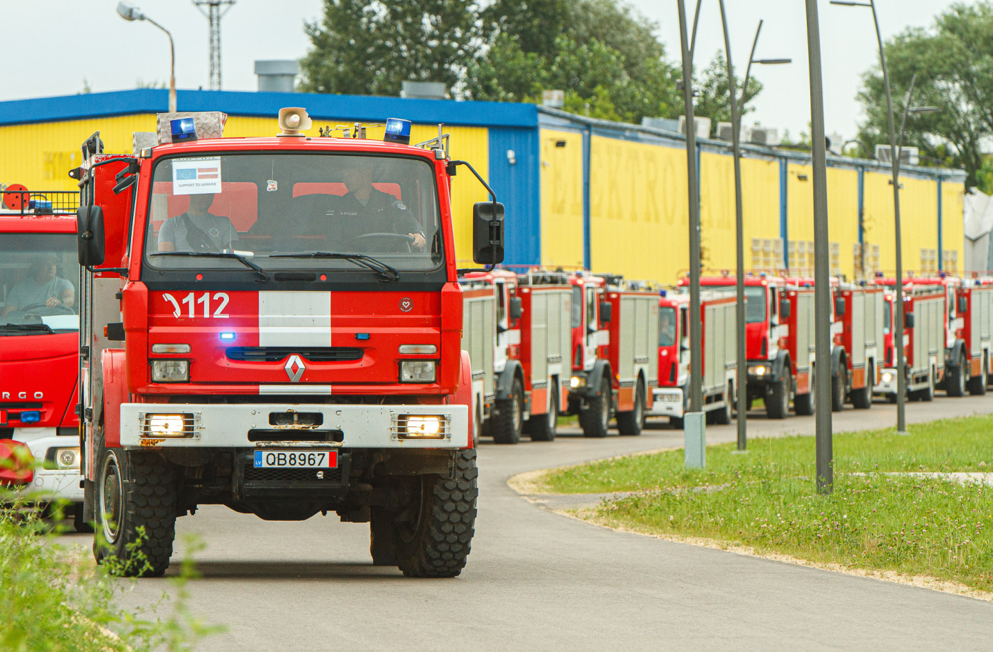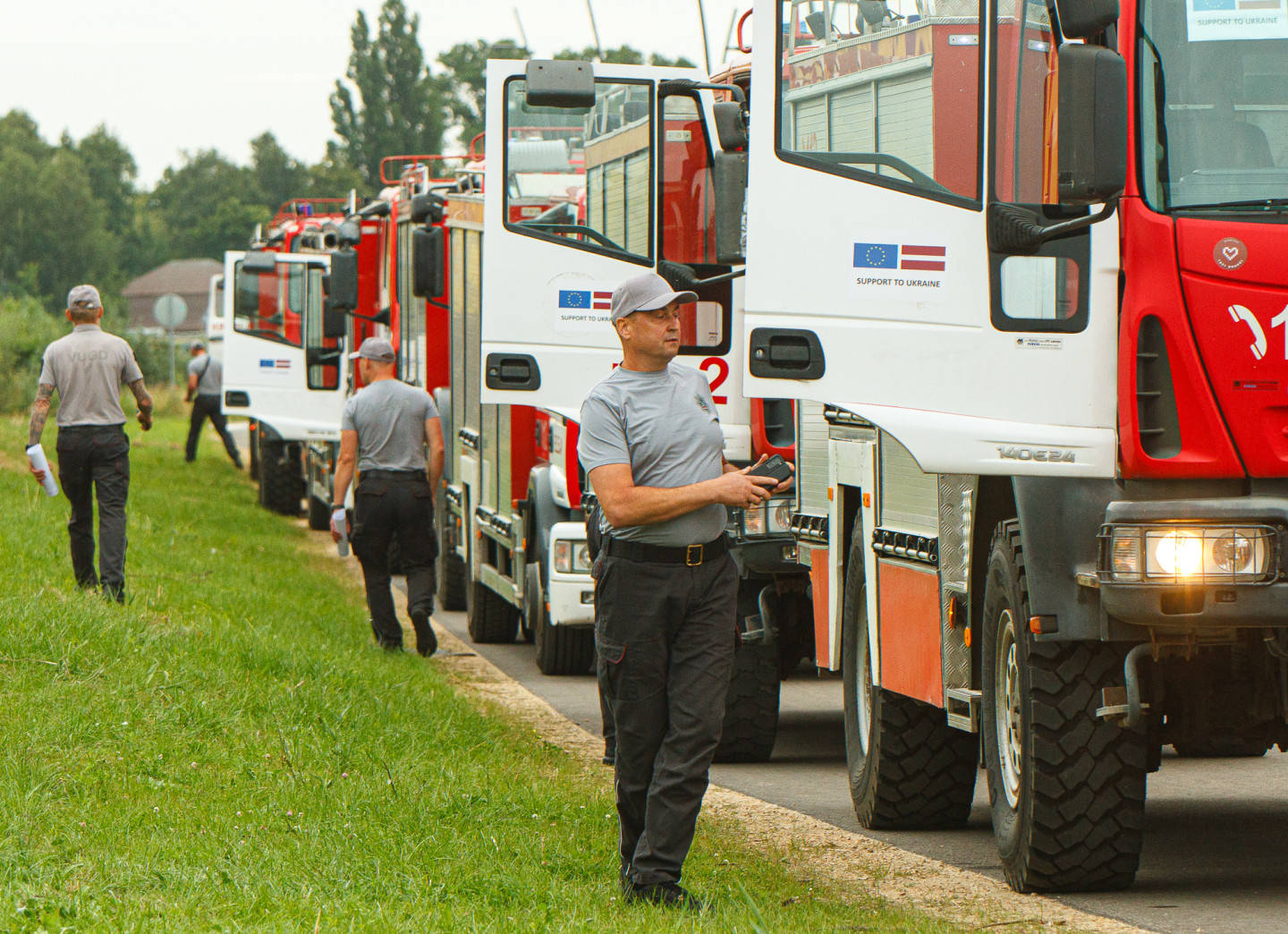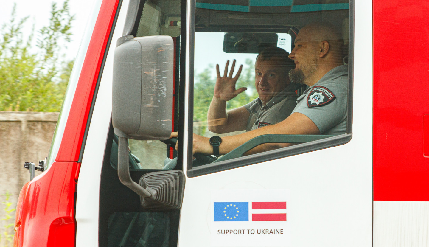 No Rīgas uz Ukrainu dodas 16 Valsts ugunsdzēsības un glābšanas dienesta autocisternas ar glābšanas aprīkojumu.