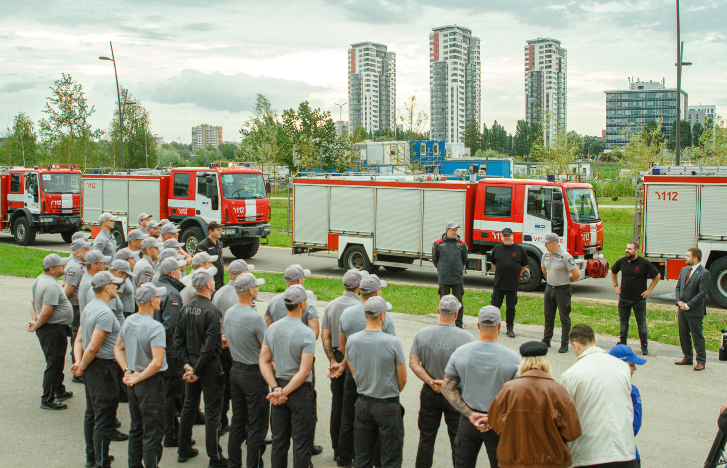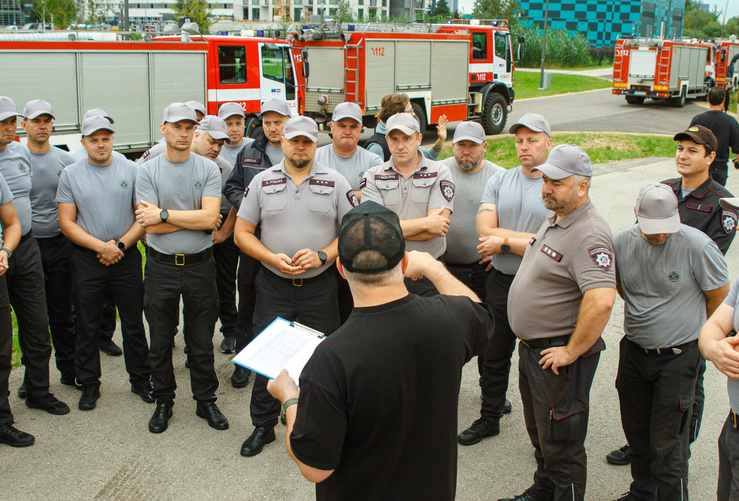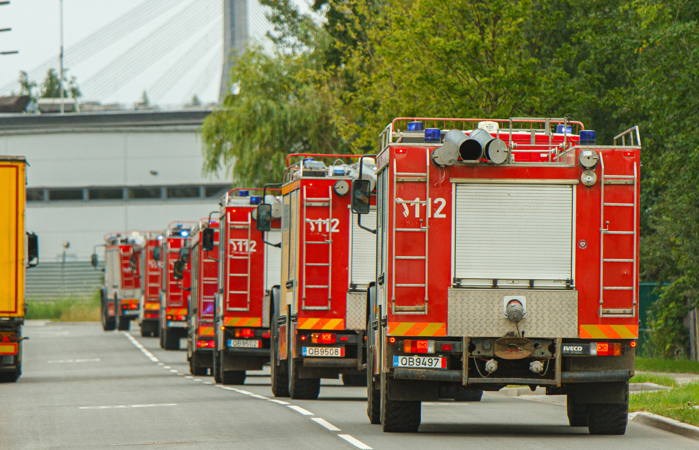 No Rīgas uz Ukrainu dodas 16 Valsts ugunsdzēsības un glābšanas dienesta autocisternas ar glābšanas aprīkojumu.