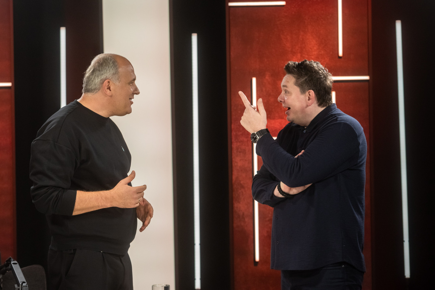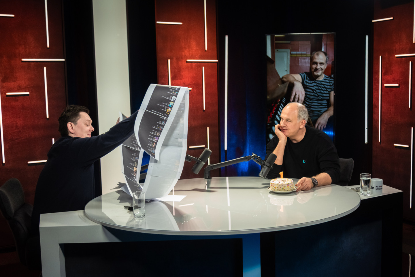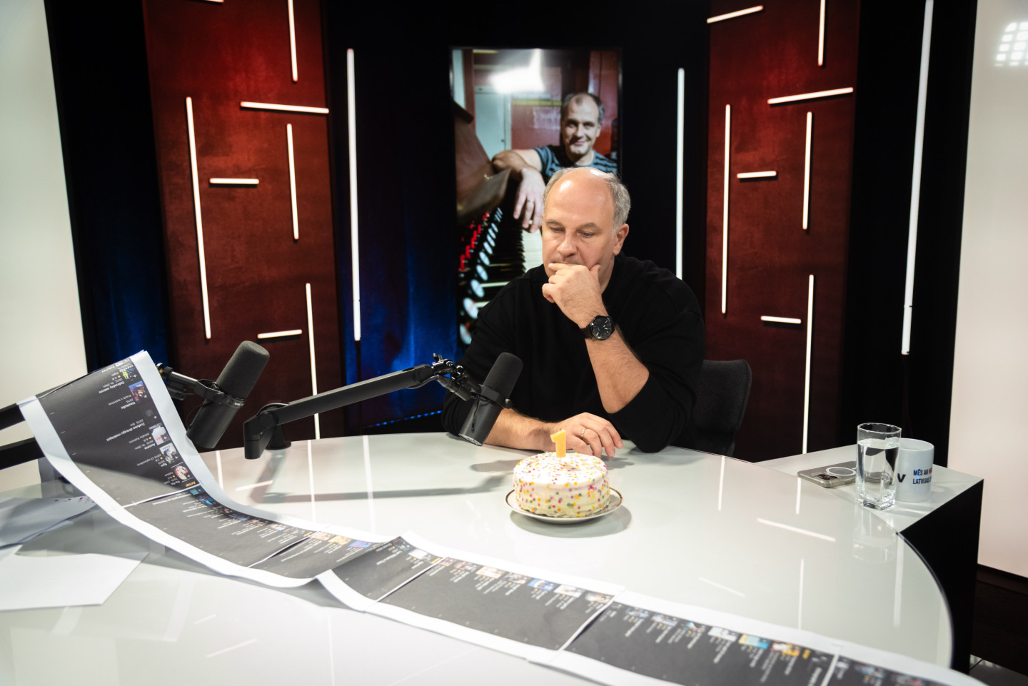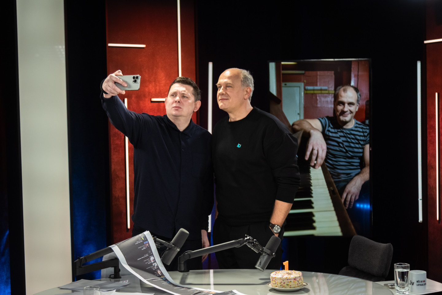 Artuss Kaimiņš sveic Andri Keišu dzimšanas dienā NRA studijā