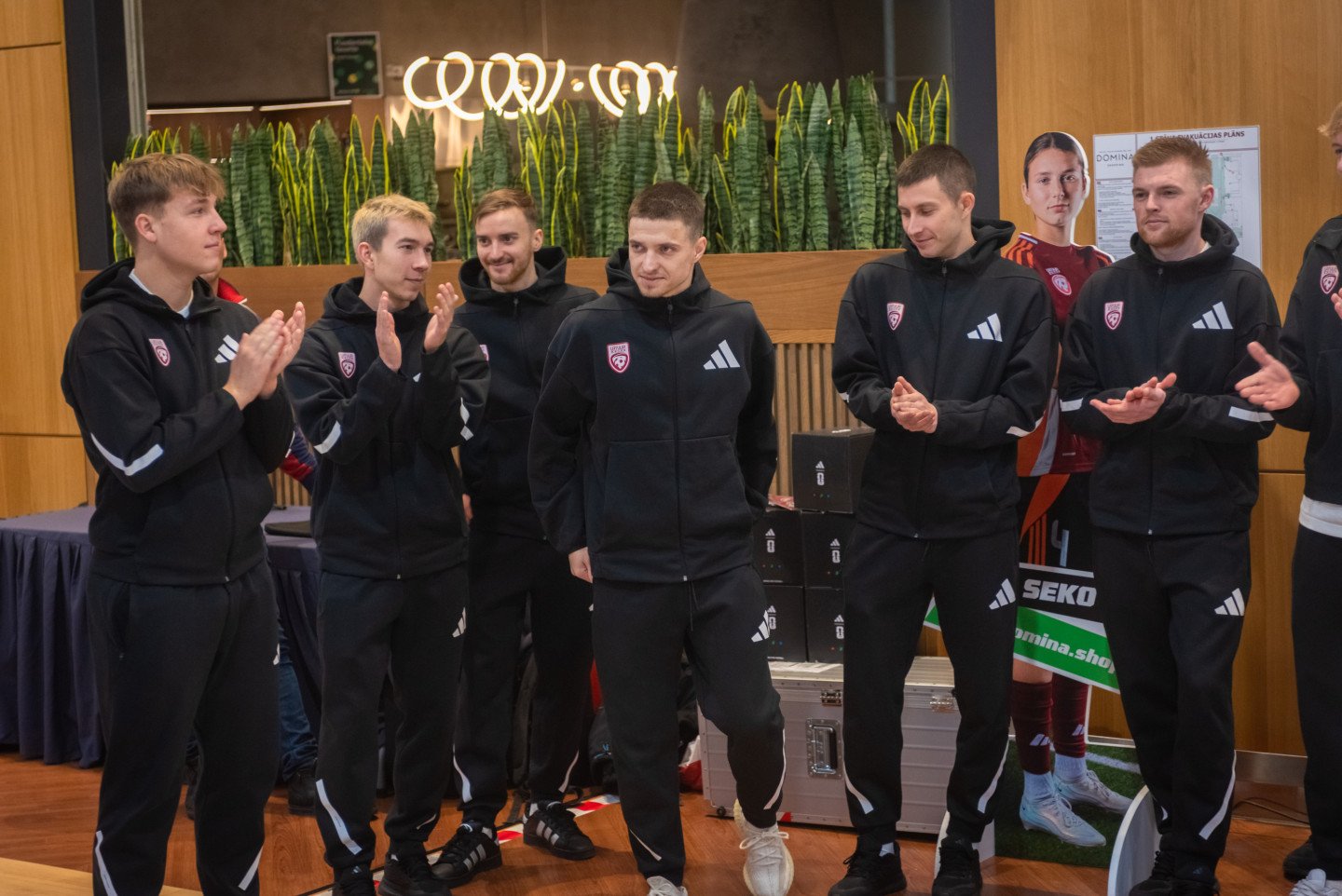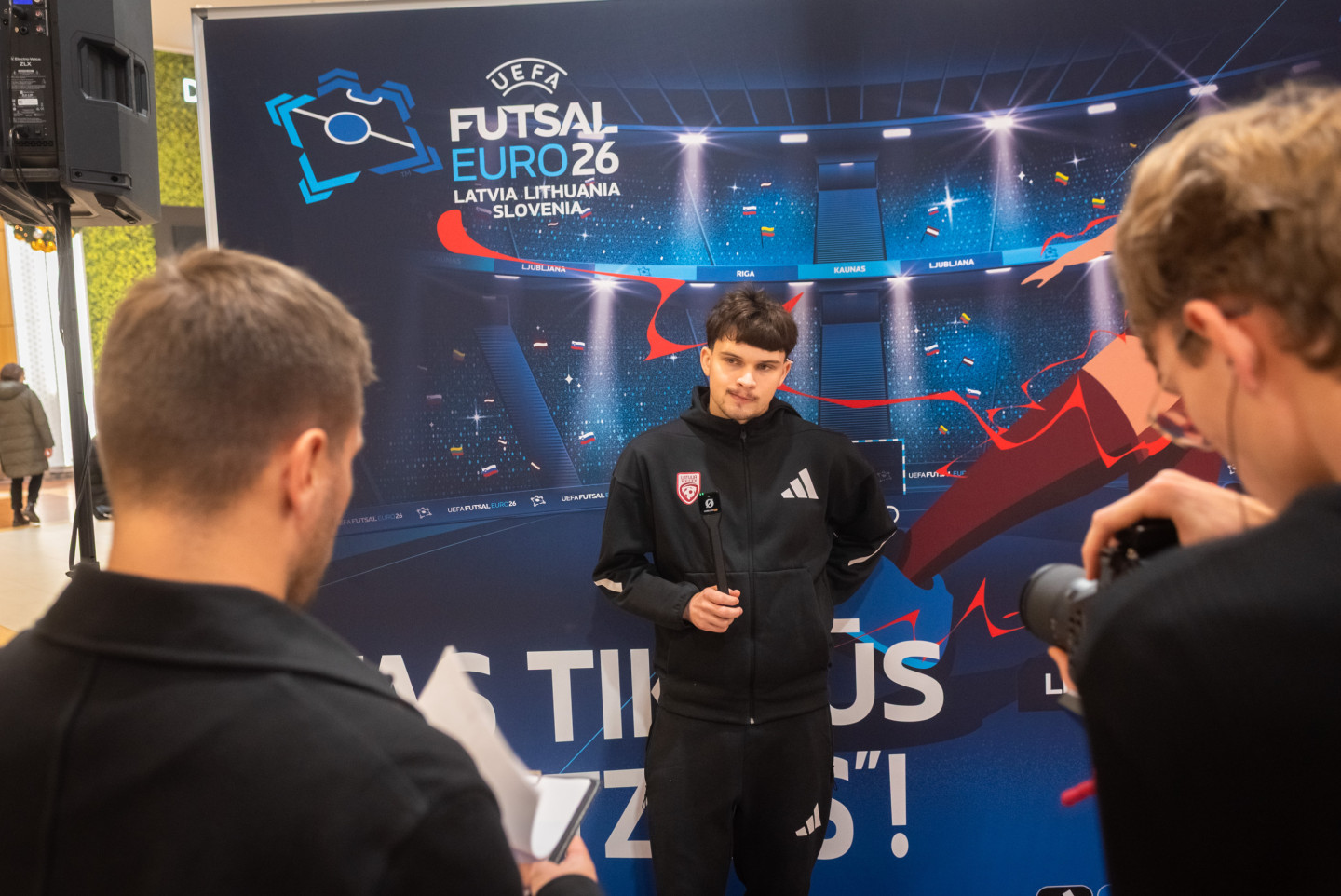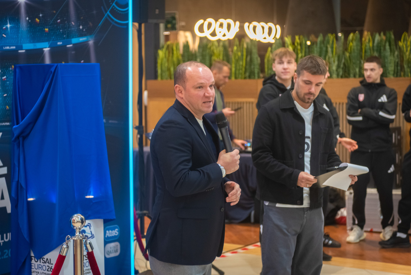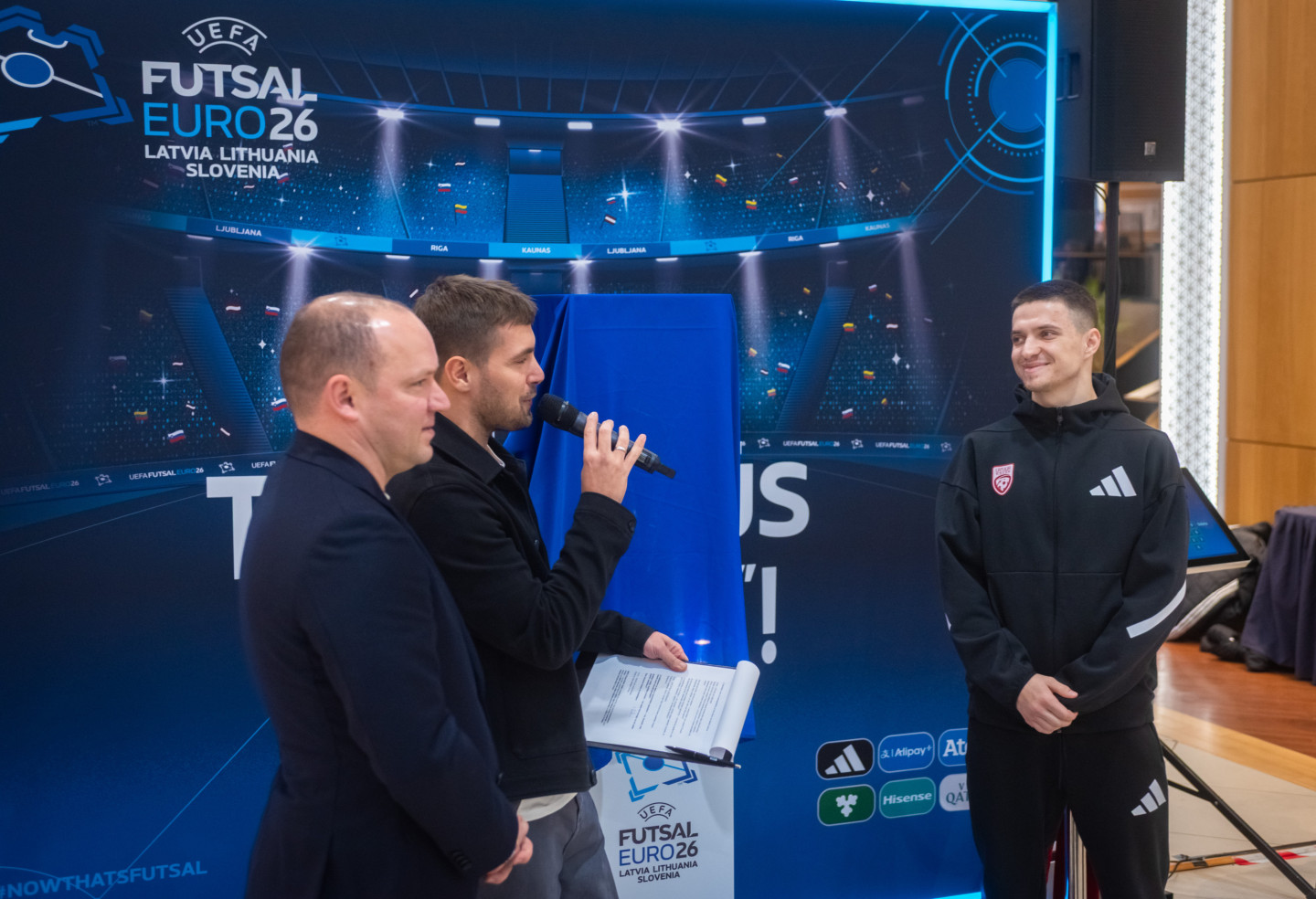 Tirdzniecības centrā "Domina Shopping" apmeklētāji var apskatīt Eiropas čempionāta telpu futbolā galveno trofeju. Pasākumā piedalās Latvijas nacionālās telpu futbola izlases spēlētāji