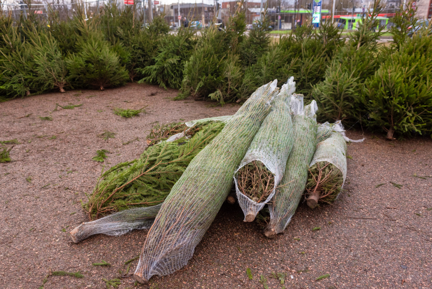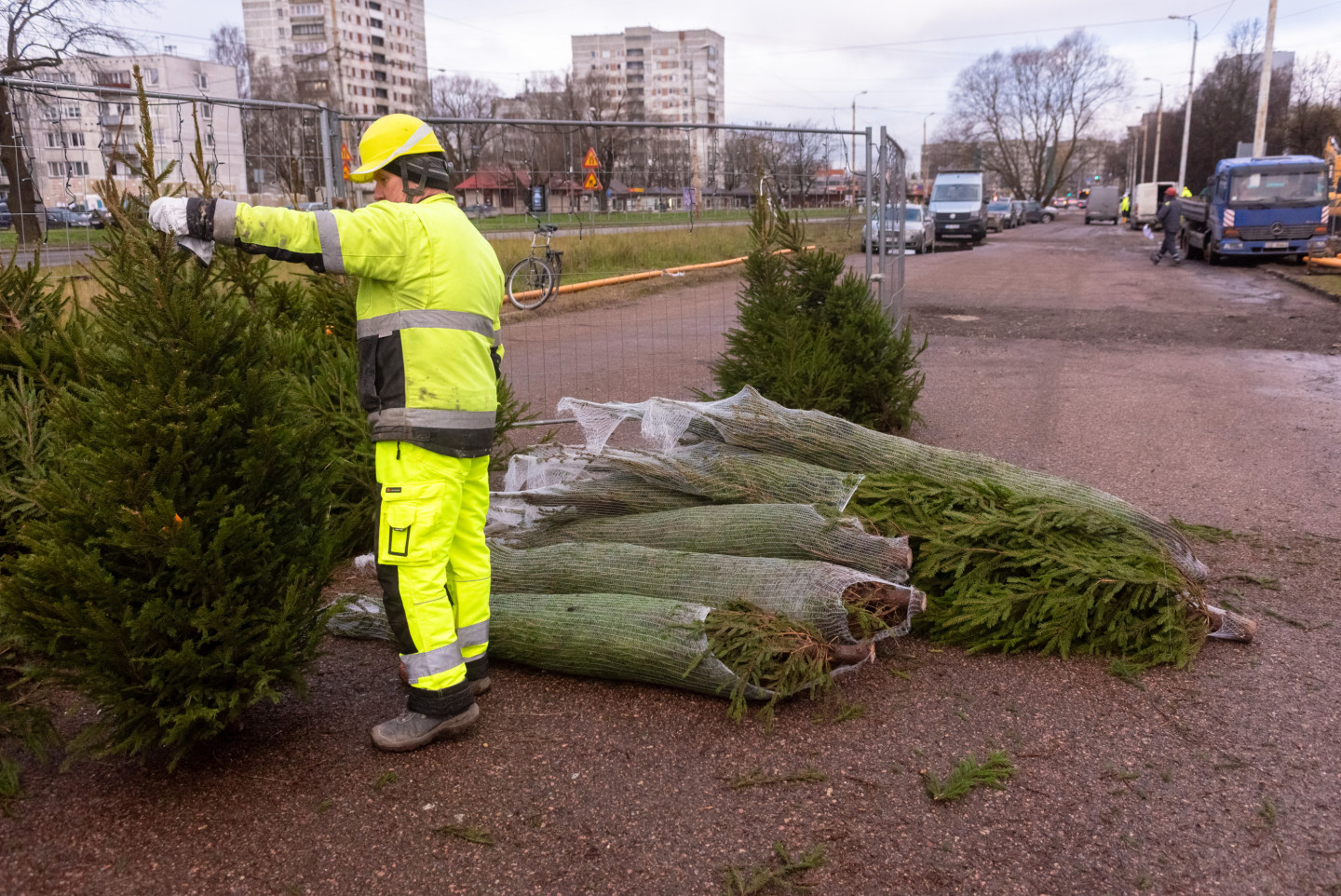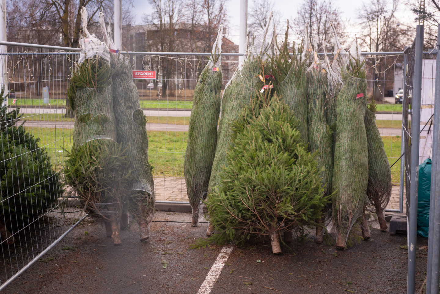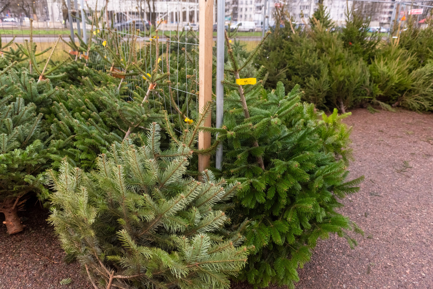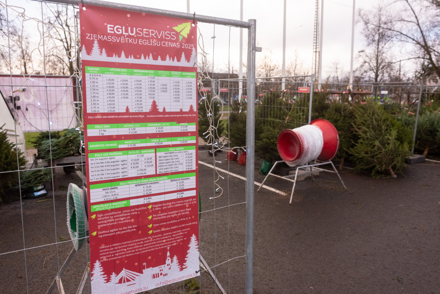 Ziemassvētku eglīšu tirdzniecības vietas Purvciemā un Rīgas Centrāltirgū. Tajās cena eglītēm no 10 līdz 65 eiro.