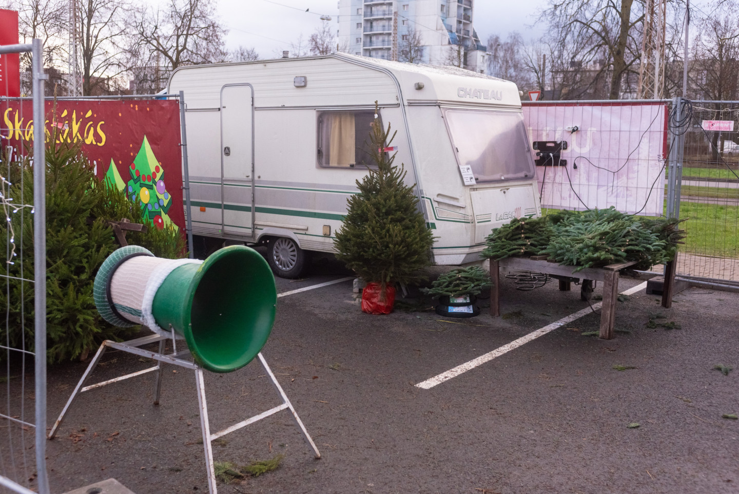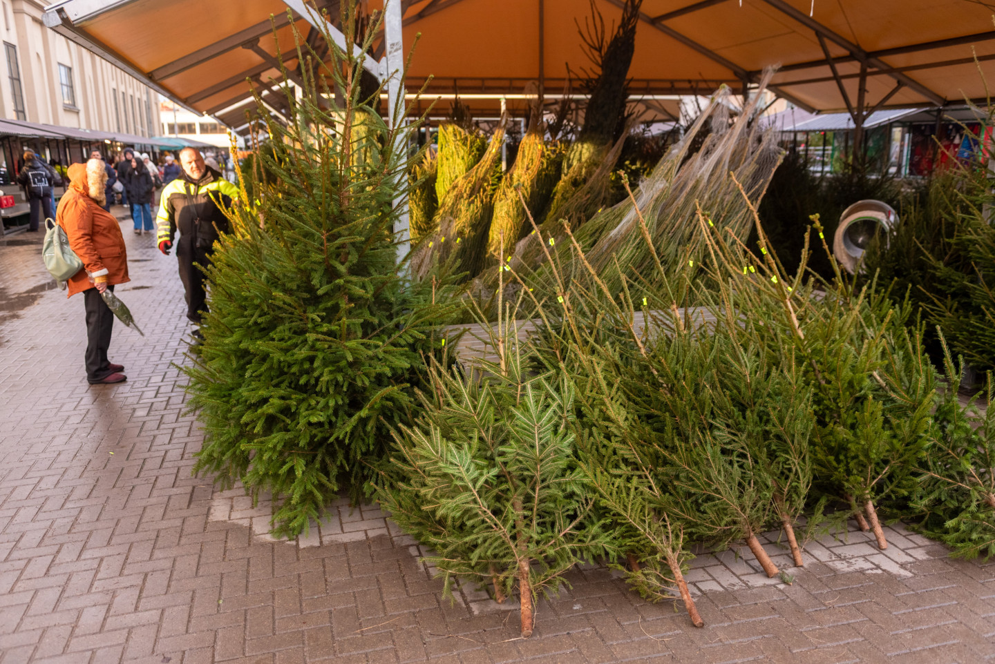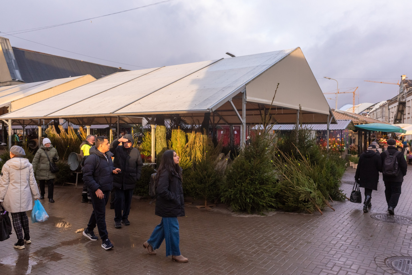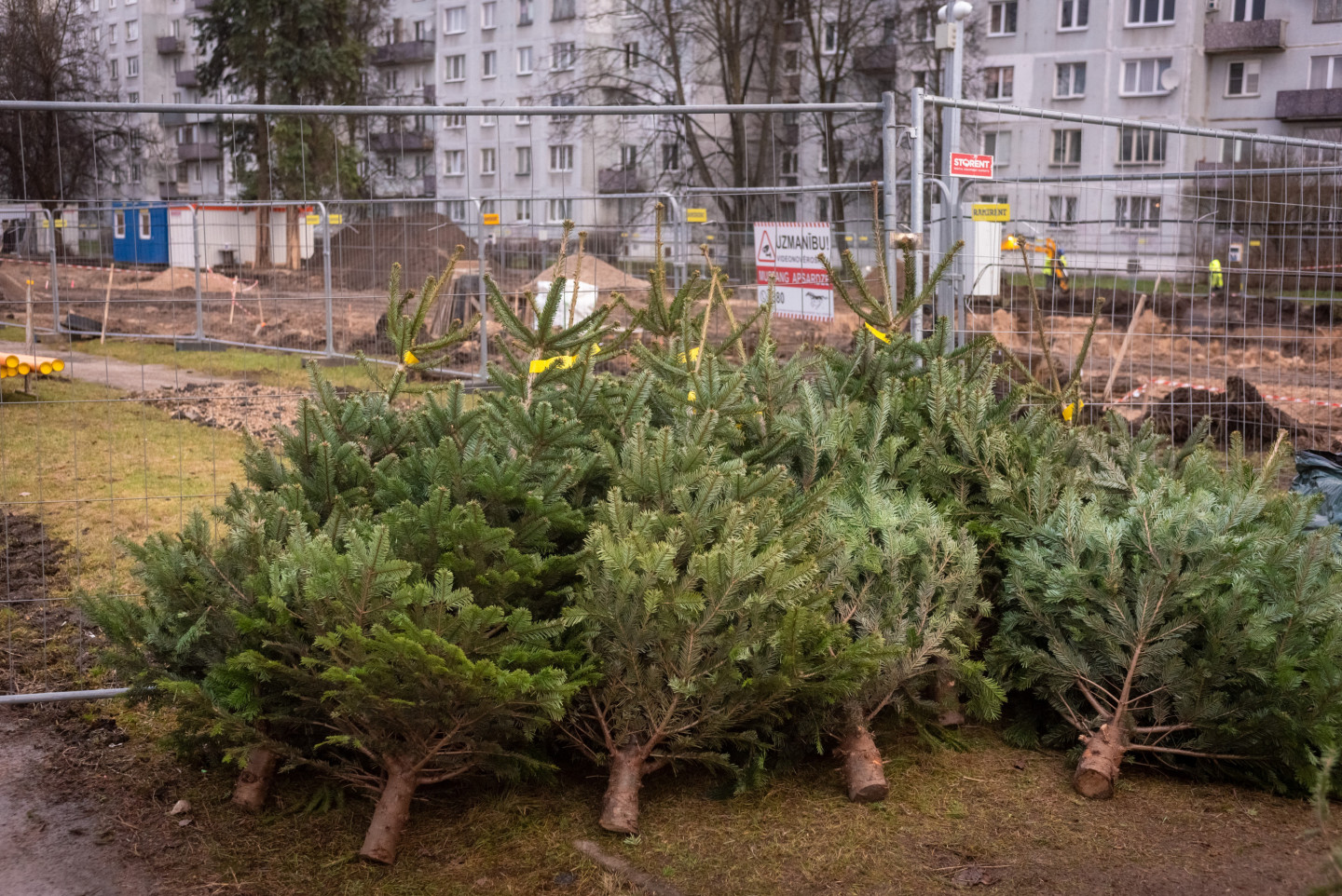 Ziemassvētku eglīšu tirdzniecības vietas Purvciemā un Rīgas Centrāltirgū. Tajās cena eglītēm no 10 līdz 65 eiro.