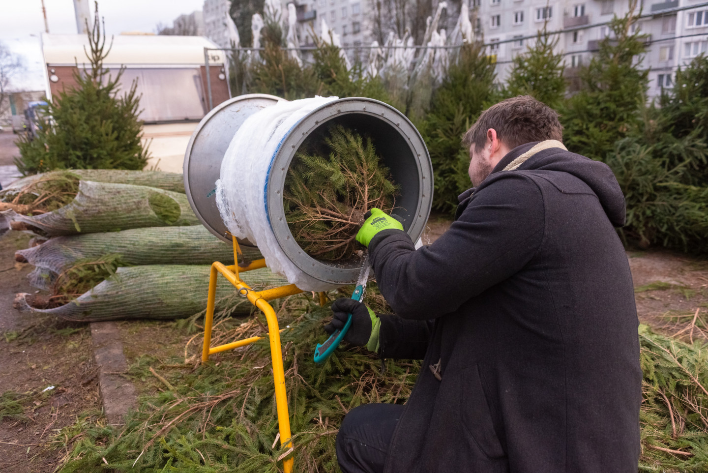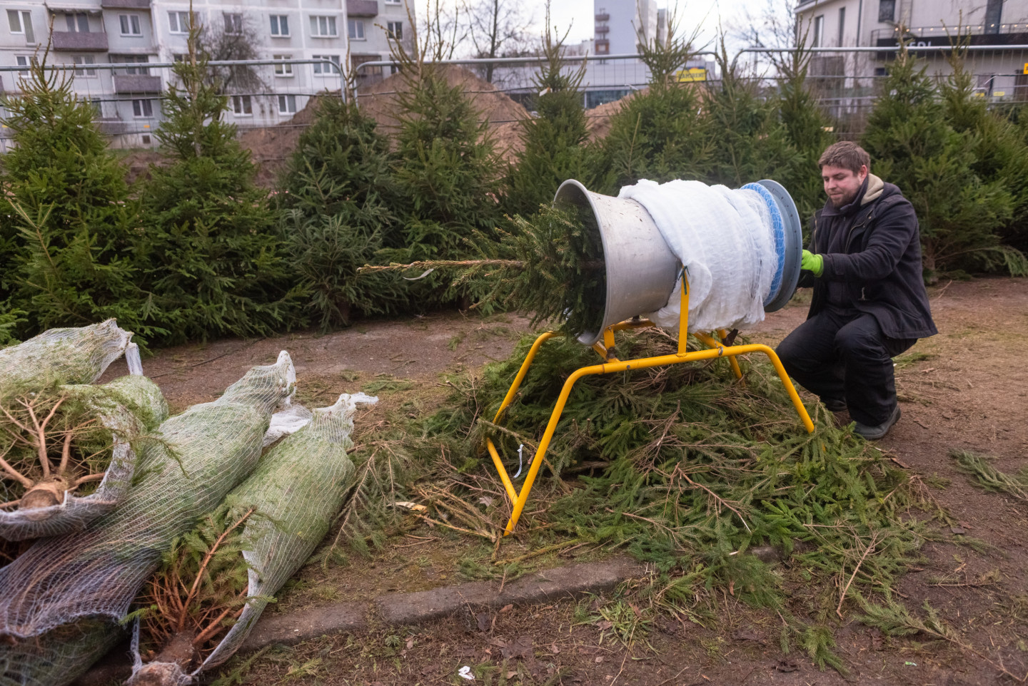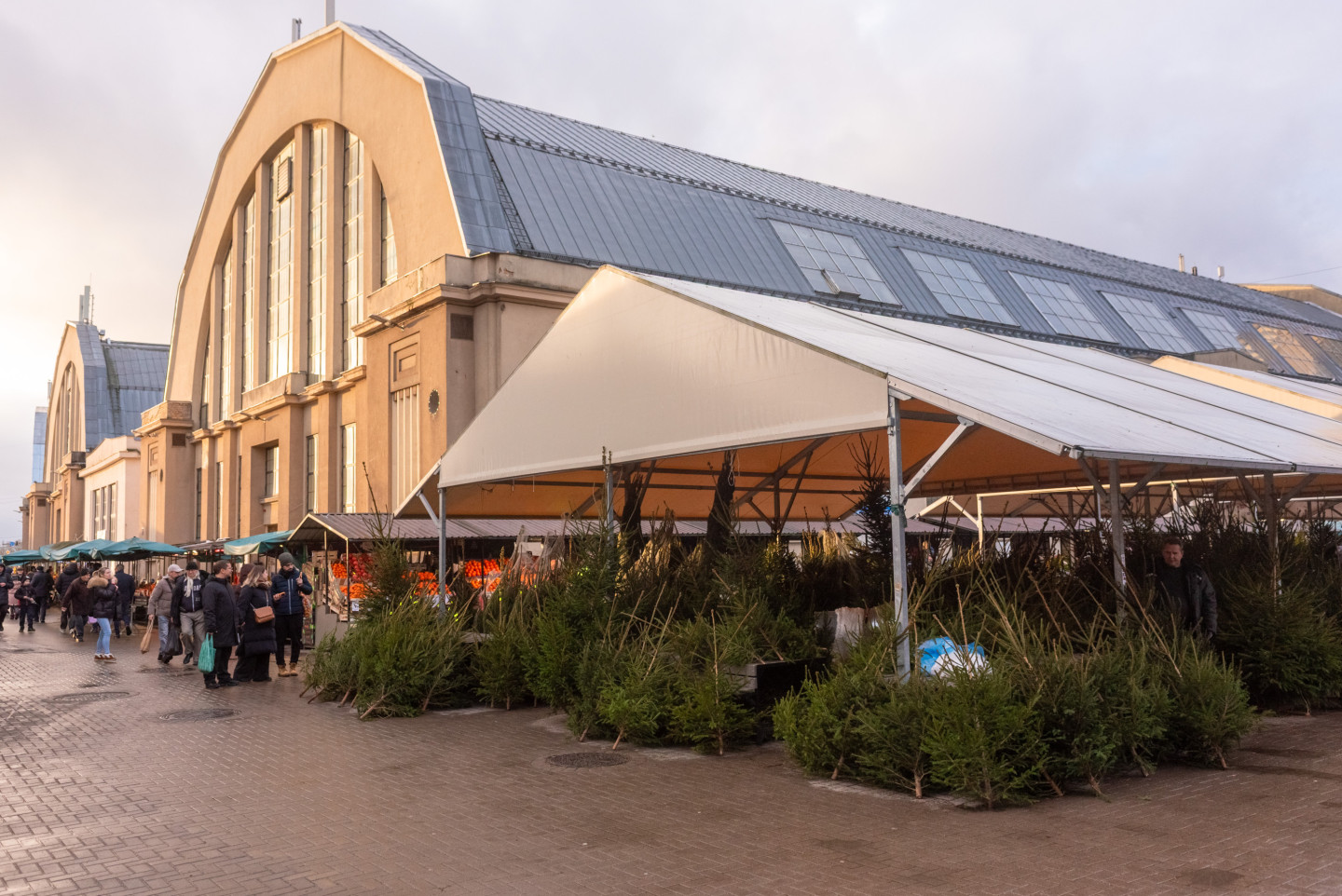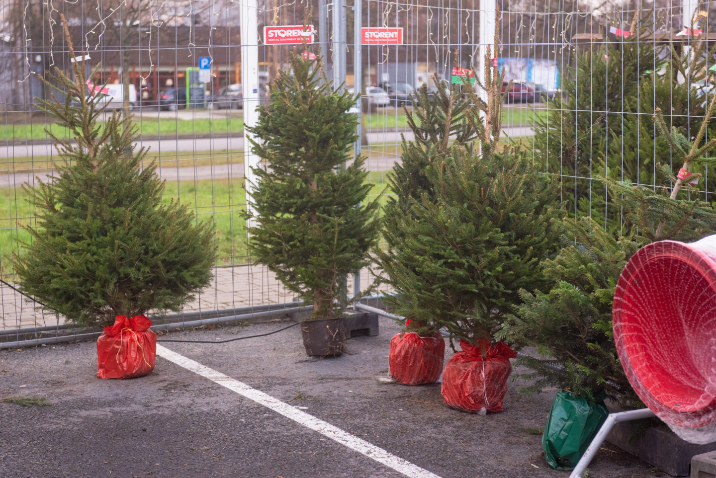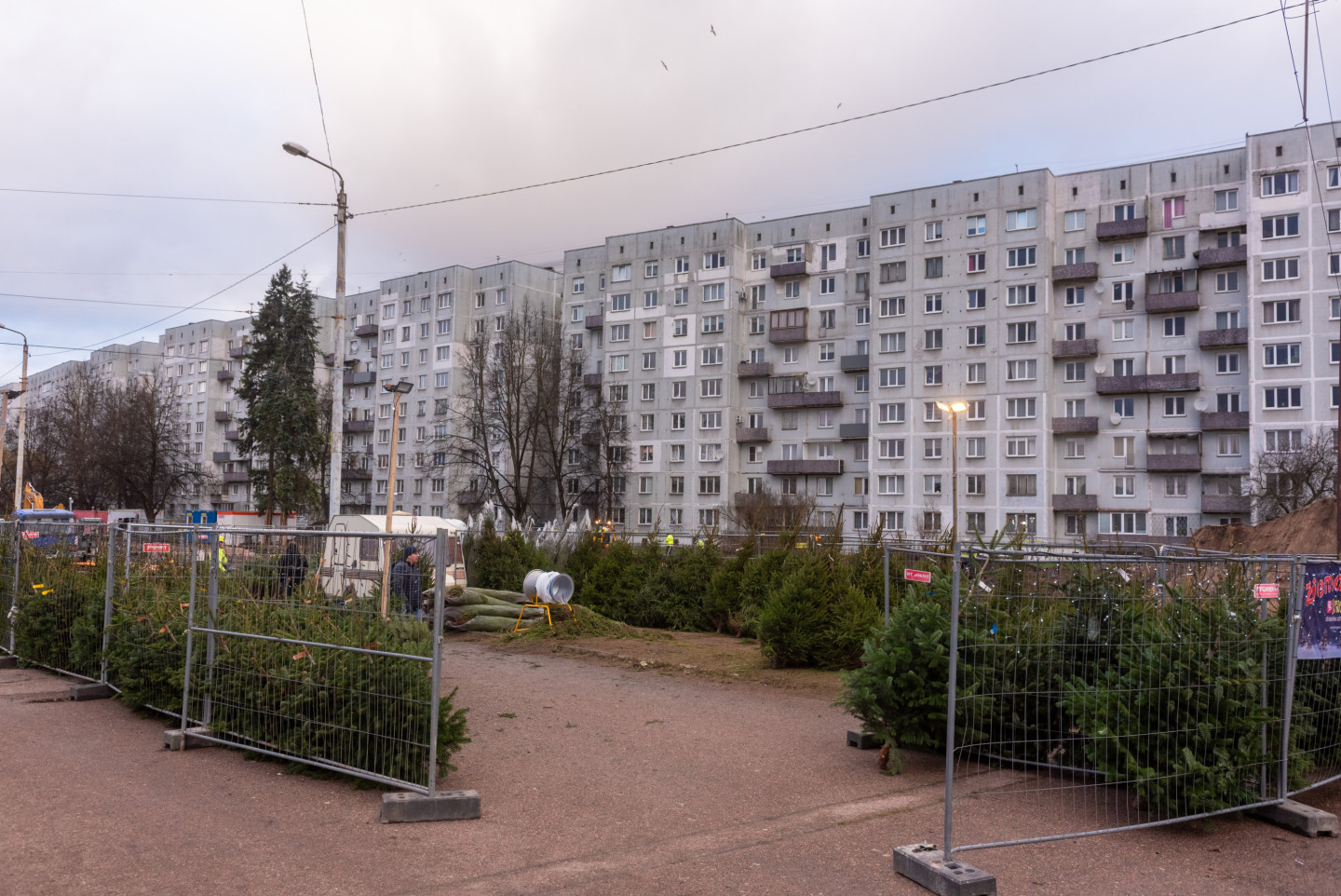 Ziemassvētku eglīšu tirdzniecības vietas Purvciemā un Rīgas Centrāltirgū. Tajās cena eglītēm no 10 līdz 65 eiro.