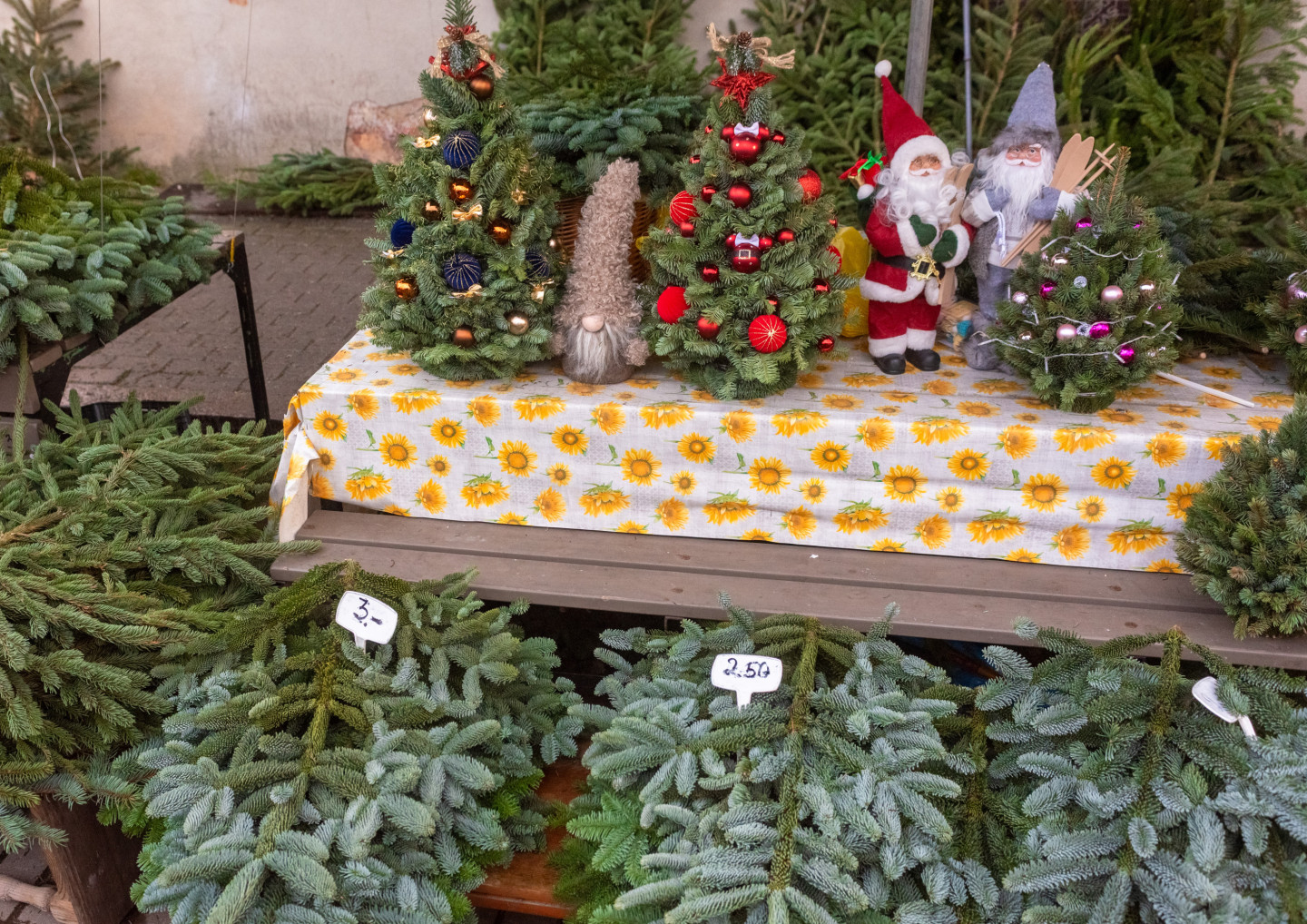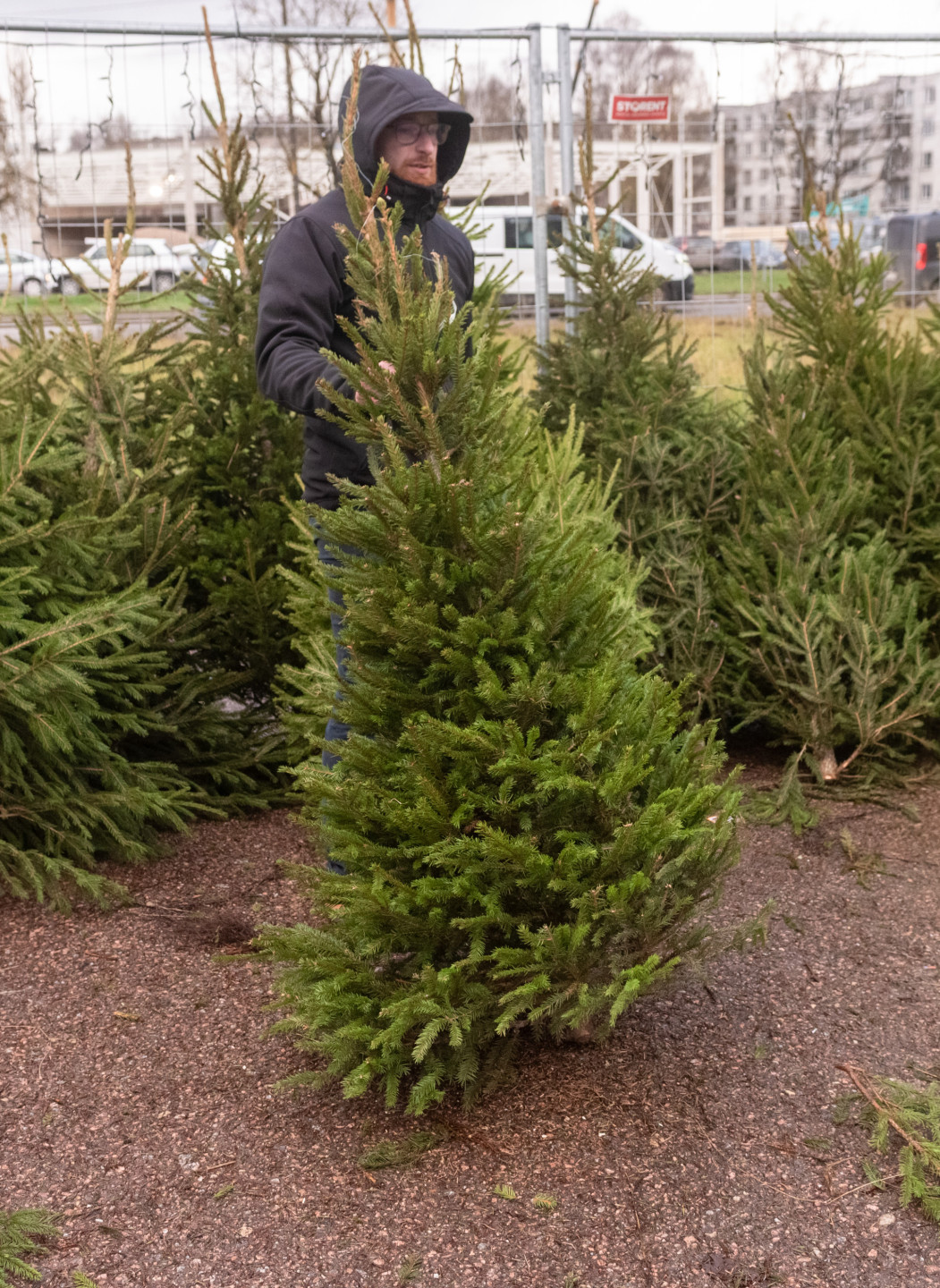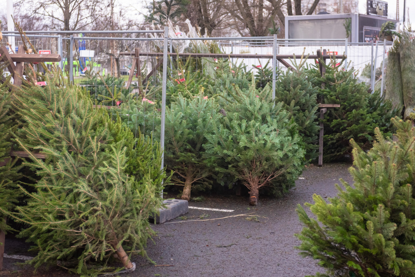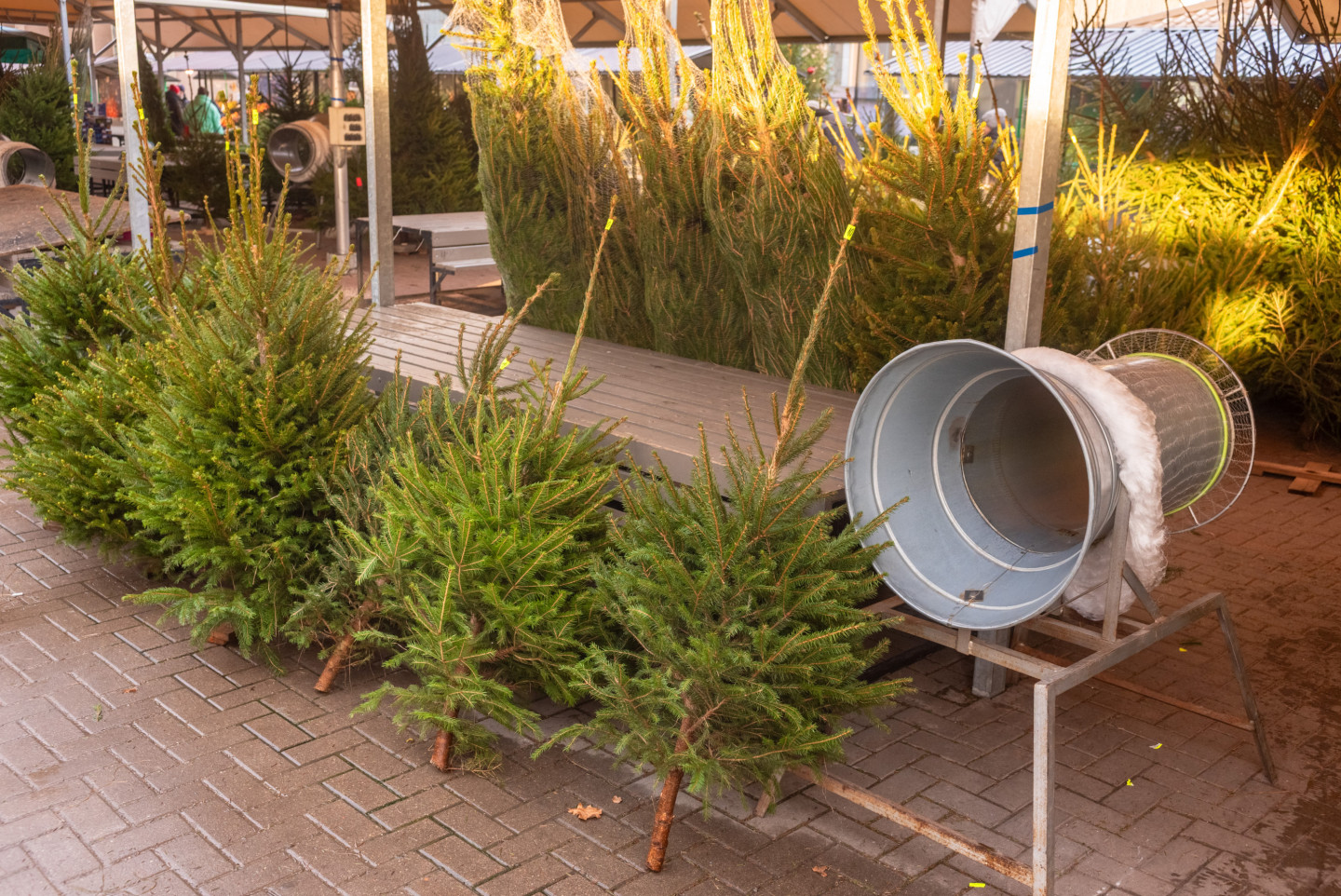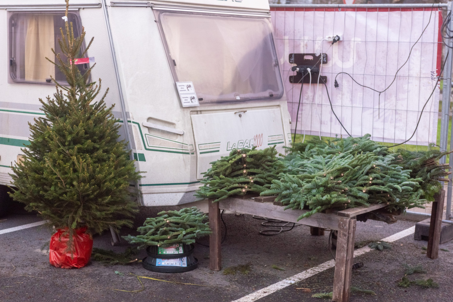 Ziemassvētku eglīšu tirdzniecības vietas Purvciemā un Rīgas Centrāltirgū. Tajās cena eglītēm no 10 līdz 65 eiro.
