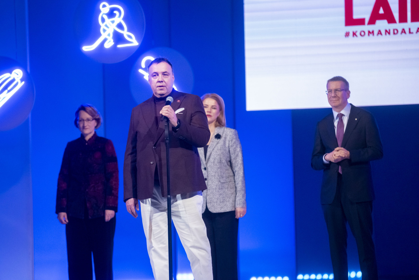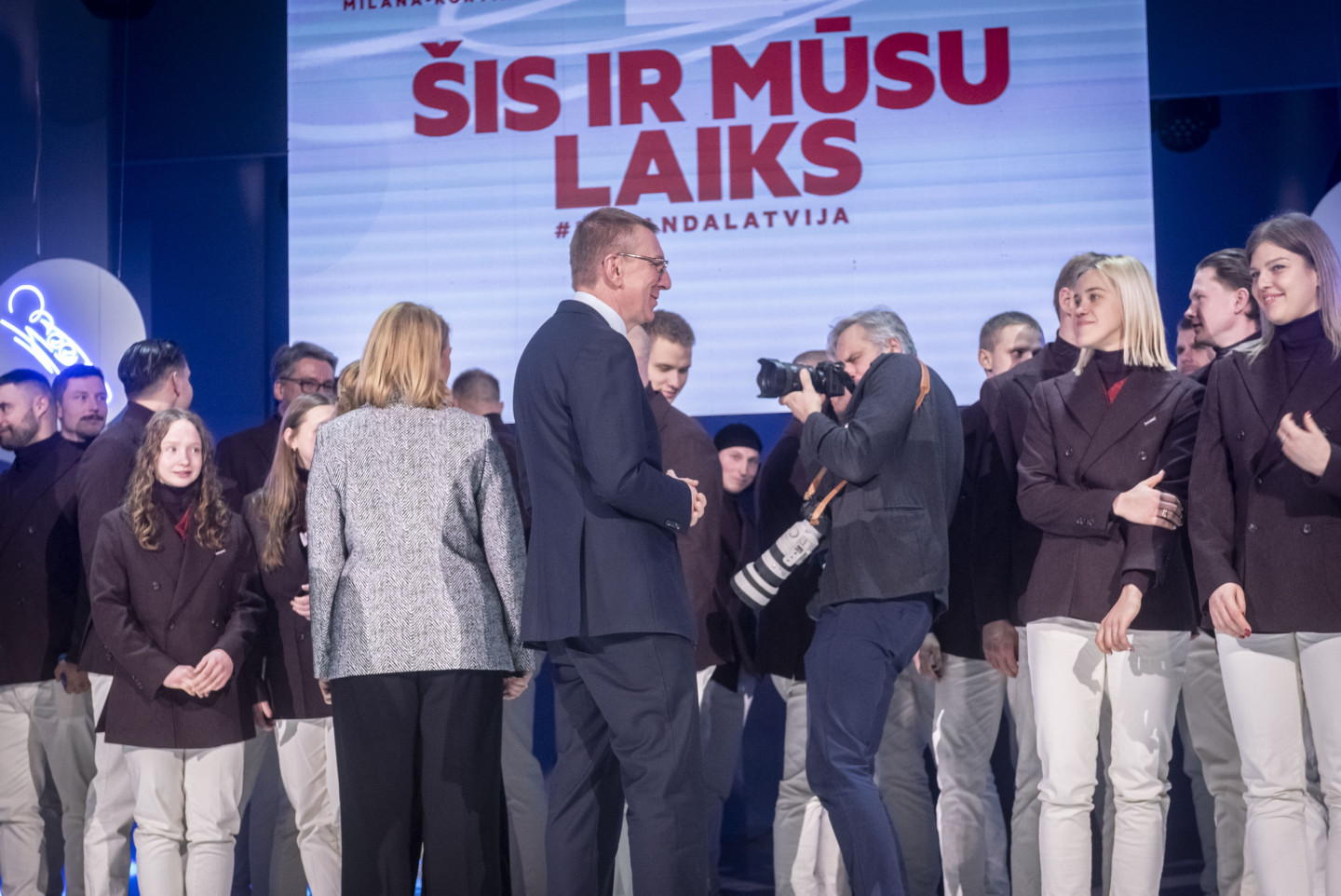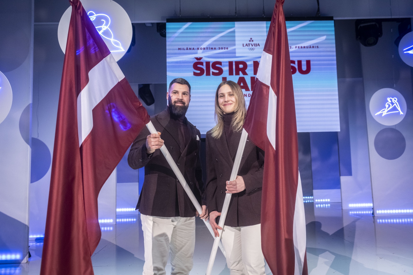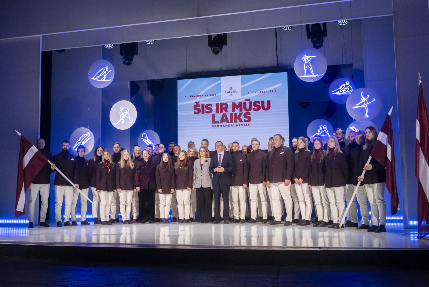 Valsts prezidents Edgars Rinkēvičs un Ministru prezidente Evika Siliņa piedalās pasākumā, kurā paziņo Latvijas delegācijas karognesējus Milānas-Kortīnas olimpiskajās spēlēs