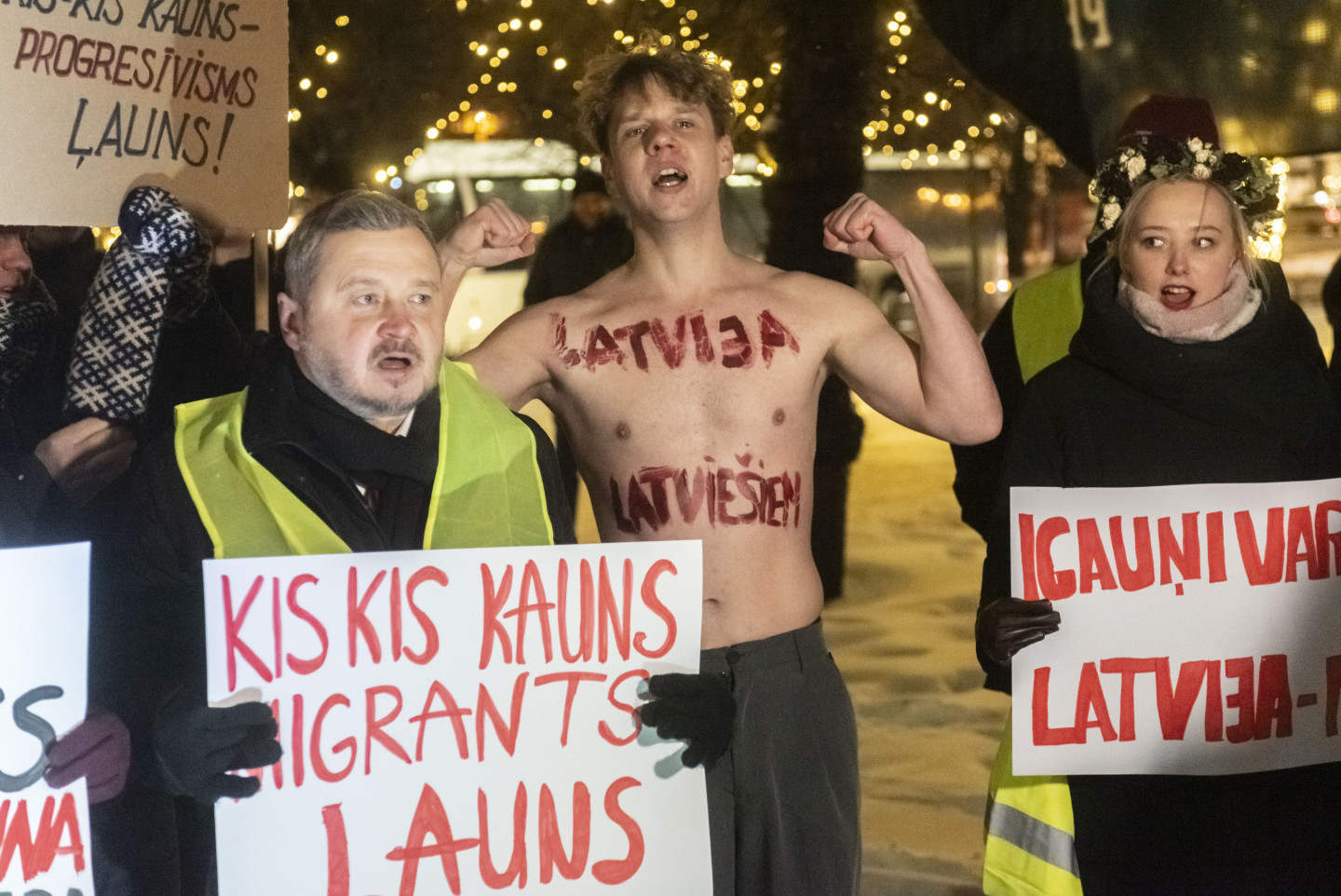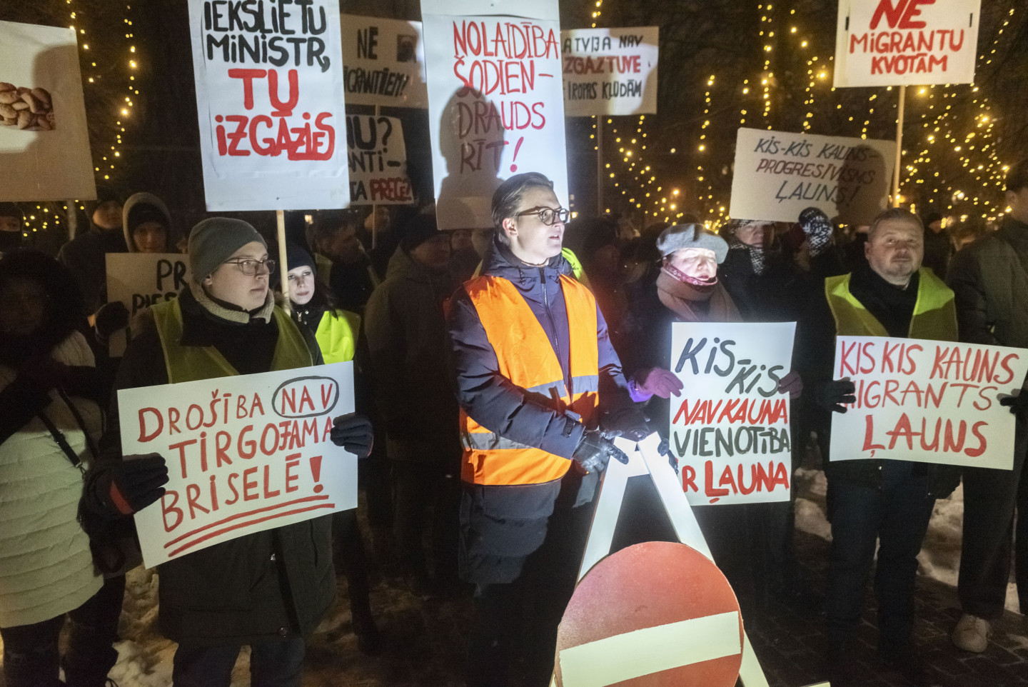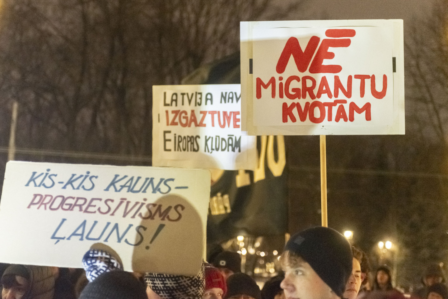 Pretī Ministru kabinetam Nacionālās apvienības jaunatnes organizācija "Jaunieši Latvijai" rīko piketu "NĒ migrantu kvotām"