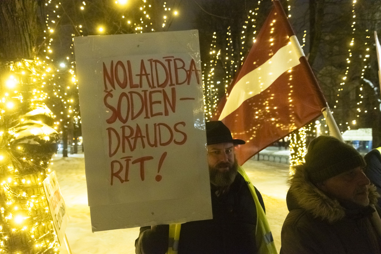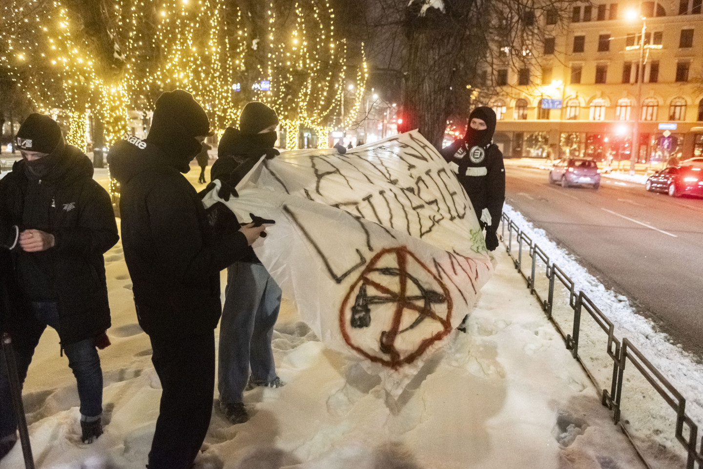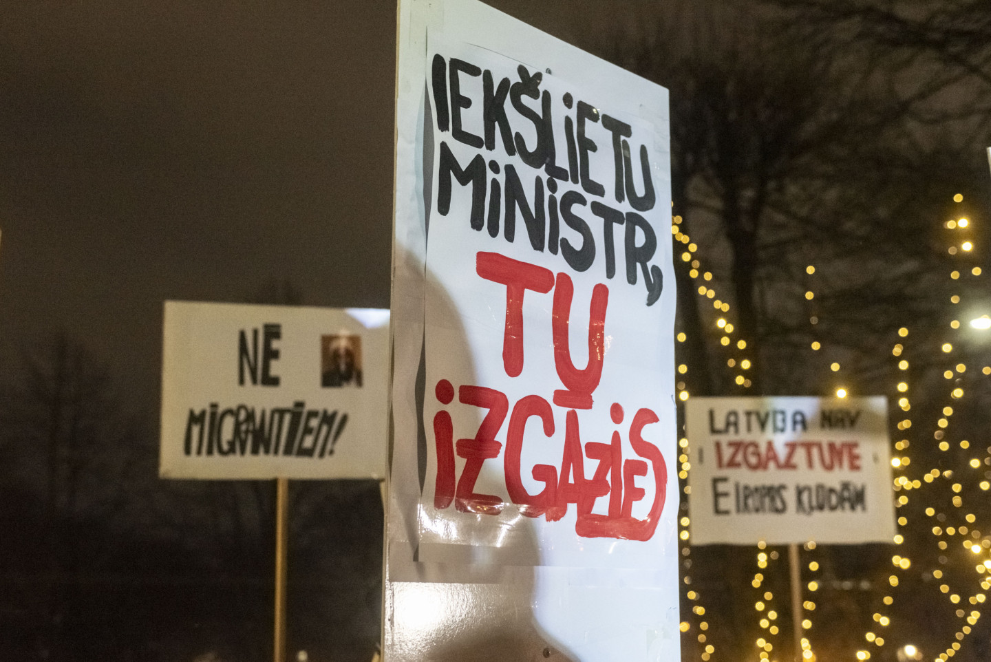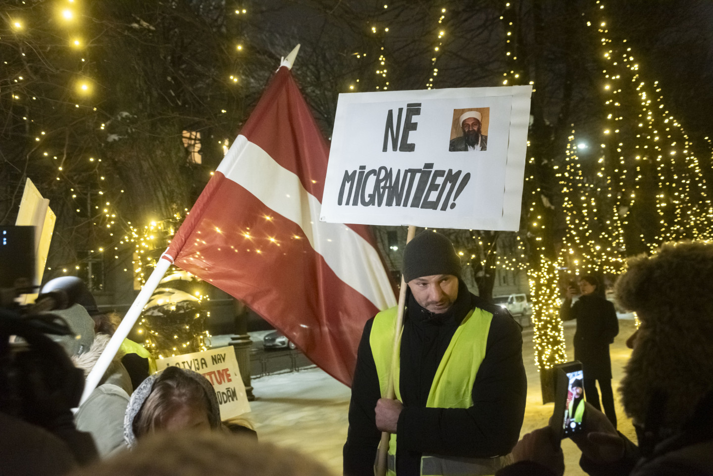 Pretī Ministru kabinetam Nacionālās apvienības jaunatnes organizācija "Jaunieši Latvijai" rīko piketu "NĒ migrantu kvotām"