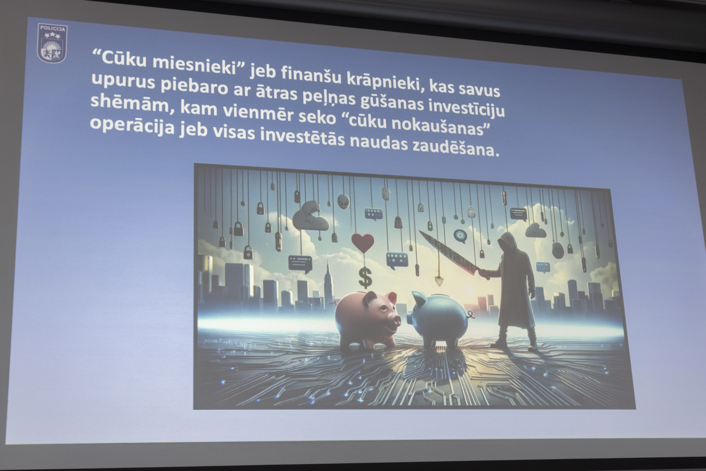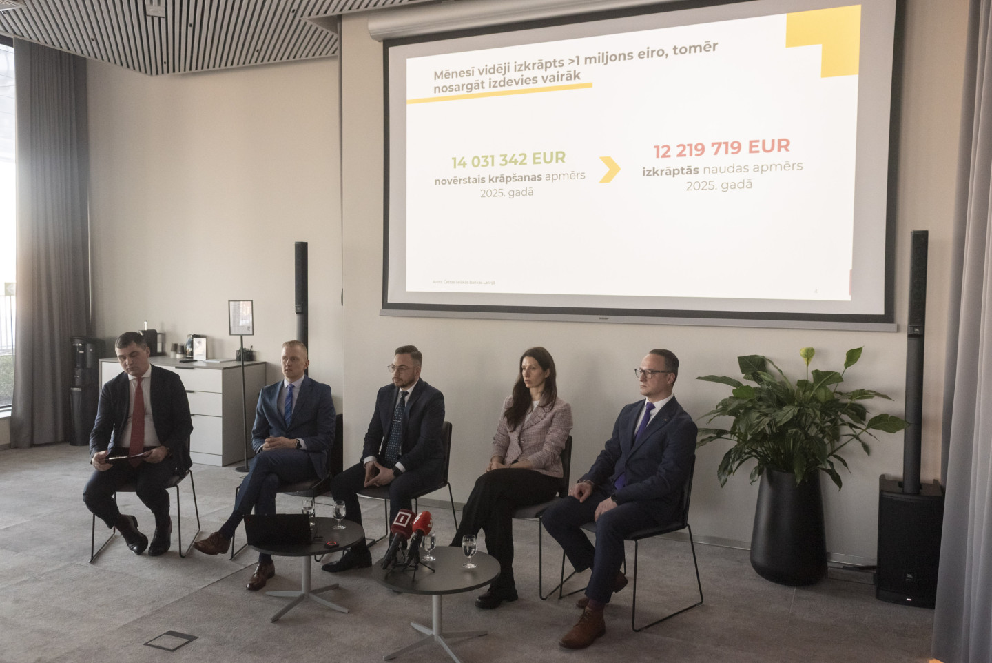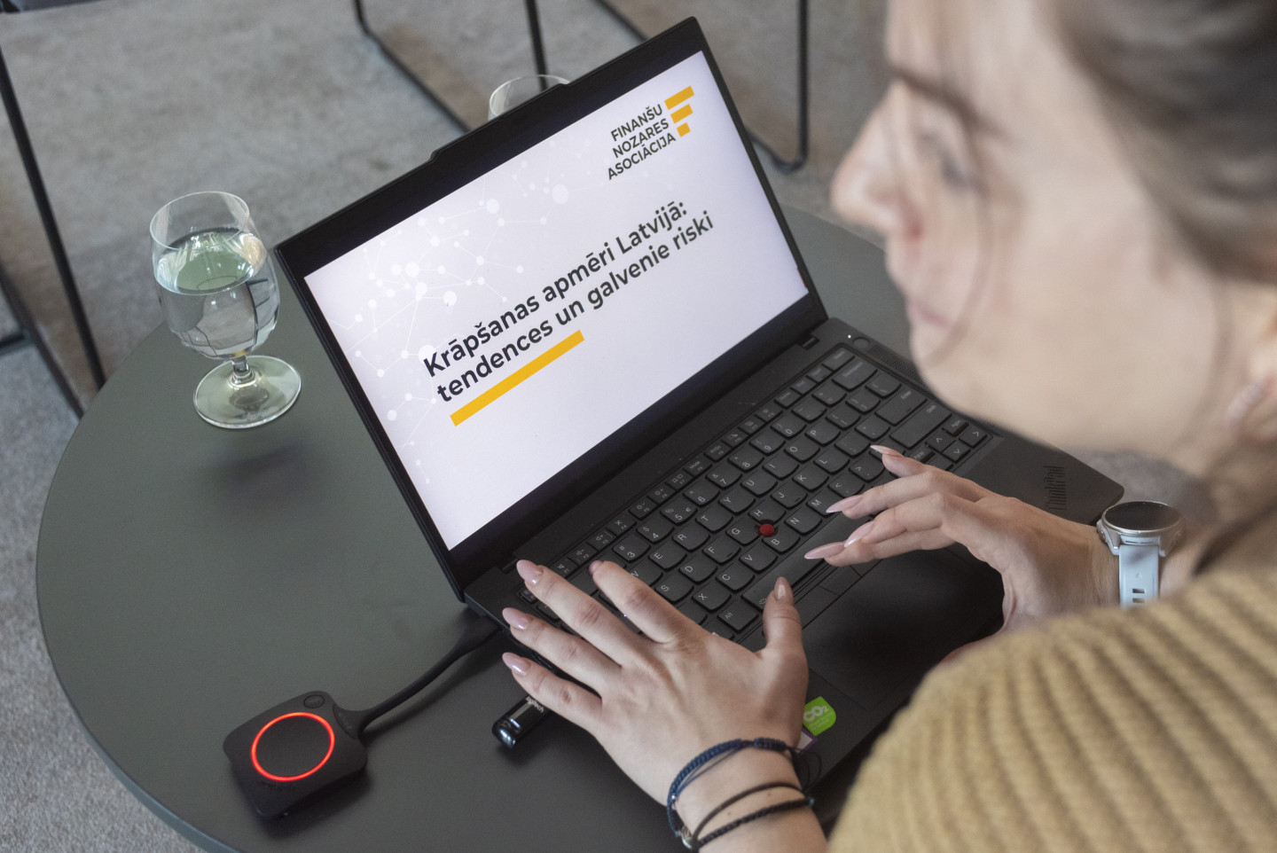 Biroja centrā "Verde" zālē "Medus" Finanšu nozares asociācija sadarbībā ar Valsts policiju, "Cert.lv" un Latvijas Banku rīko informatīvu pasākumu, lai pievērstu sabiedrības uzmanību krāpšanas apmēriem un aktuālākajām noziedznieku metodēm