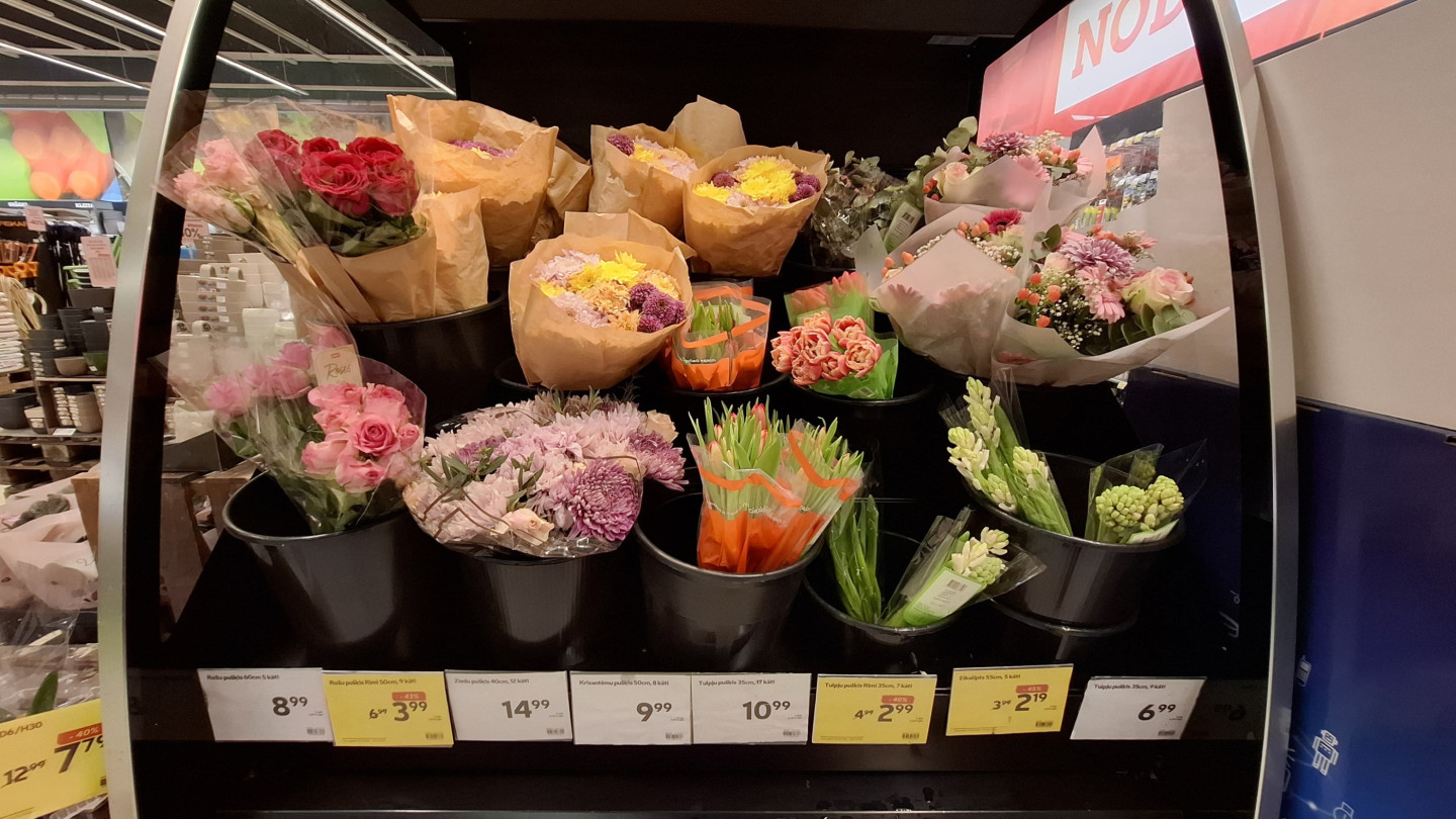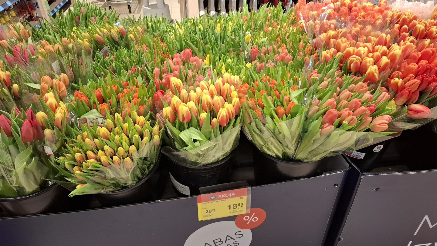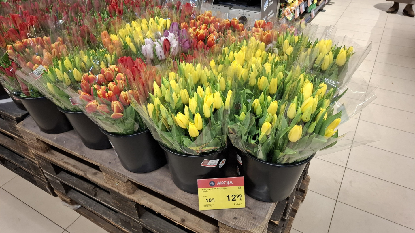 Īsi pirms 8. marta ielŭkojāmies lielveikalos, lai noskaidrotu, cik maksā ziedi.