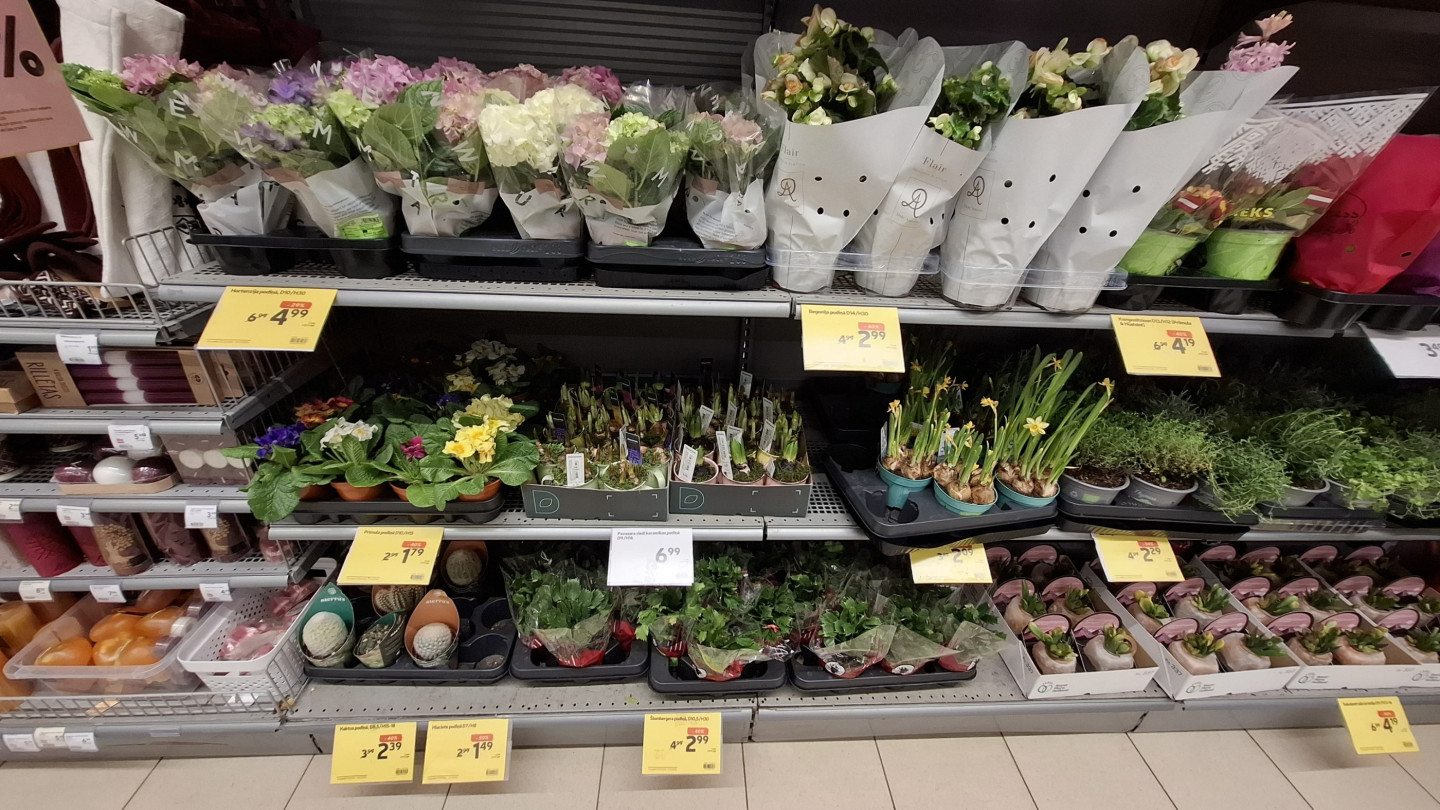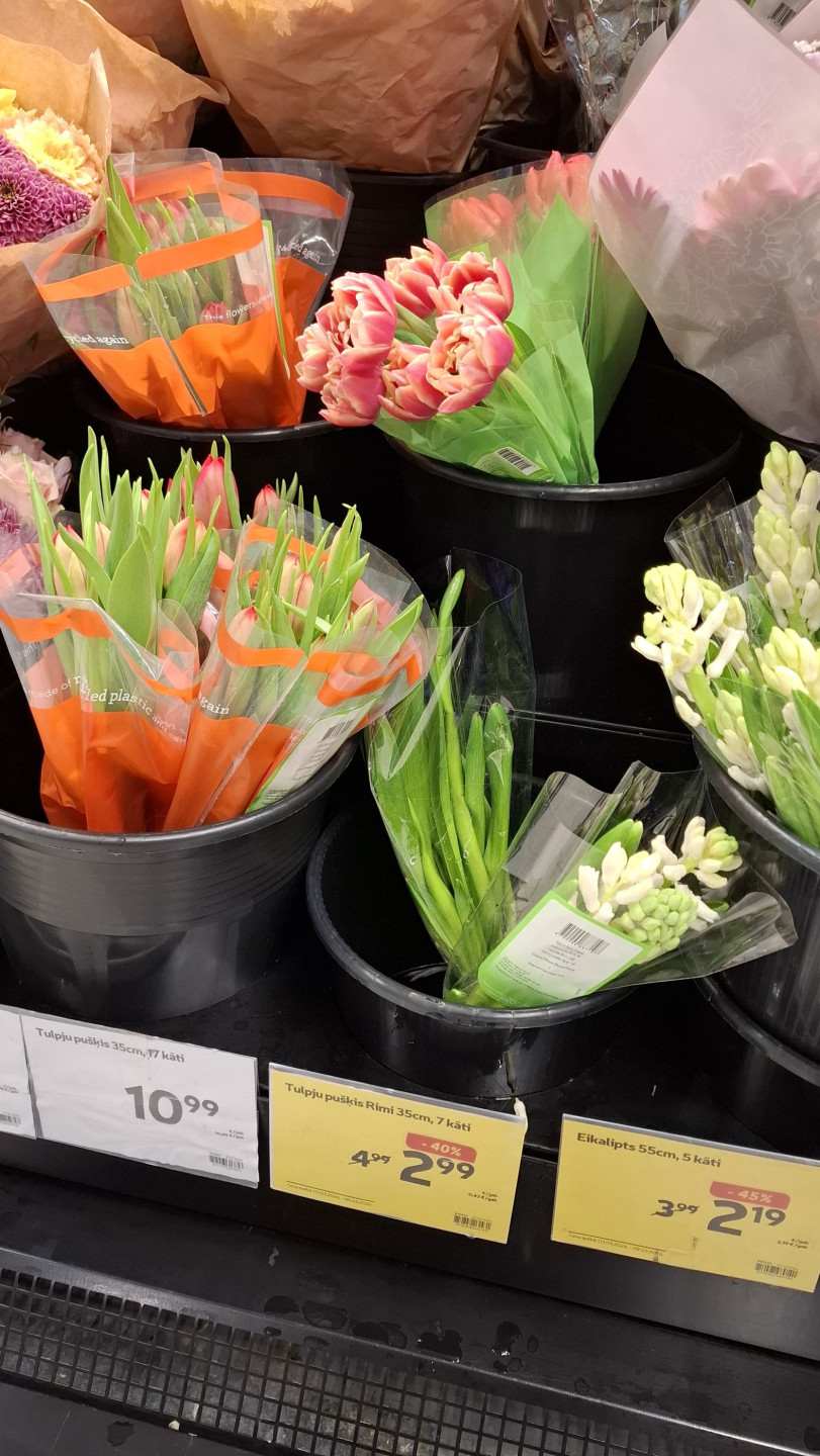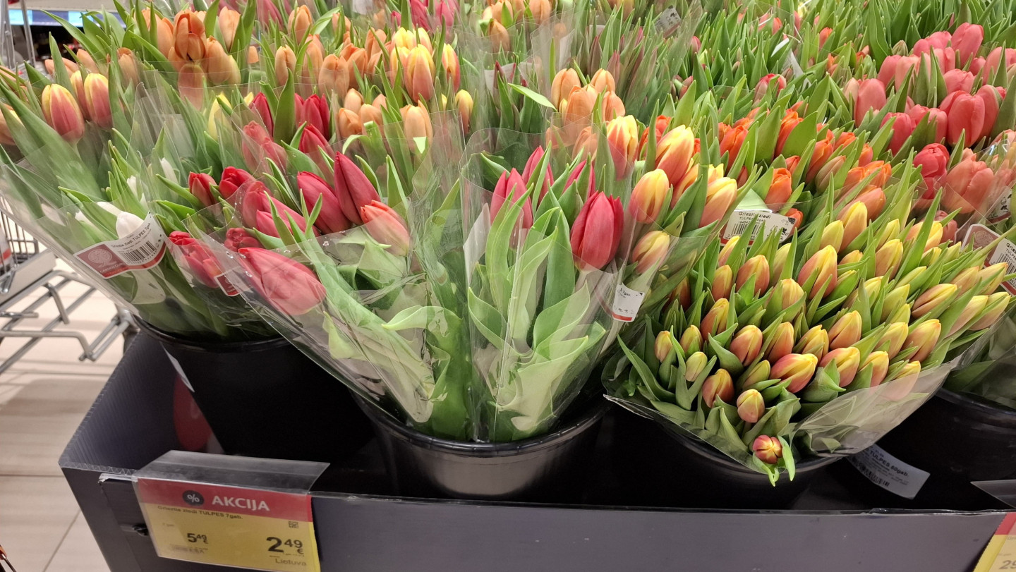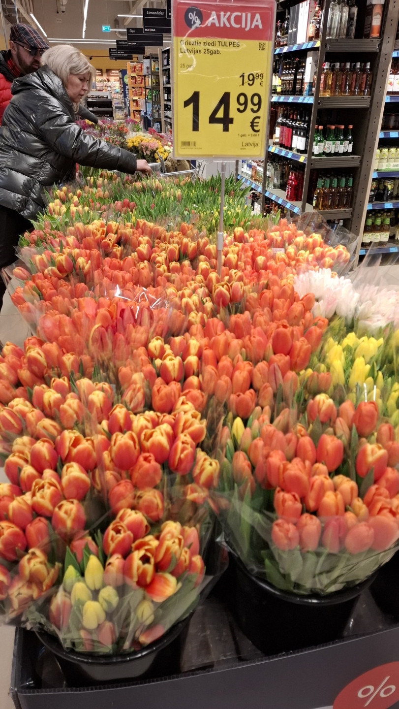 Īsi pirms 8. marta ielŭkojāmies lielveikalos, lai noskaidrotu, cik maksā ziedi.