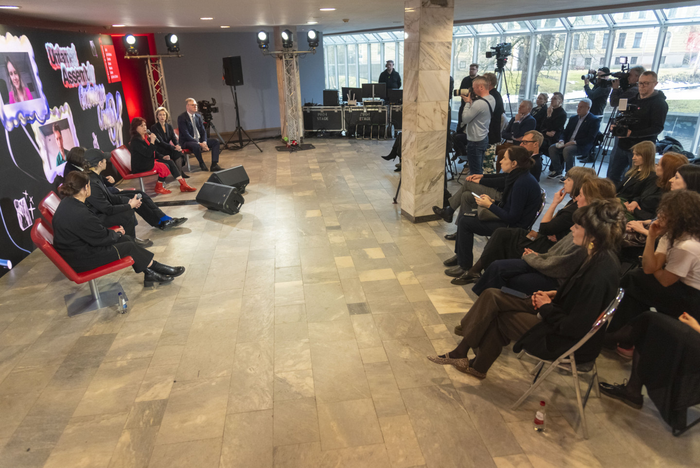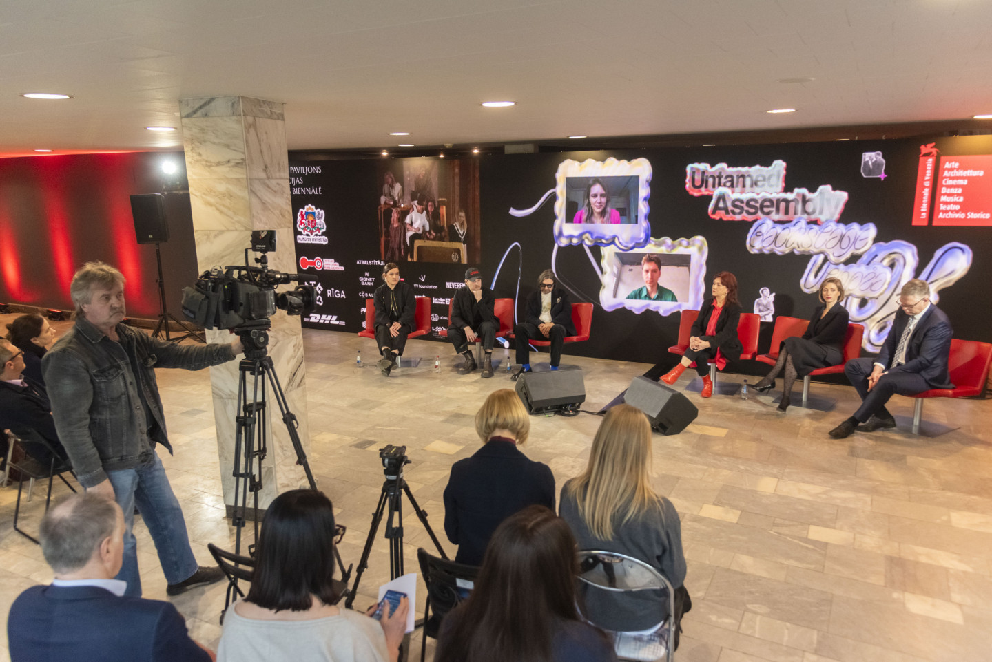 Rīgas Kongresu namā notiek starptautiskās Venēcijas mākslas biennāles Latvijas paviljona preses konference, kurā piedalās Agnese Lāce, kultūras ministre, Rīgas domes priekšsēdētāja vietnieks Vilnis Ķirsis, Latvijas paviljona komisāre un Latvijas Laikmetīgās mākslas centra direktore Solvita Krese, Latvijas paviljona kuratore (konferencē piedalās attālināti) Inga Lāce, Latvijas paviljona kurators (konferencē piedalās attālināti) Adoms Narkevičs, Latvijas paviljona mākslinieki, jaundarba veidotāji "Mareunorl’s" (Mārīte Mastiņa-Pēterkopa un Rolands Pēterkops) un Latvijas paviljona mākslinieks, Nepieradinātās modes asamblejas autors, arhīvs (1990-1999) Bruno Birmanis
