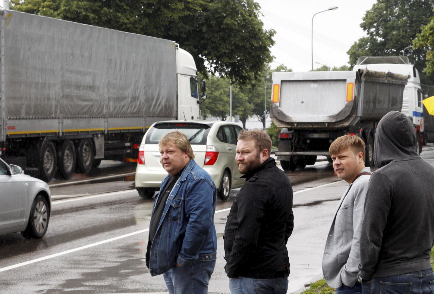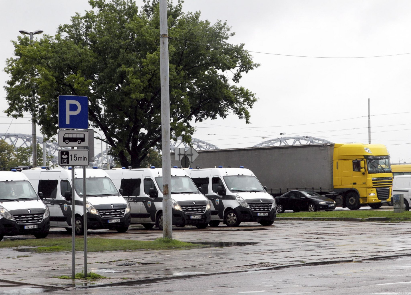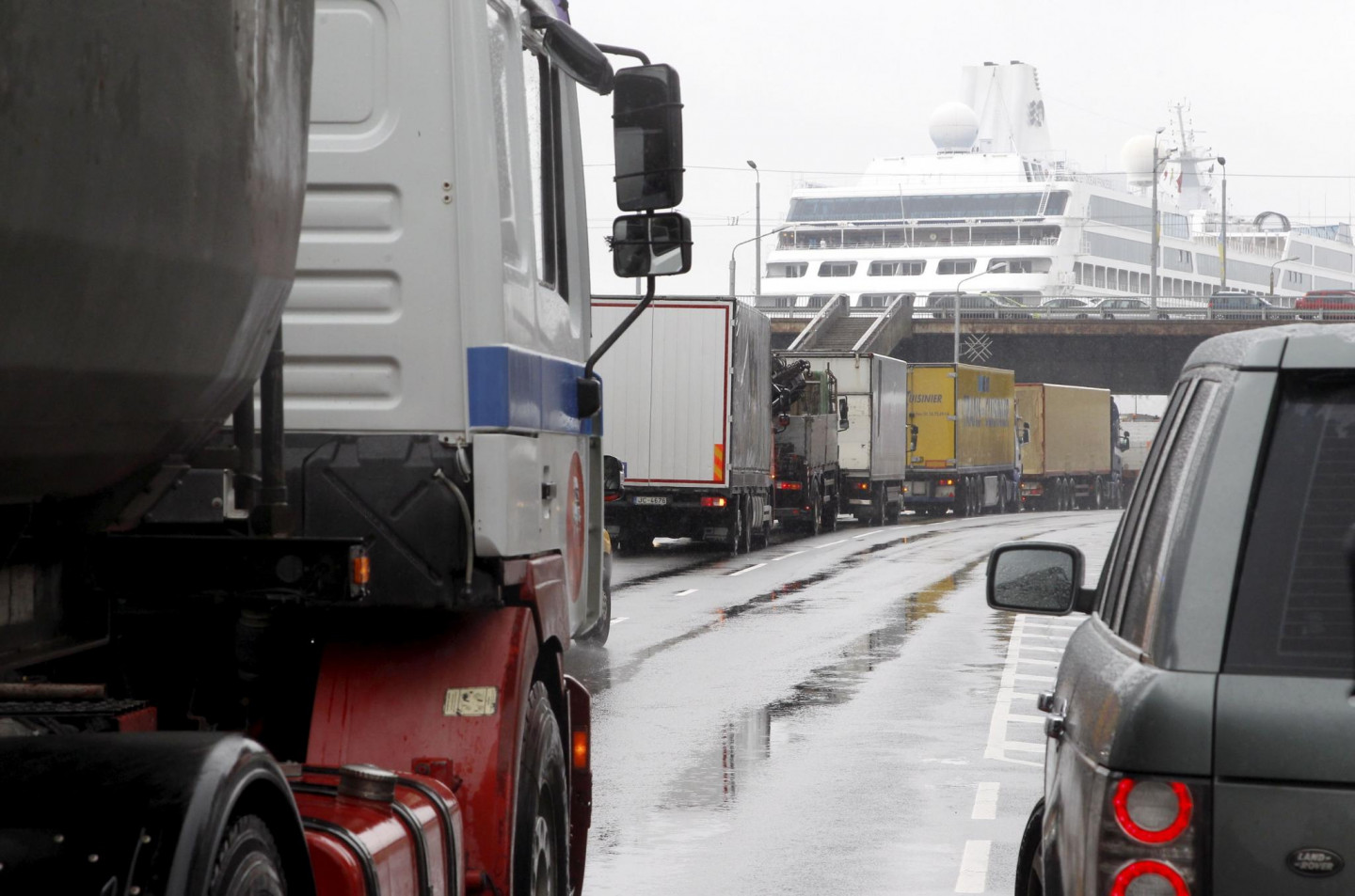 Protestējot pret tā dēvētās eirovinjetes ieviešanu Latvijā, Rīgas centru šodien pārpludinājušas kravas automašīnu karavānas, bloķējot satiksmi 11.novembra krastmalā.