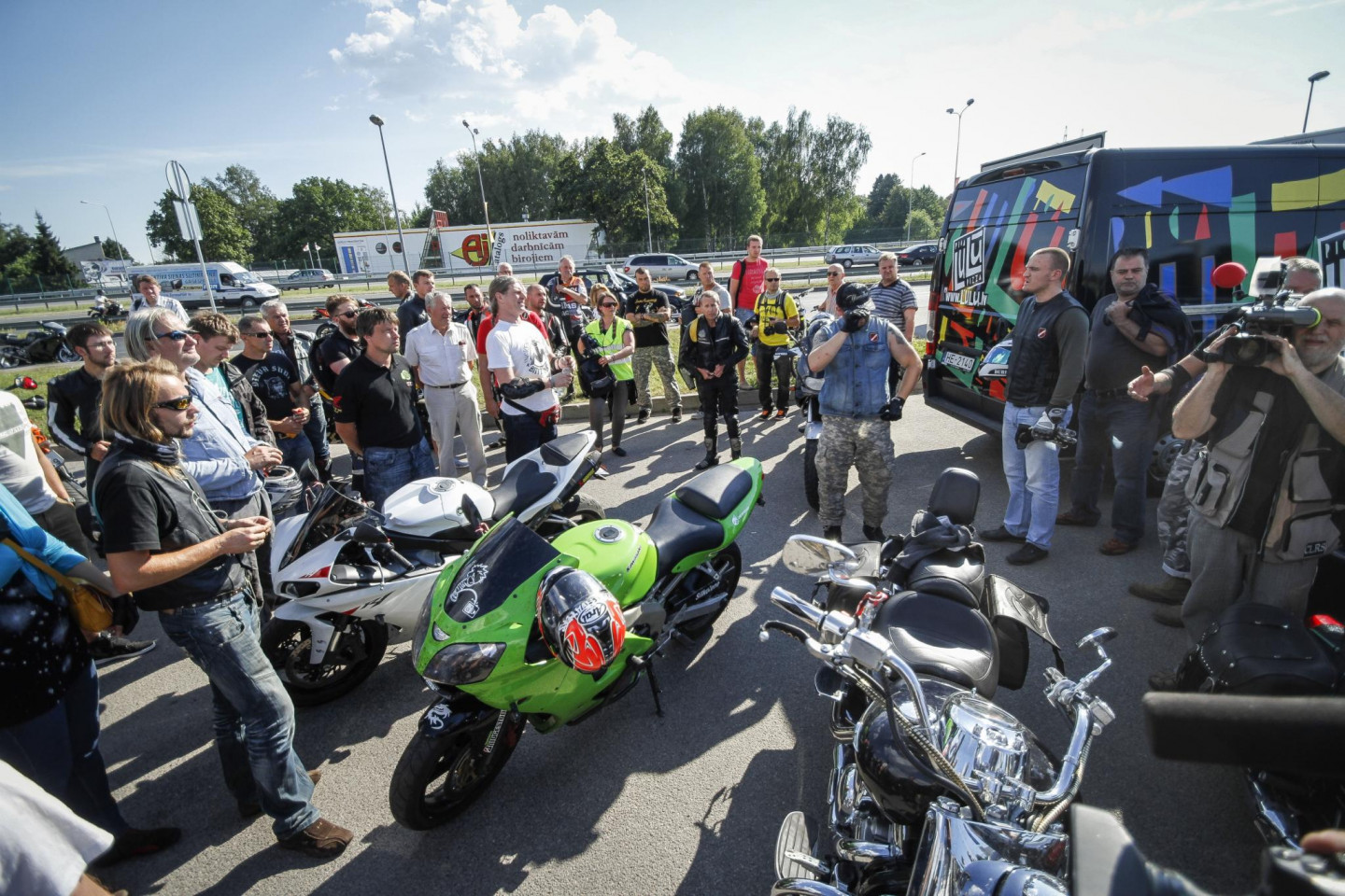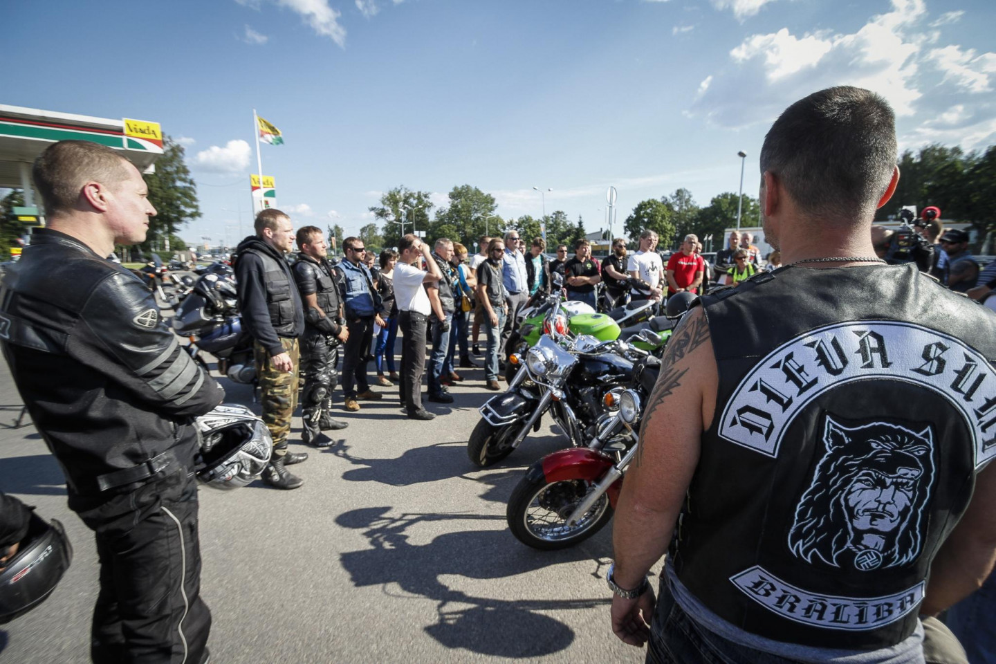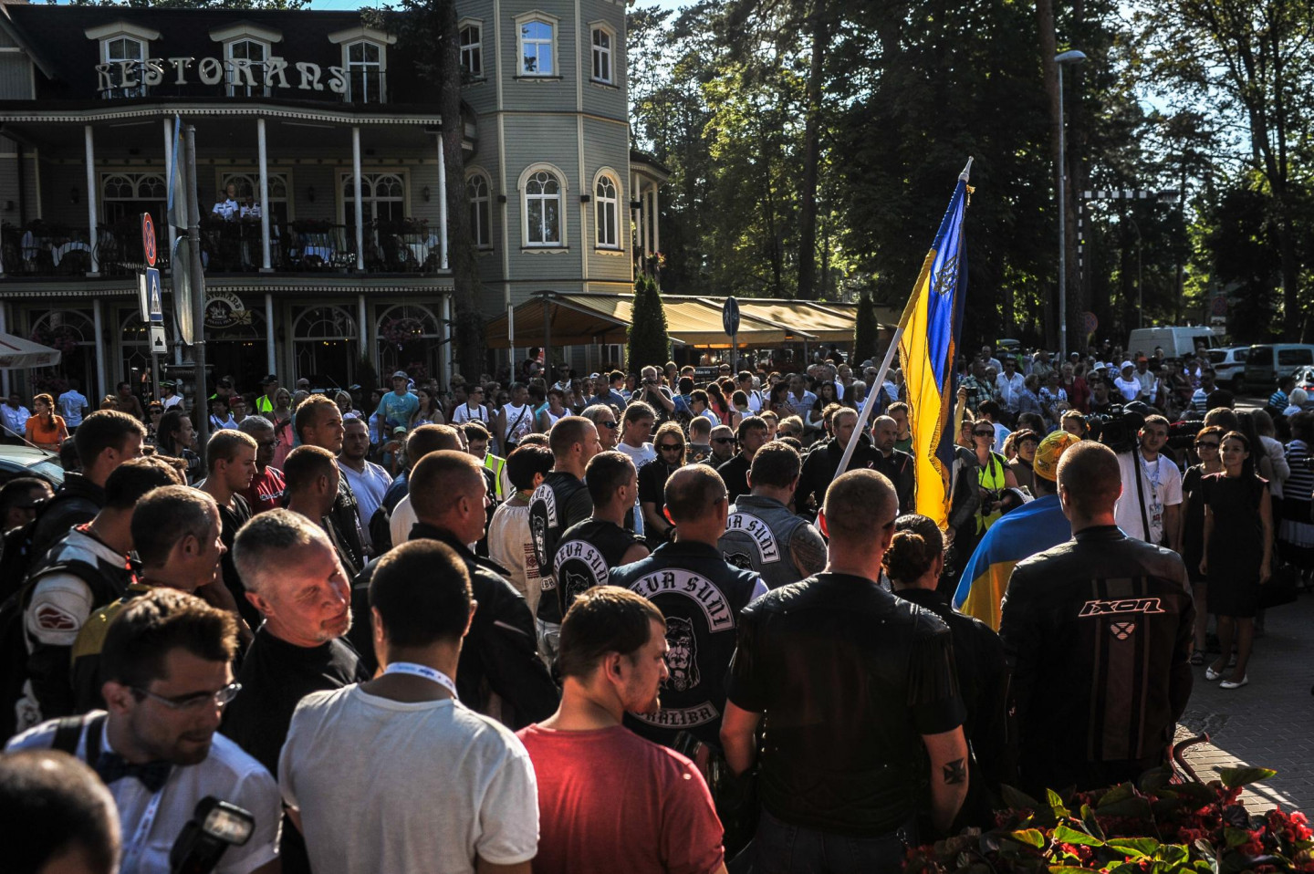 Motociklistu brālība "Dieva suņi" otrdien pulcējās pie Dzintaru koncertzāles, lai kopā dotos protesta braucienā pret "Jauno vilni 2014", iestājoties pret Krievijas agresiju Ukrainā. Braucienā piedalījās aptuveni 50-60 motobraucēju.